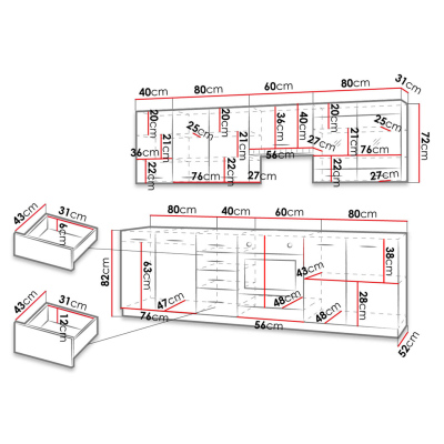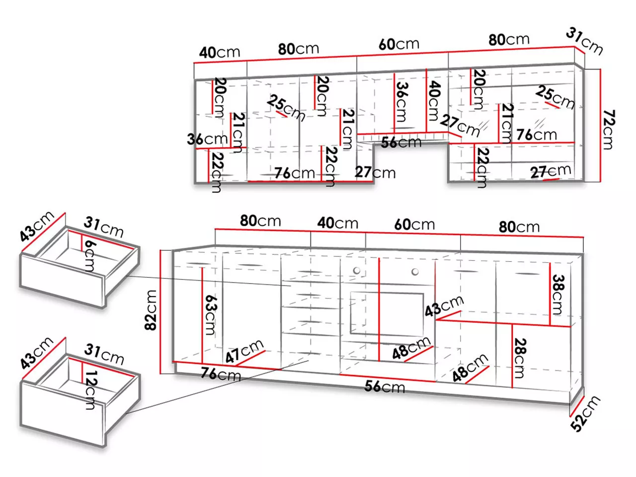 - skříň pro vestavěnou troubu: 60/82/52 cm