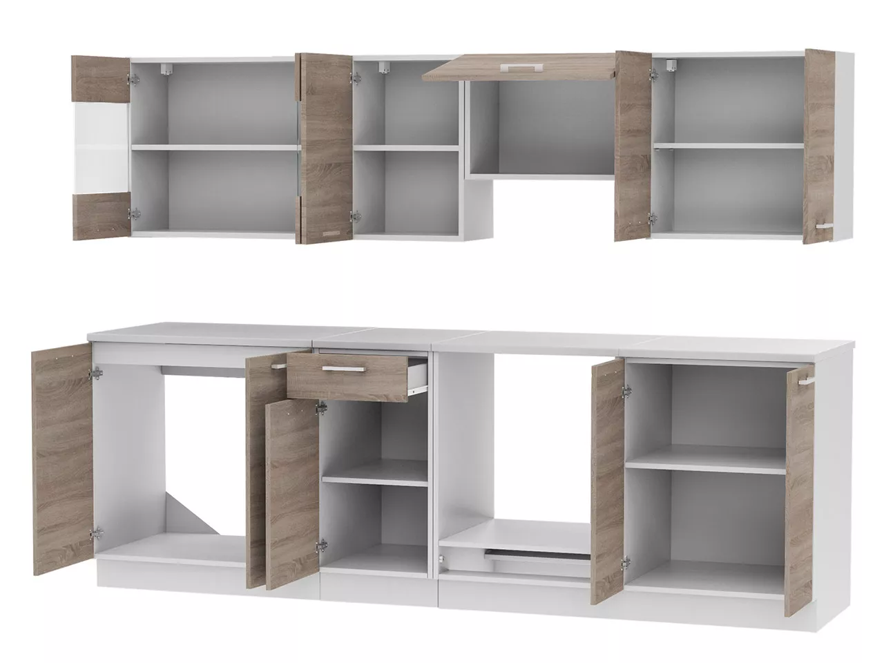 Kuchyně LIAN 1 byla navržena tak, aby dokonale ladila s moderními interiéry a poskytovala dostatečné množství úložného prostoru. Promyšlená kombinace horních a spodních skříněk vám dává jistotu, že veškeré příslušenství potřebné k vaření budete mít na dosah ruky.