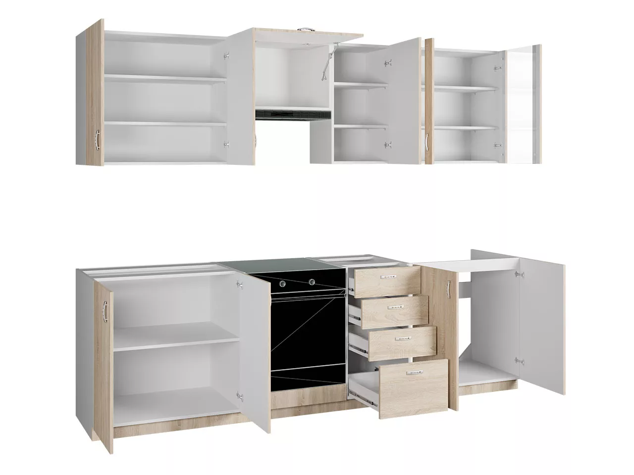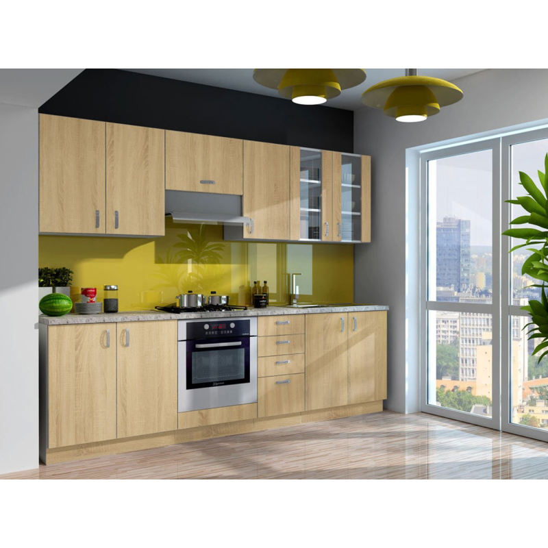 Kuchyňská linka ROU nadmíru splní vaše požadavky a díky použitým materiálům, si zachová svůj bezvadný vzhled po dlouhá léta. Linka je odolná vůči poškrábání a snadno se udržuje v čistotě. Prostorné skříňky a zásuvky umožňují uložení potřebného nádobí, hrnců a potravinářských výrobků.