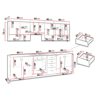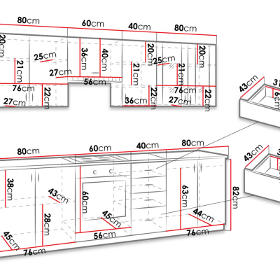 - skříňka pod dřez: 80/82/48 cm