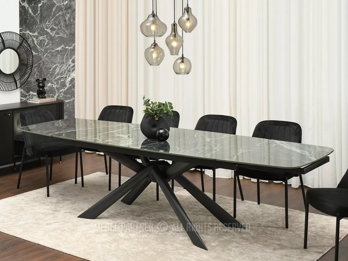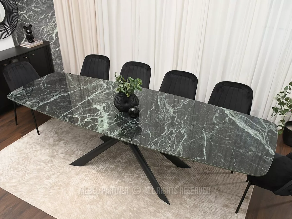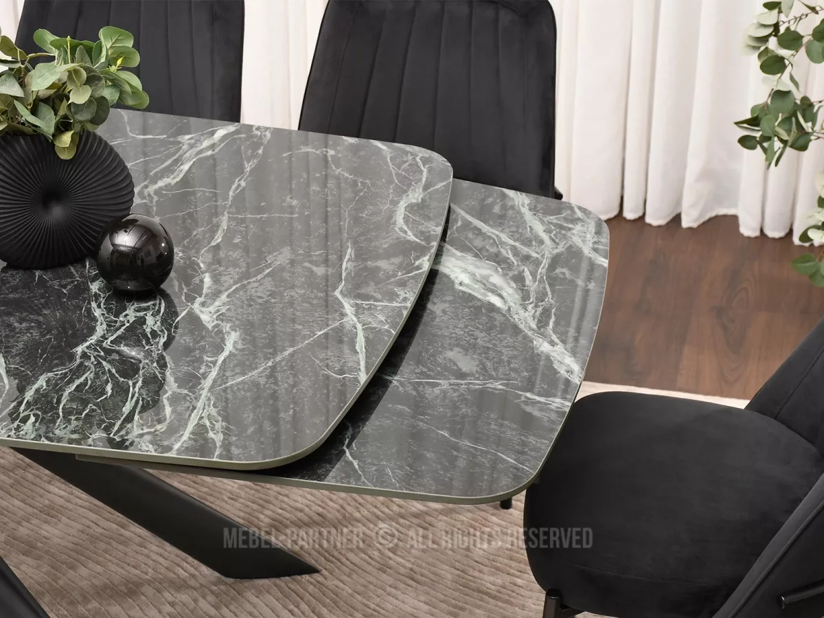 Rozkládací jídelní stůl 180(280)x98 NODIN - zelený mramor / černý