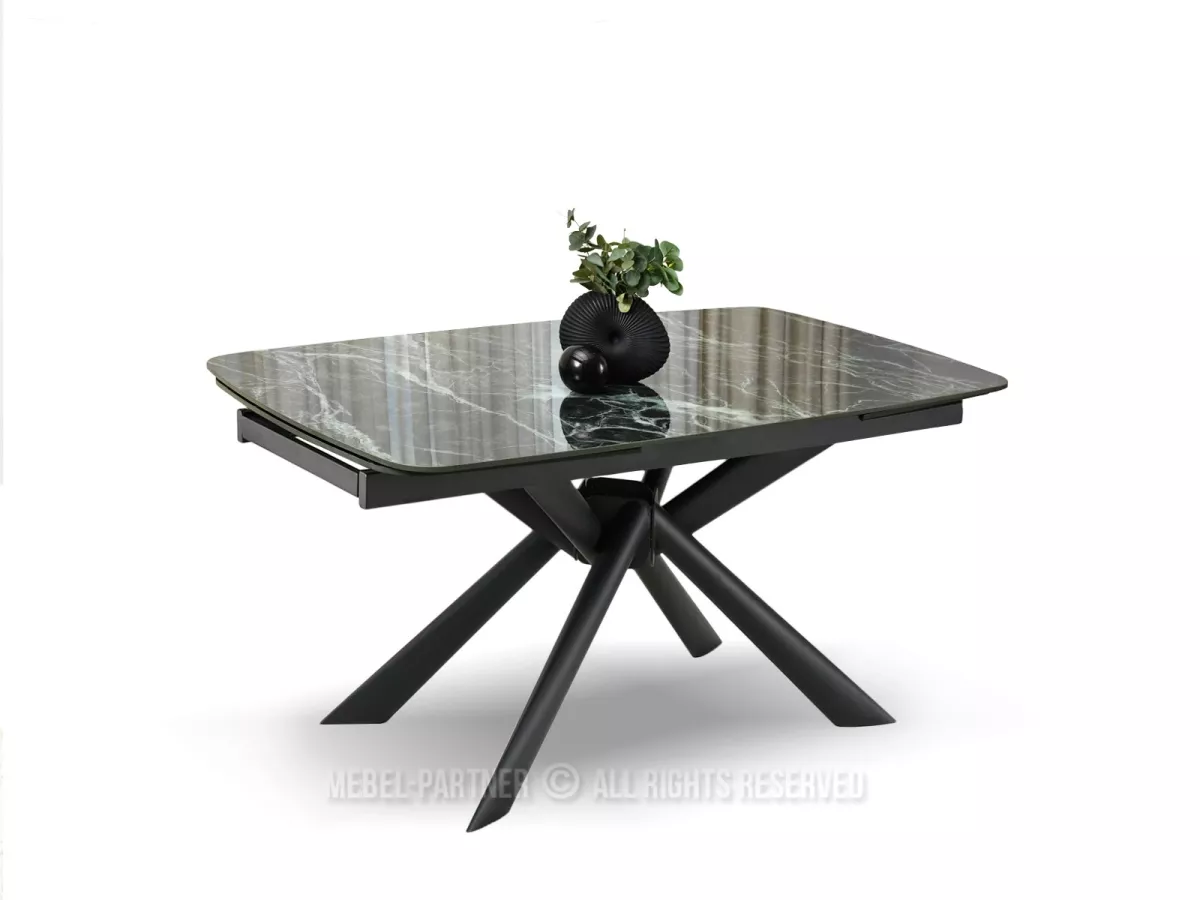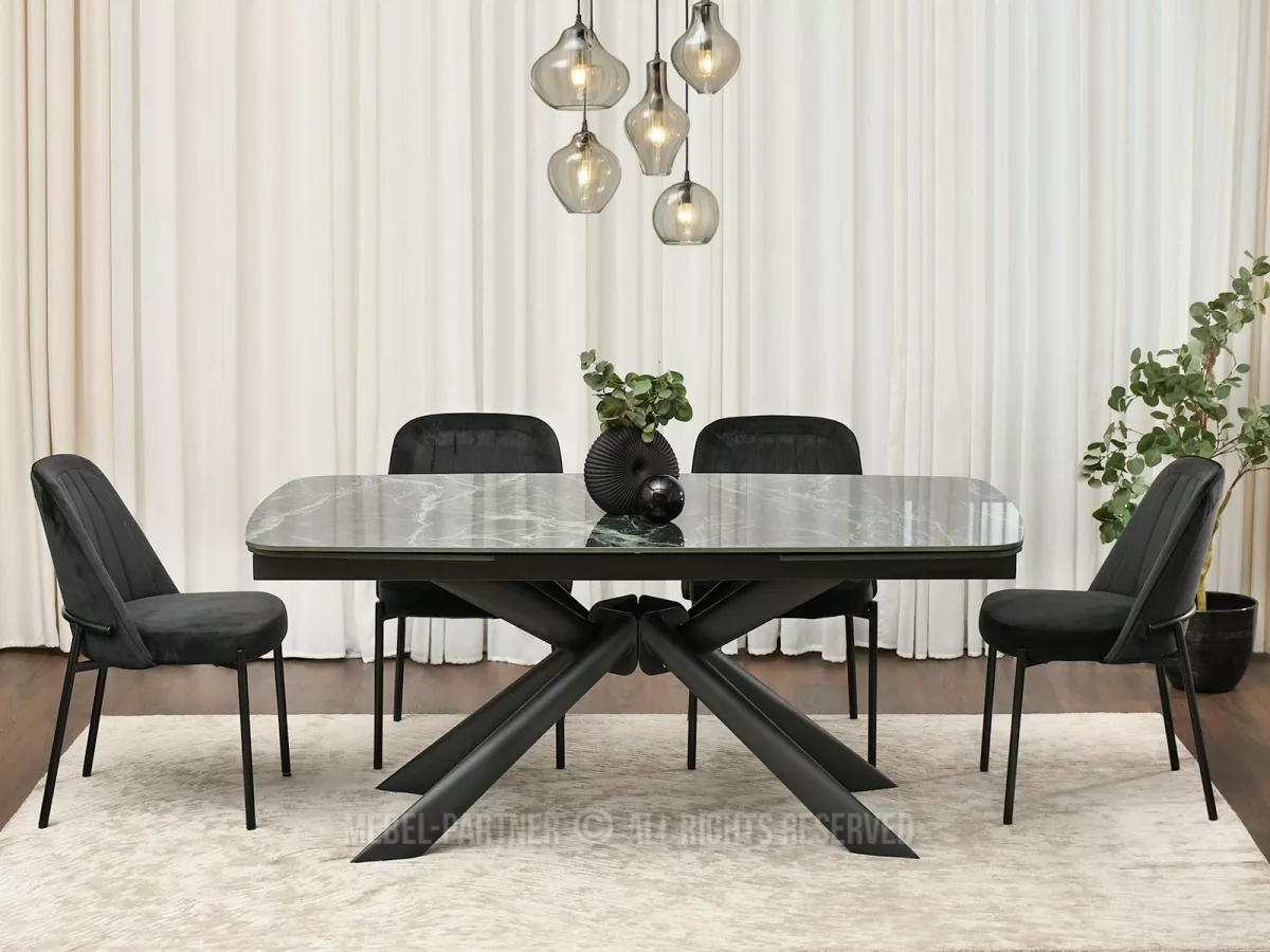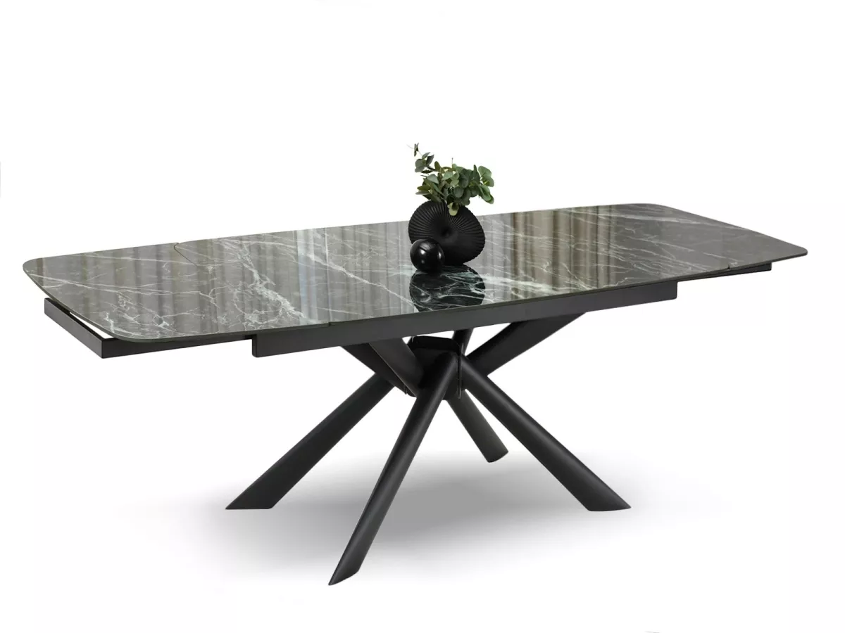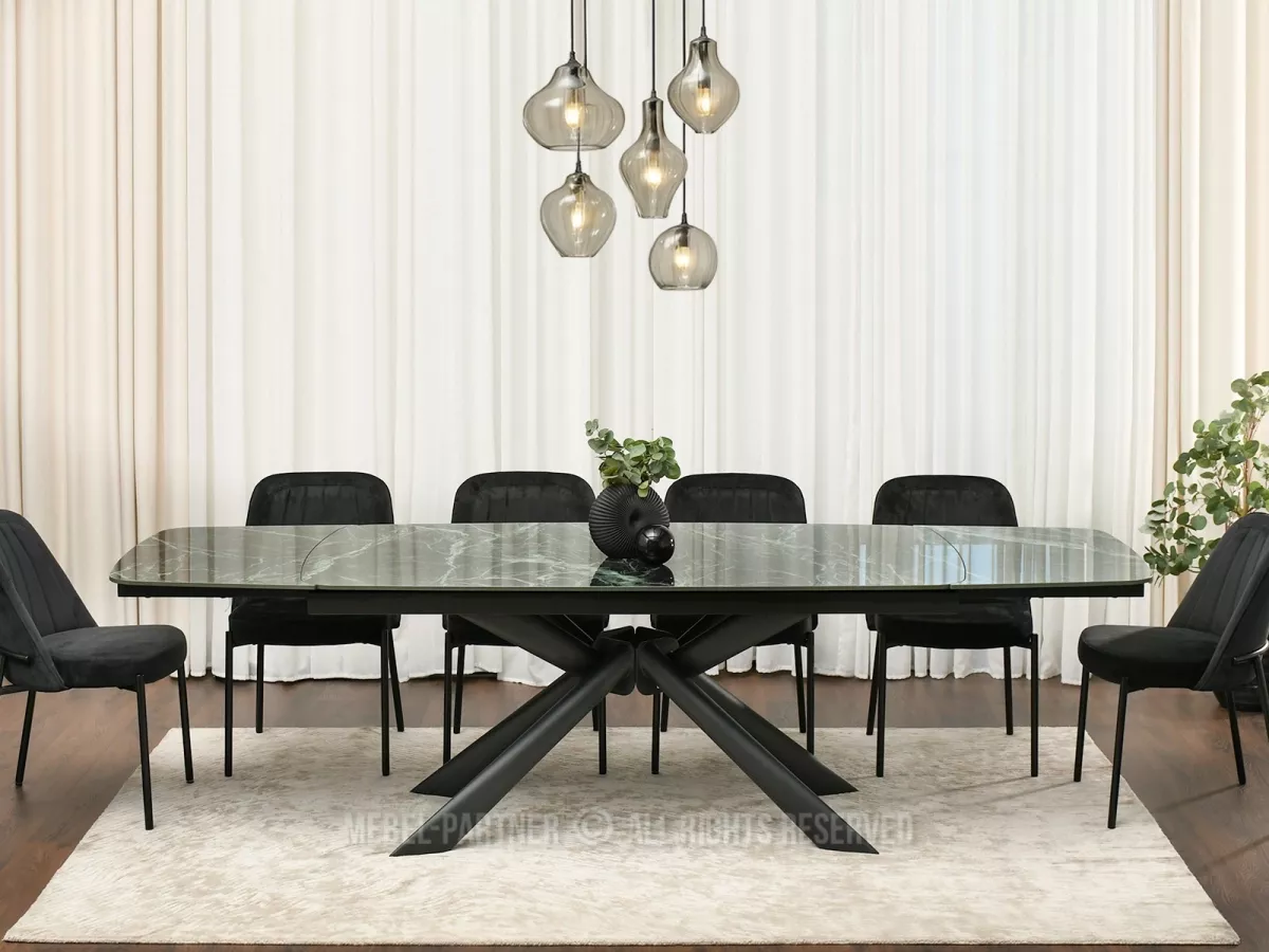 Rozkládací jídelní stůl 180(280)x98 NODIN - zelený mramor / černý