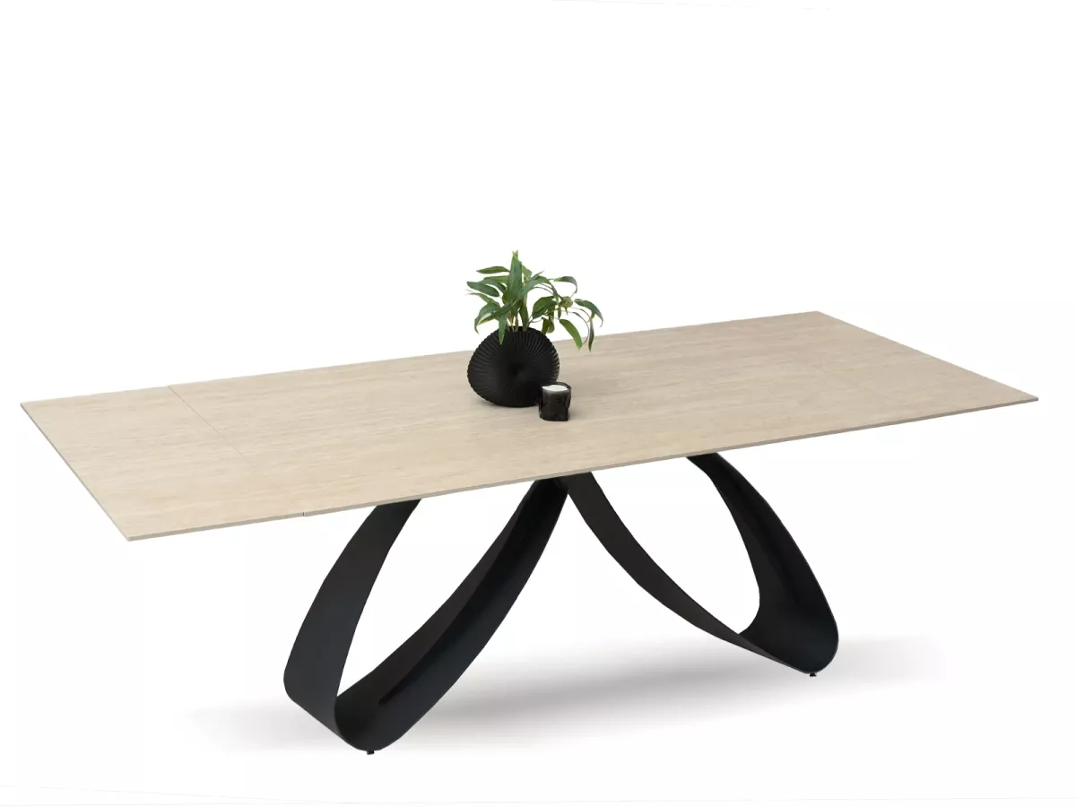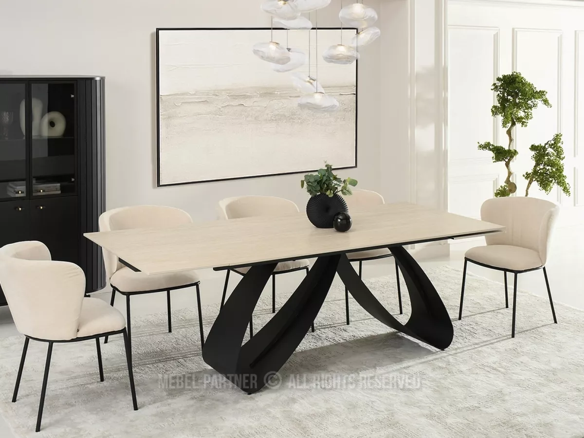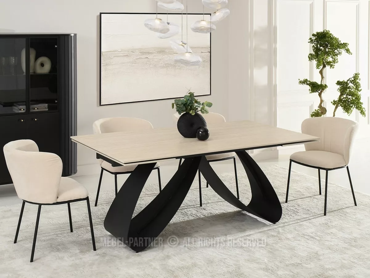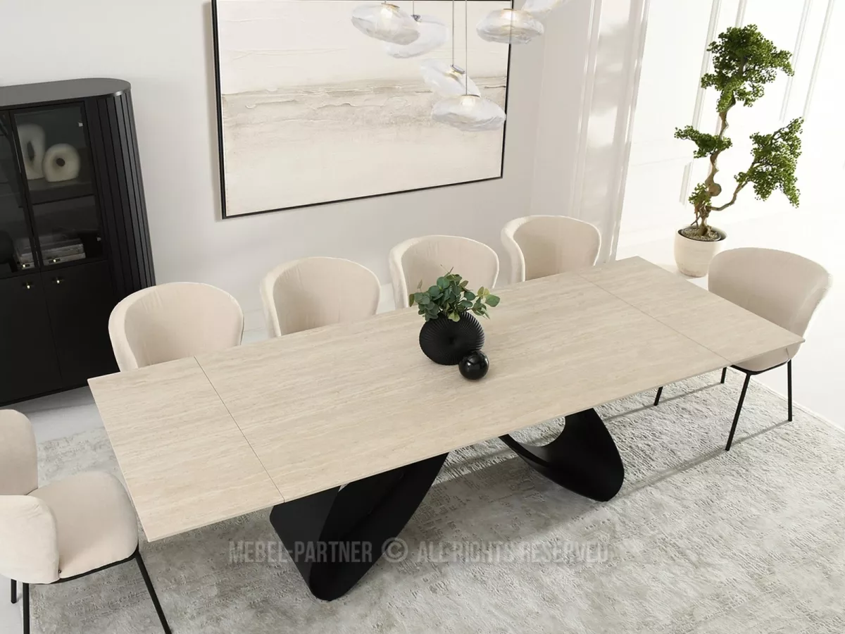 Rozkládací jídelní stůl 180(260)x95 EVONY - béžový / černý