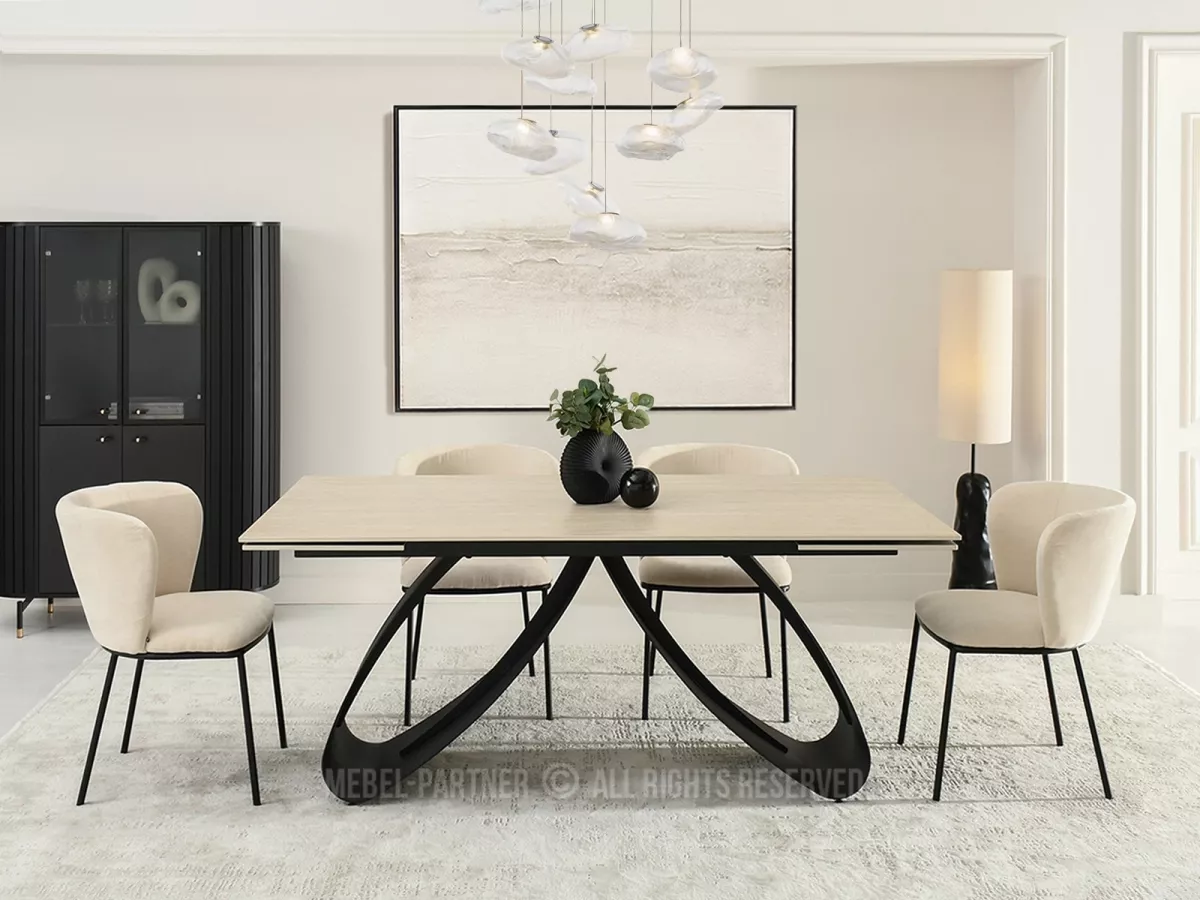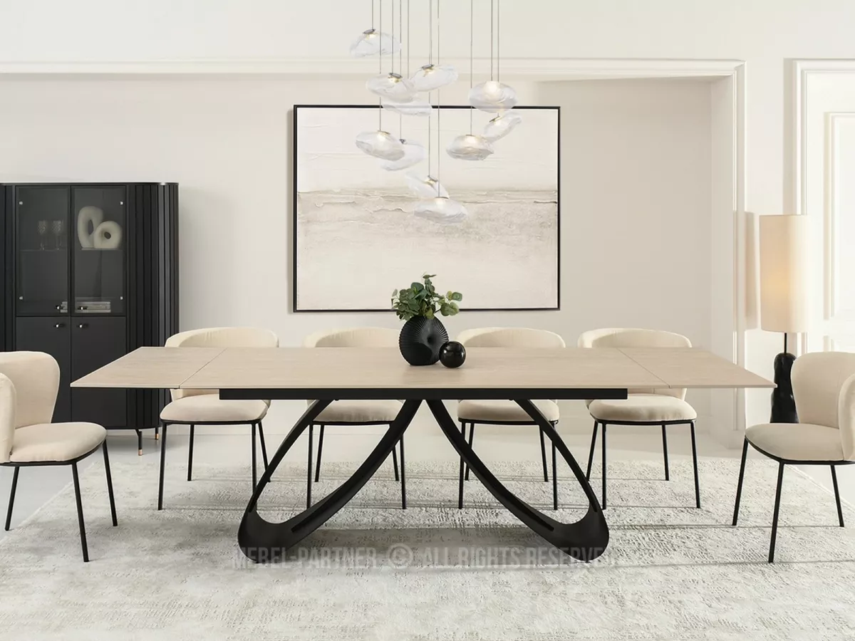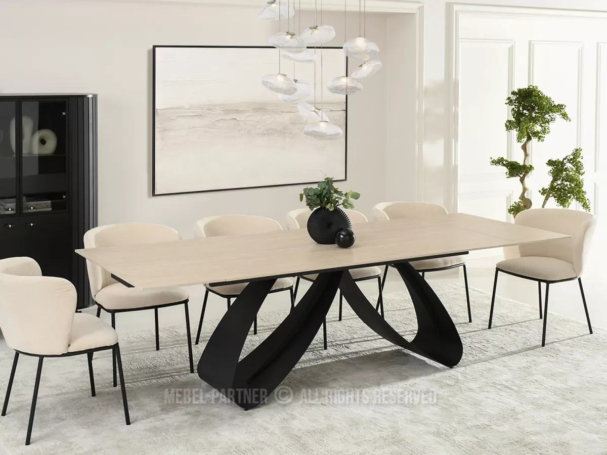 Rozkládací jídelní stůl EVONY se perfektně hodí do minimalistických a moderních prostor. Stůl je vybaven bezpečnostními nožičkami, které zdůrazňují vysokou kvalitu konstrukce.