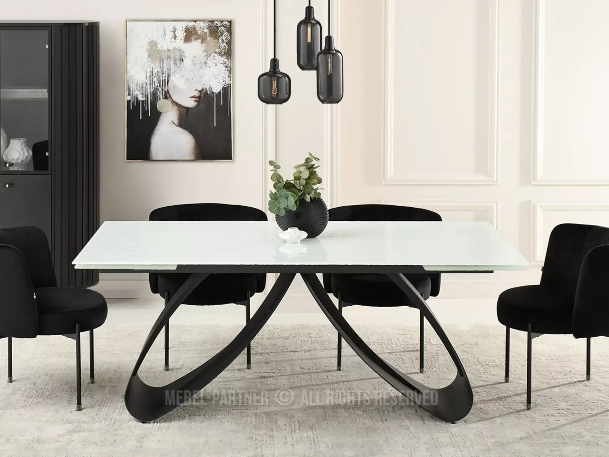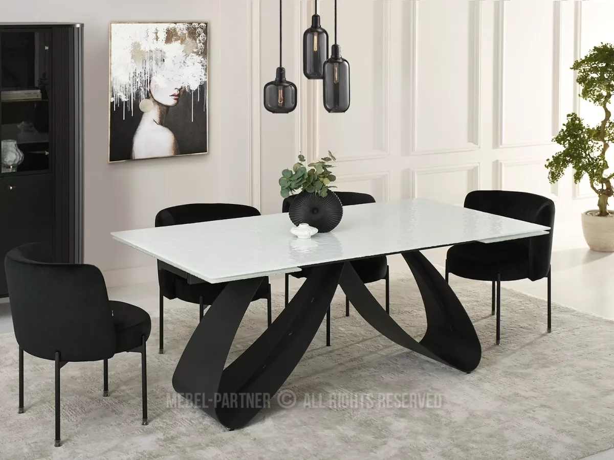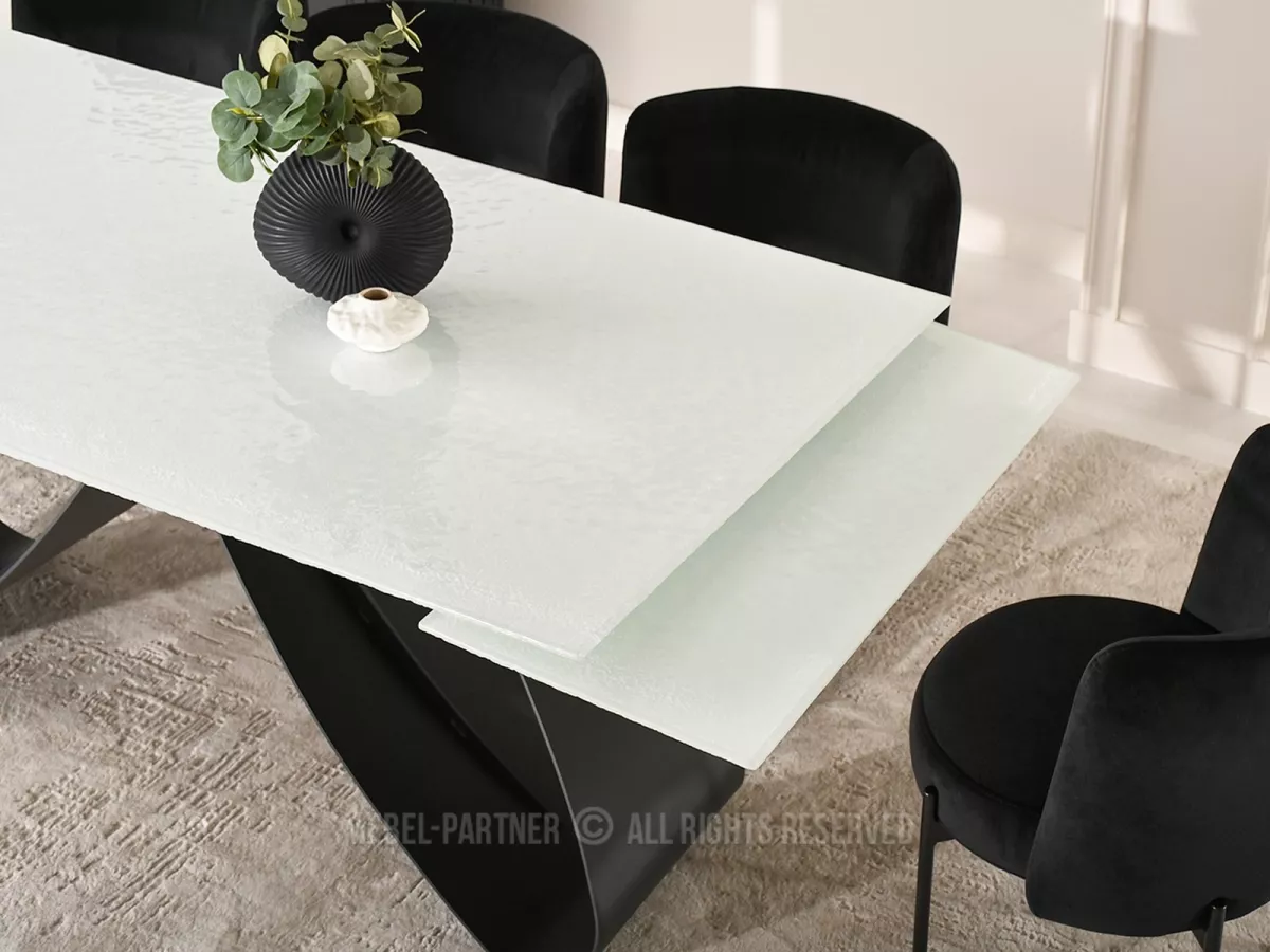 Rozkládací jídelní stůl EVONY se perfektně hodí do minimalistických a moderních prostor. Stůl je vybaven bezpečnostními nožičkami, které zdůrazňují vysokou kvalitu konstrukce.
