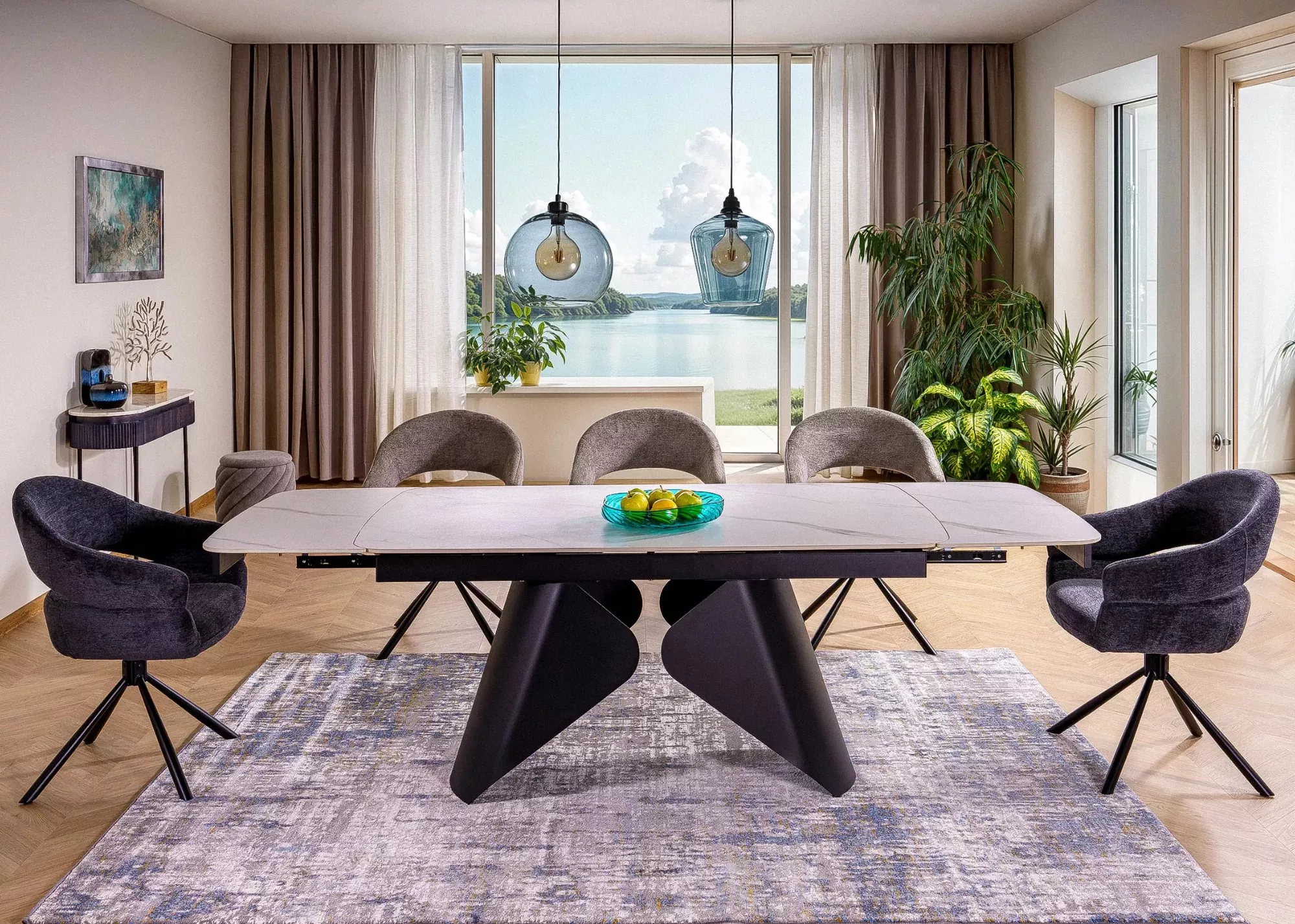 Rozkládací jídelní stůl VANGEL je charakteristický především svou pevnou designovou podstavou. Stůl se stane hlavním bodem každé moderní jídelny nebo kuchyně. Po rozložení je stůl vhodný až pro 12 osob.