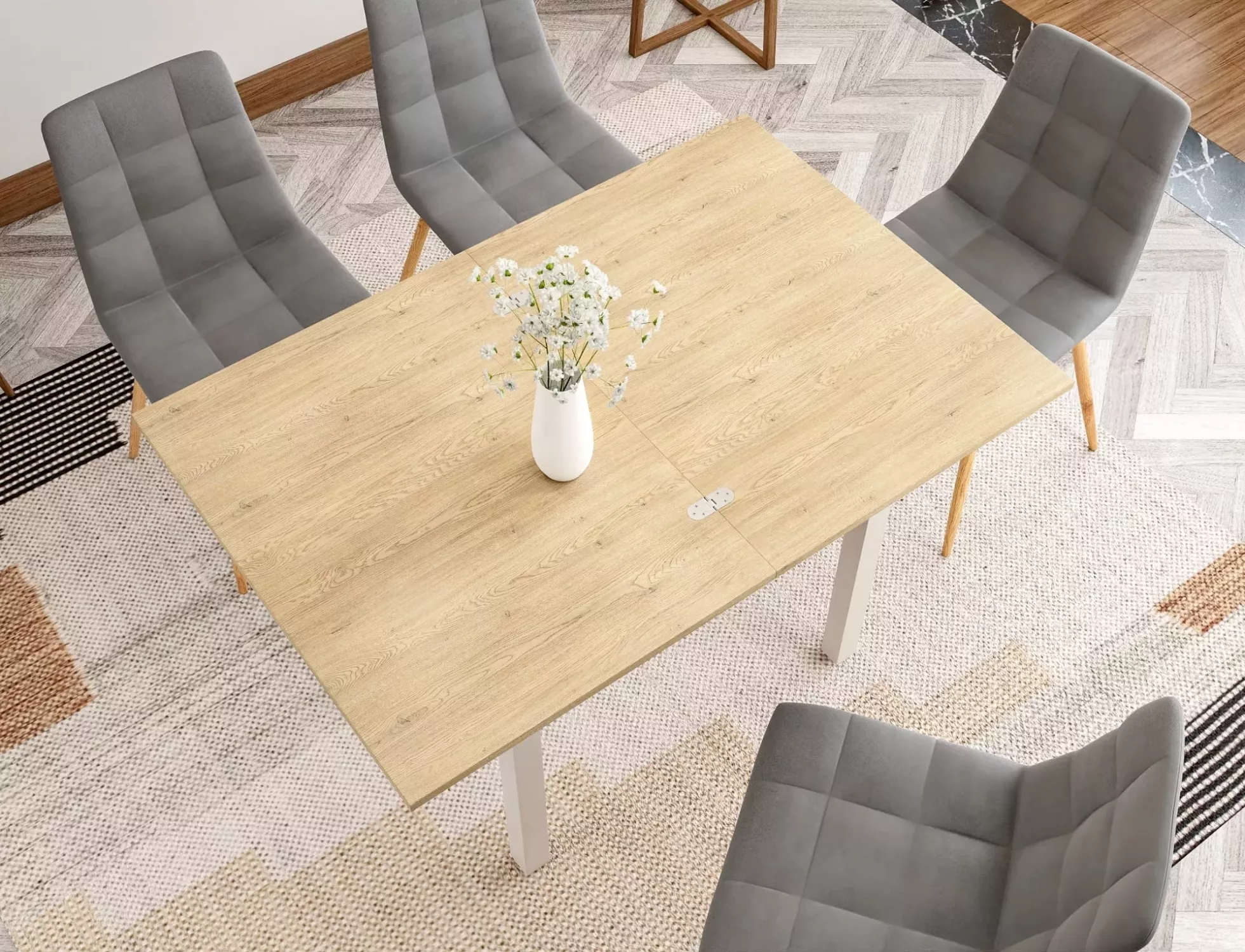 Rozkládací jídelní stůl HELMUT díky svému minimalistickému provedení skvěle zapadne do všech moderních jídelen a kuchyní. Stabilitu stolu zajišťuje pevná konstrukce.