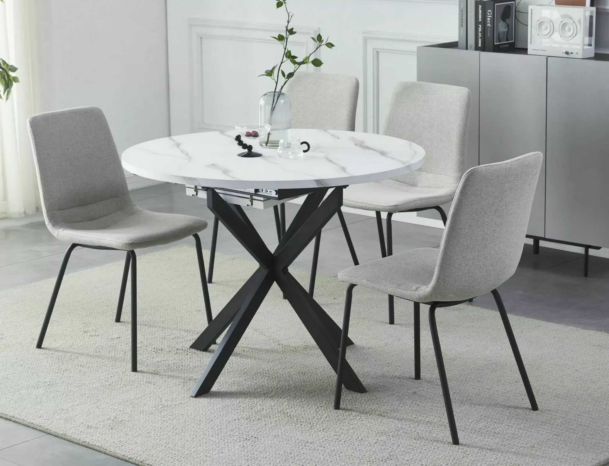 Rozkládací jídelní stůl EVELIO skvěle zapadne do všech moderních jídelen a kuchyní. Kvalitu zpracování podtrhuje designová kovová podstava.