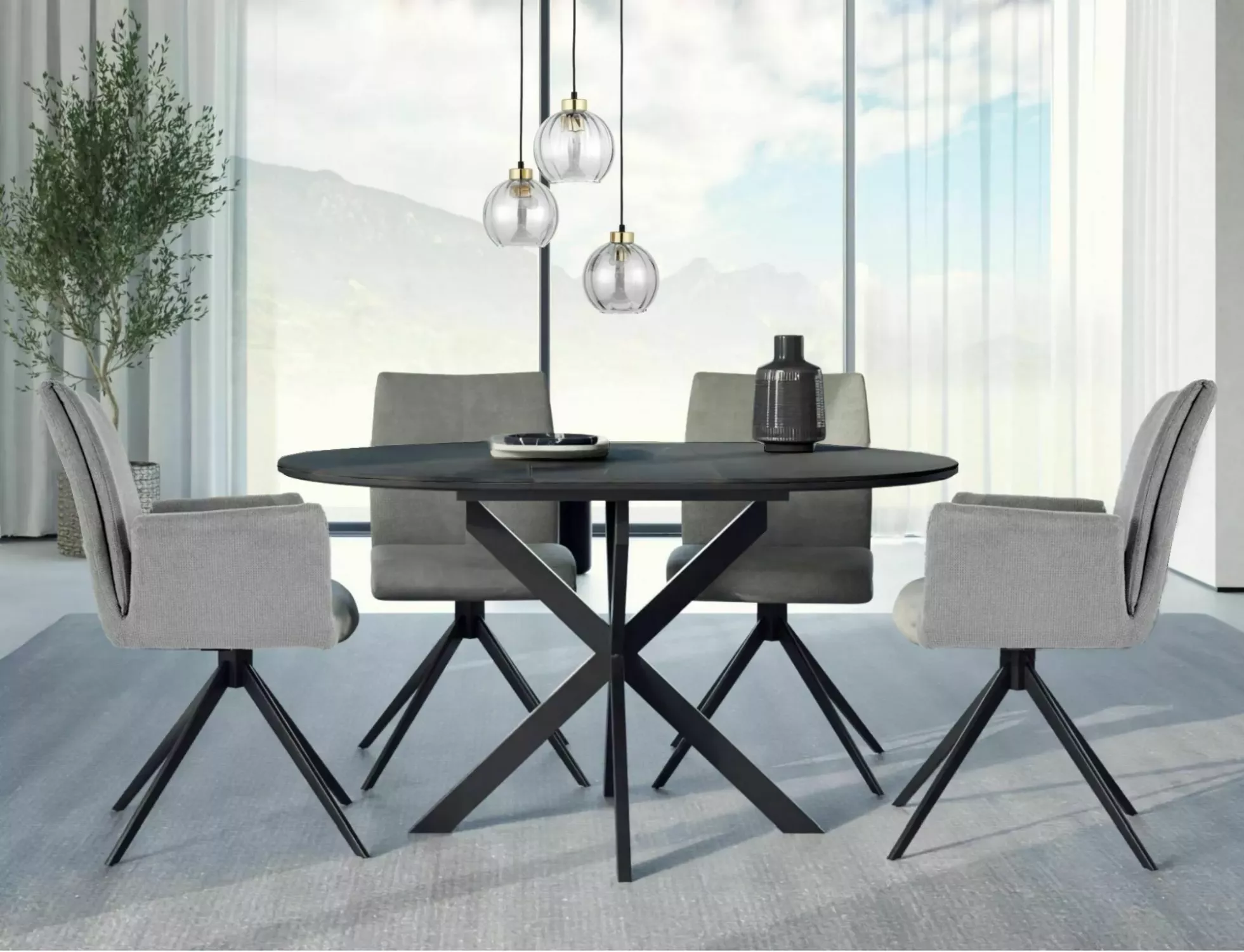Rozkládací jídelní stůl EVELIO skvěle zapadne do všech moderních jídelen a kuchyní. Kvalitu zpracování podtrhuje designová kovová podstava.