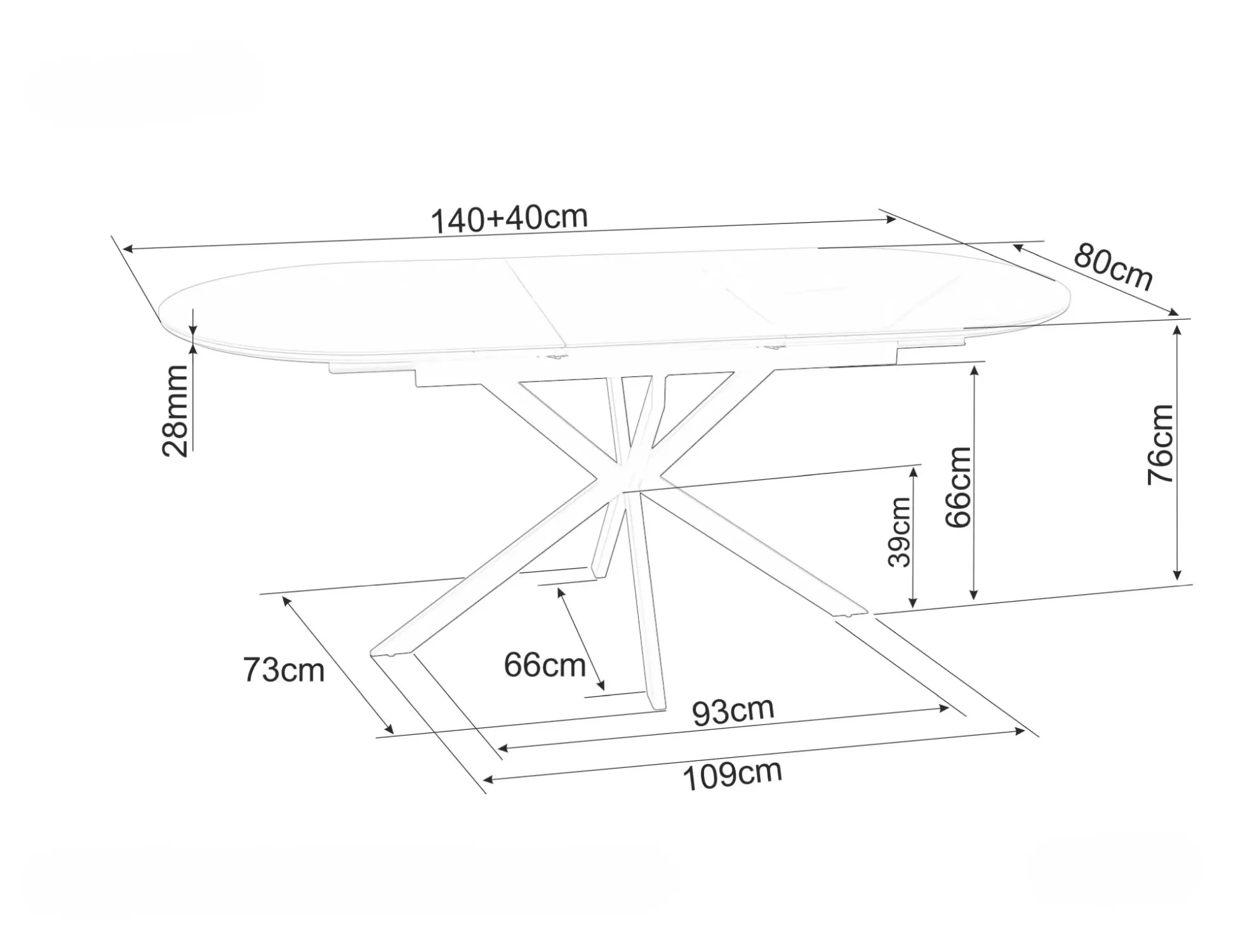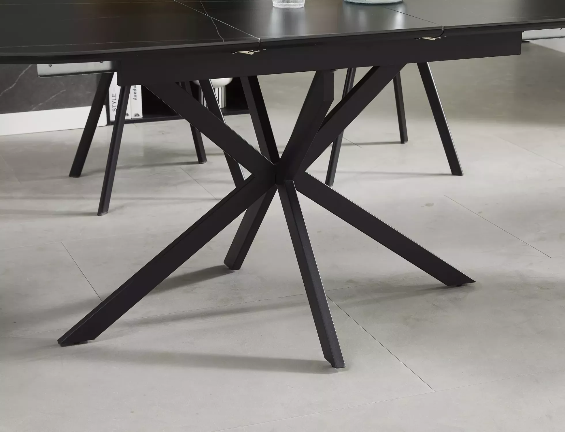 Rozkládací jídelní stůl EVELIO skvěle zapadne do všech moderních jídelen a kuchyní. Kvalitu zpracování podtrhuje designová kovová podstava.