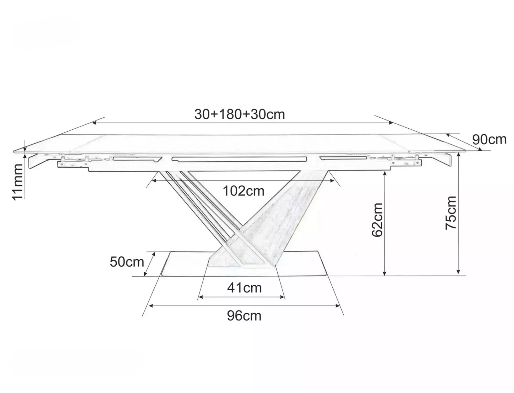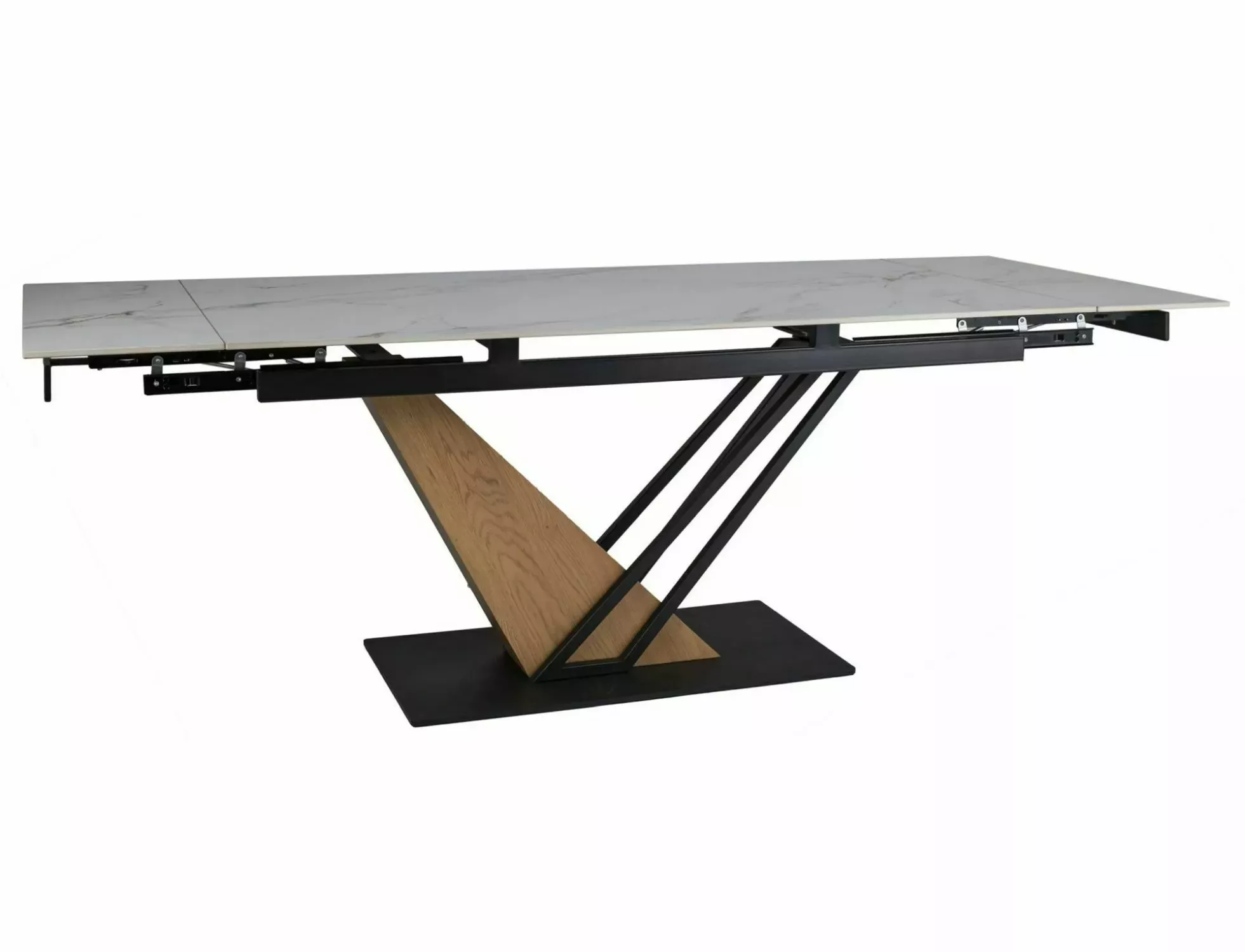 Designový rozkládací stůl FARES zaujme stylovou podstavou, která stolu dodává stabilitu. Deska stolu je vyrobena z kvalitní keramiky. Po rozložení je stůl vhodný až pro 12 osob.
