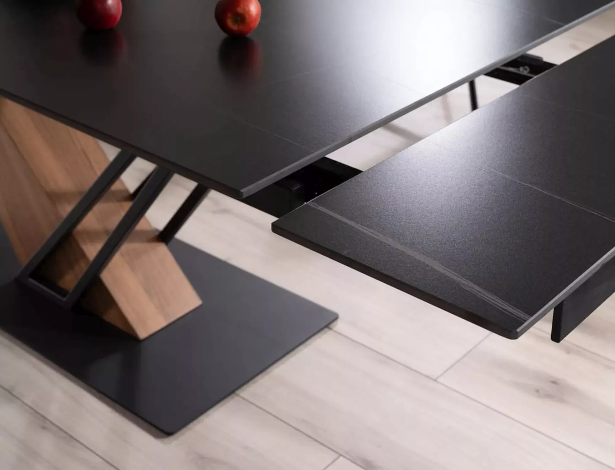Designový jídelní stůl FARES zaujme stylovou podstavou, která stolu dodává stabilitu. Deska stolu je vyrobena z kvalitní keramiky. Po rozložení je stůl vhodný až pro 10 osob.