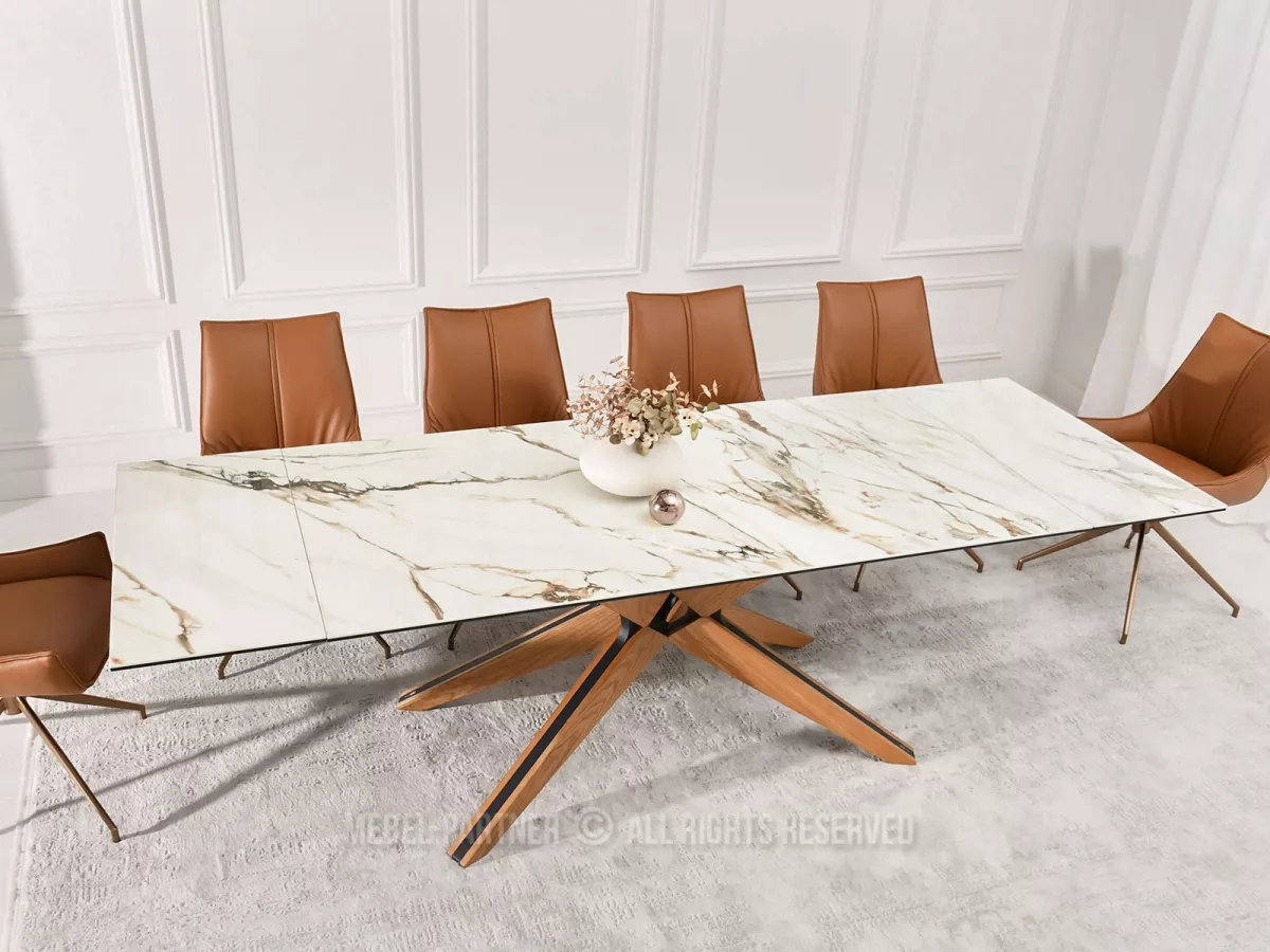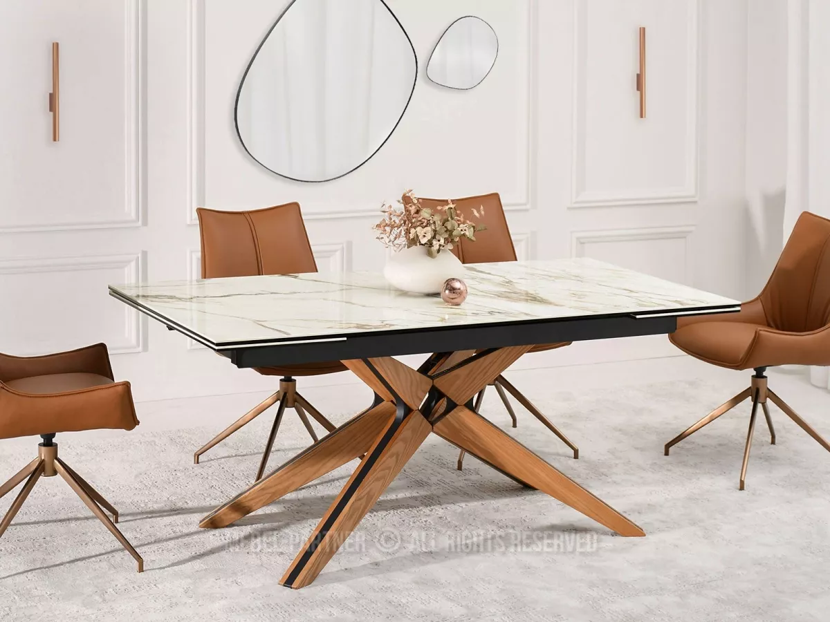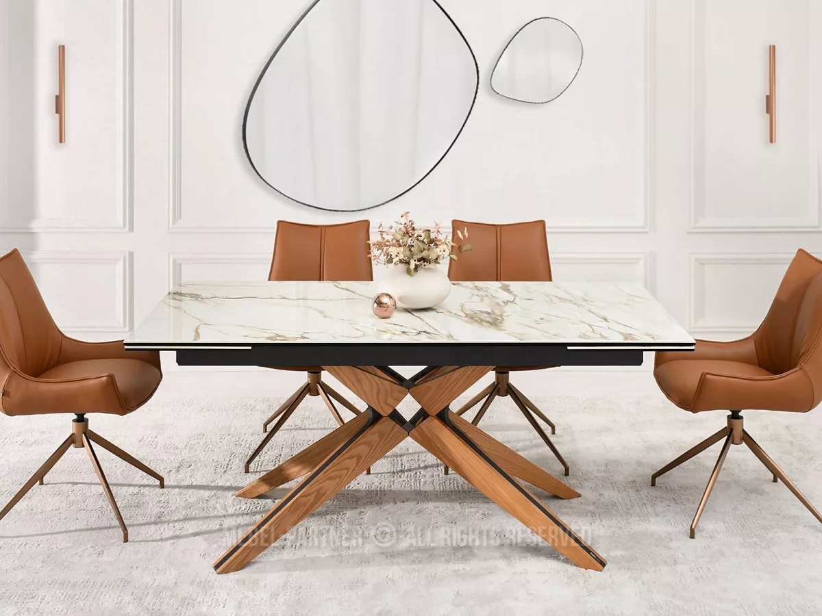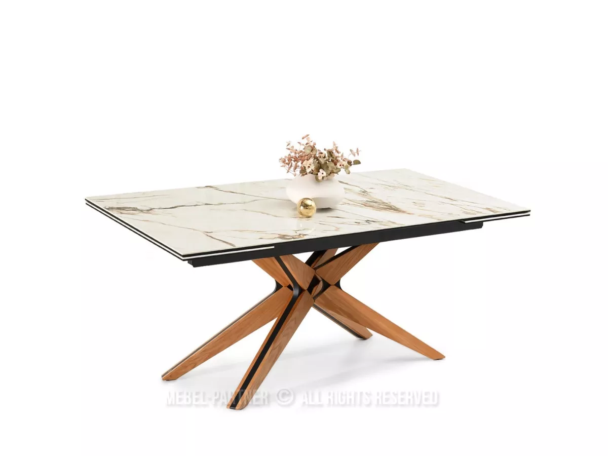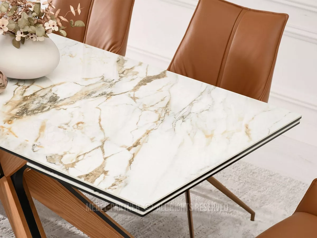 Rozkládací jídelní stůl FEDOR - béžový mramor / dub