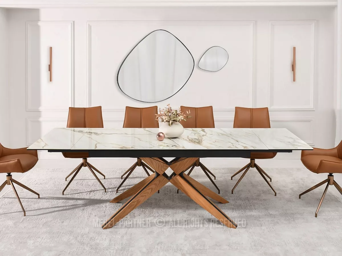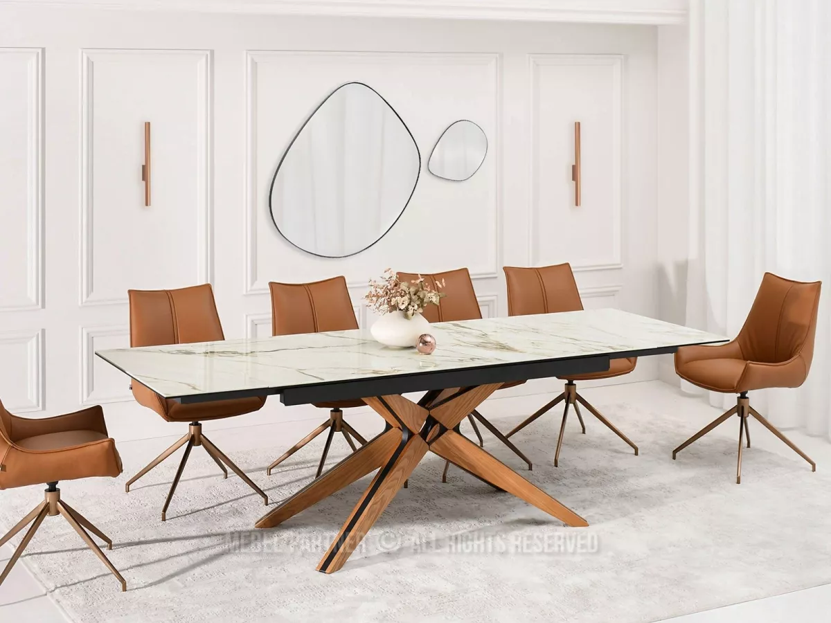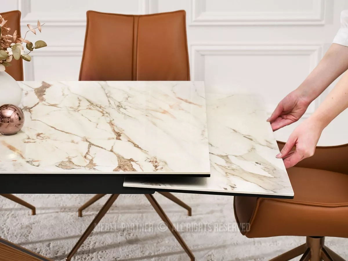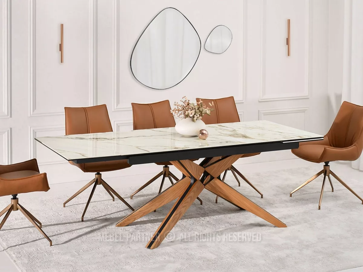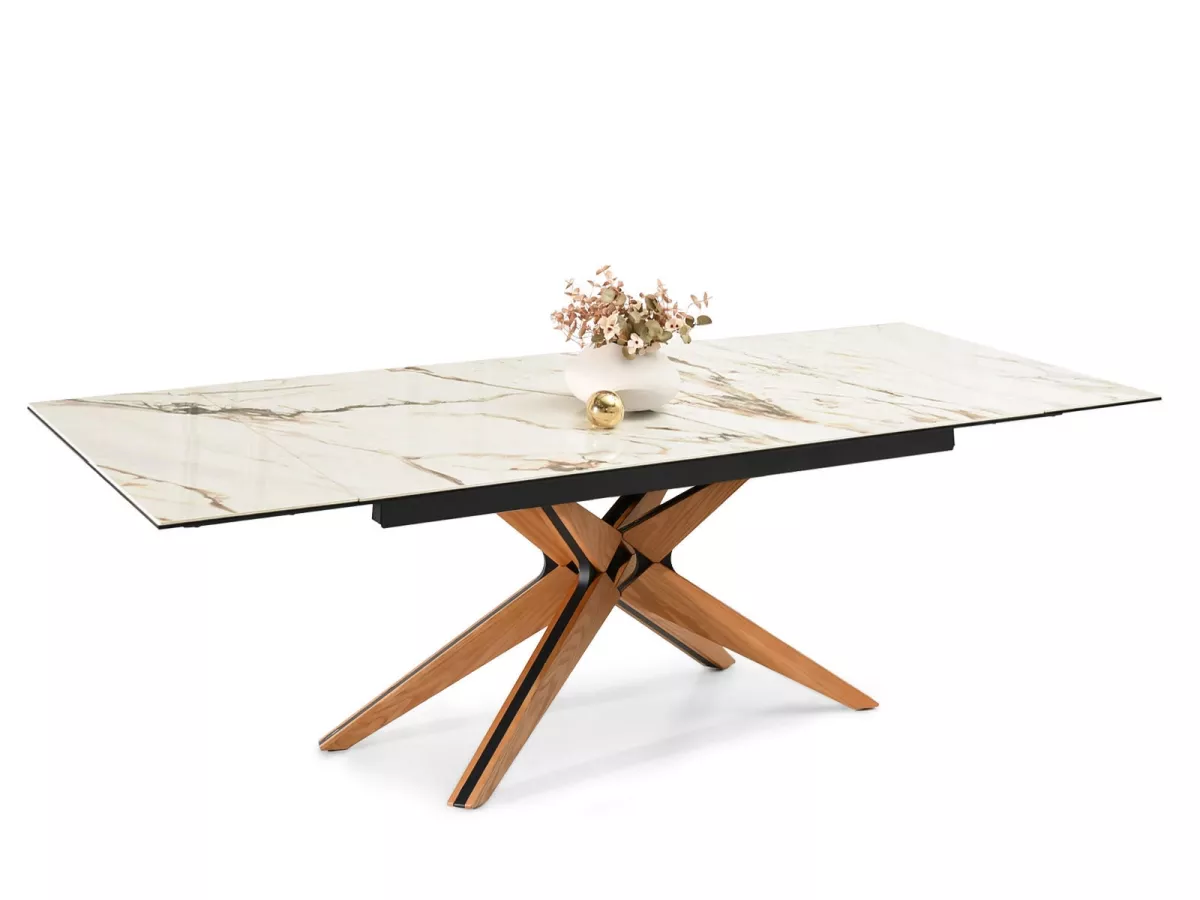 Rozkládací jídelní stůl FEDOR - béžový mramor / dub