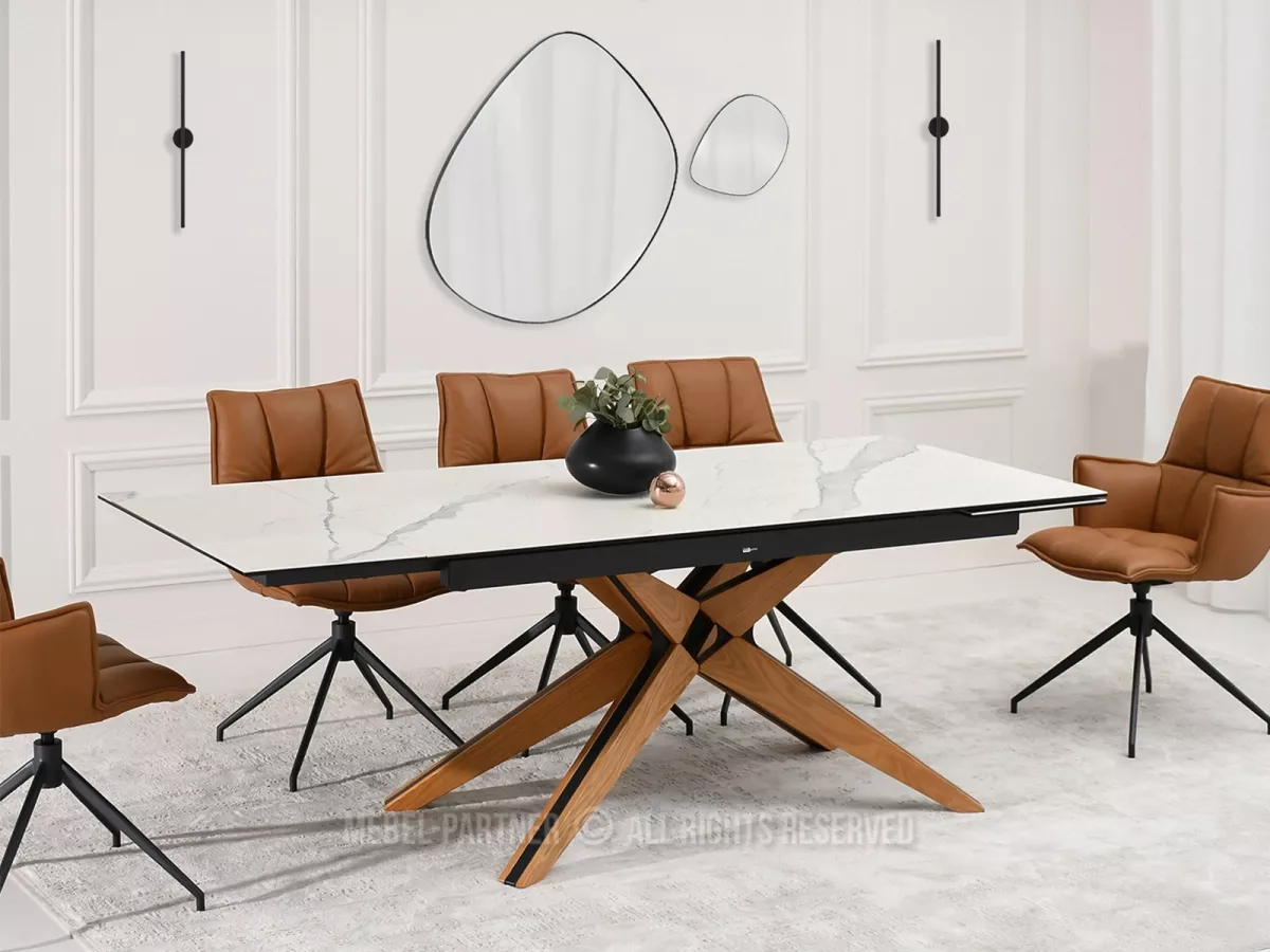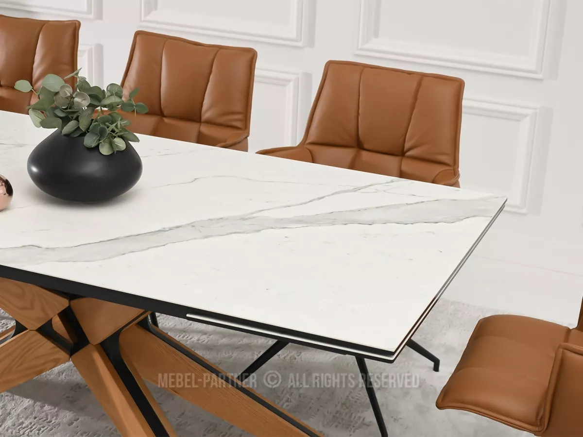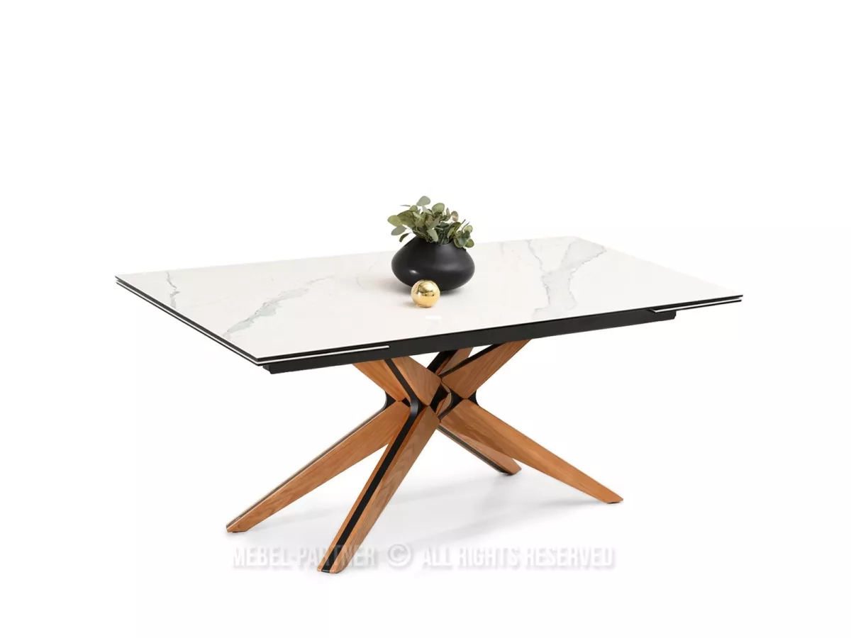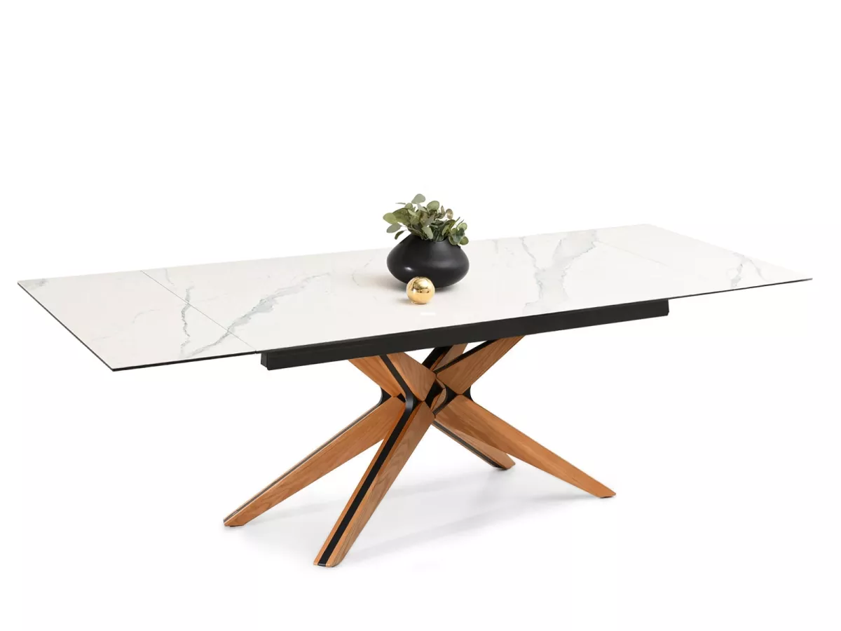 Rozkládací jídelní stůl FEDOR - bílý mramor / dub