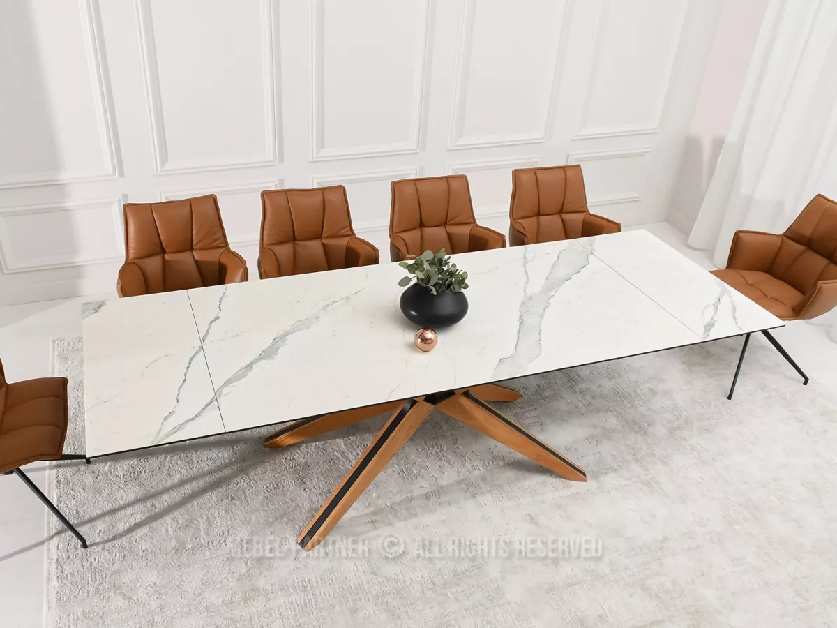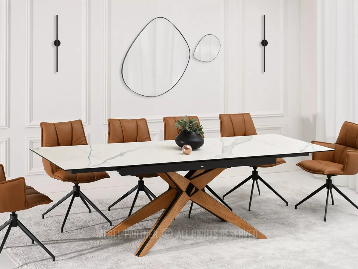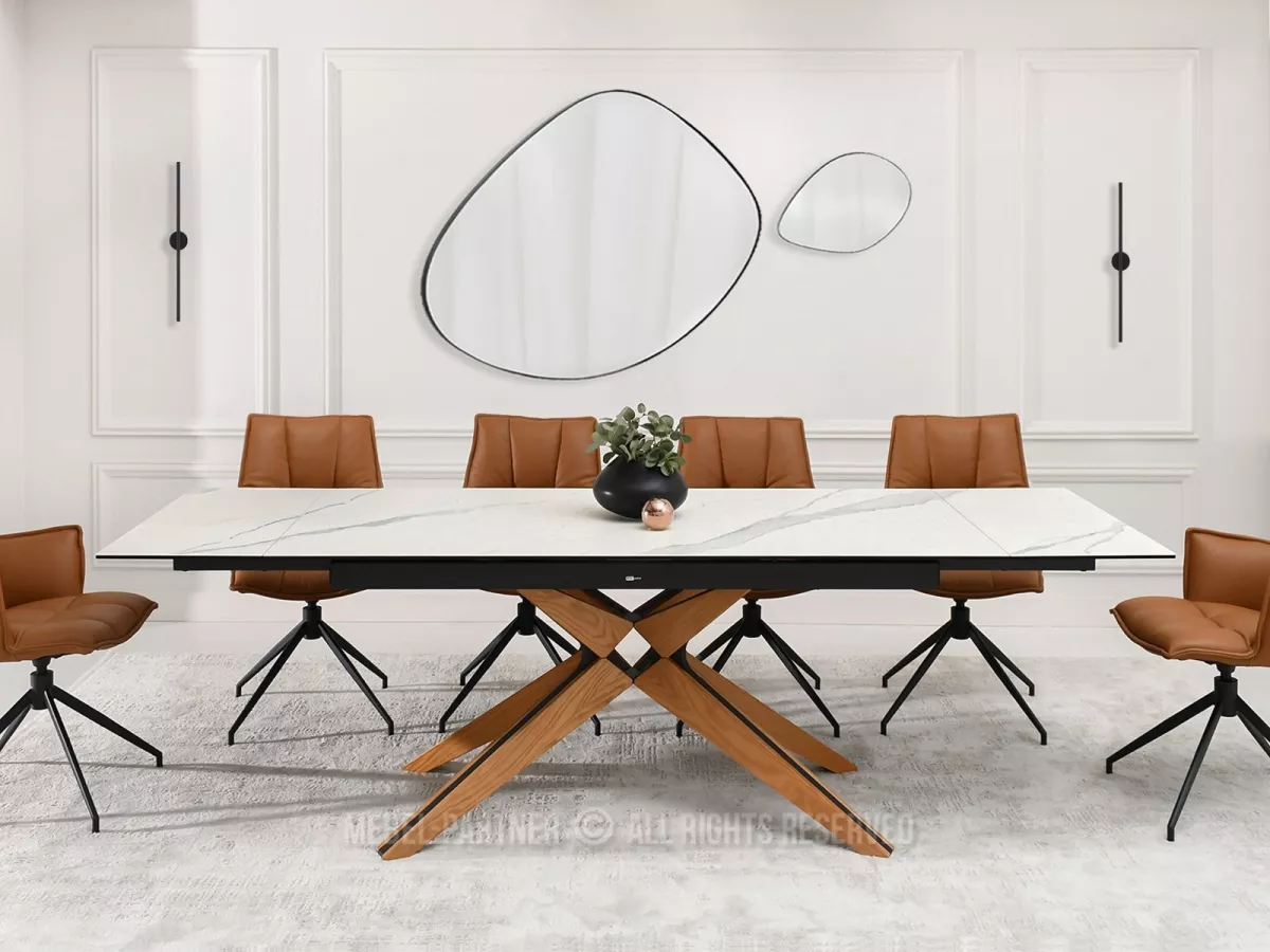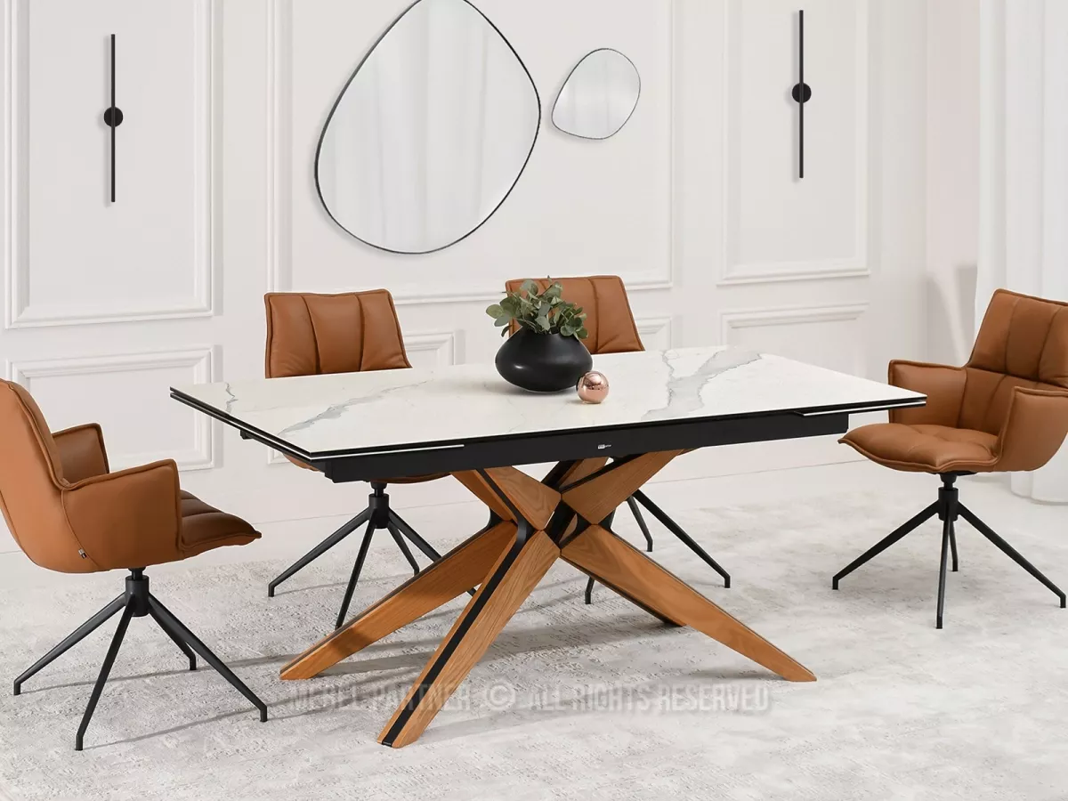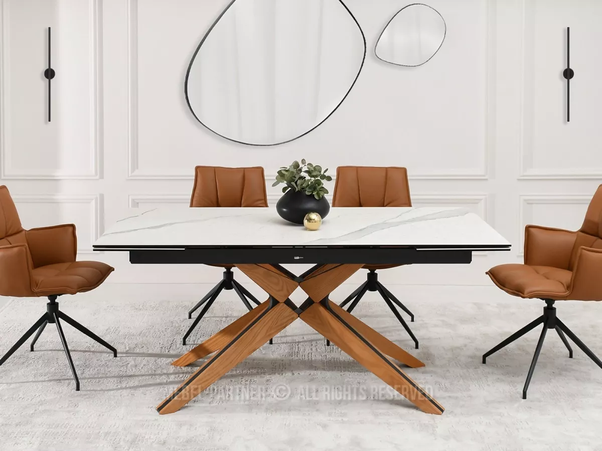 Rozkládací jídelní stůl FEDOR - bílý mramor / dub