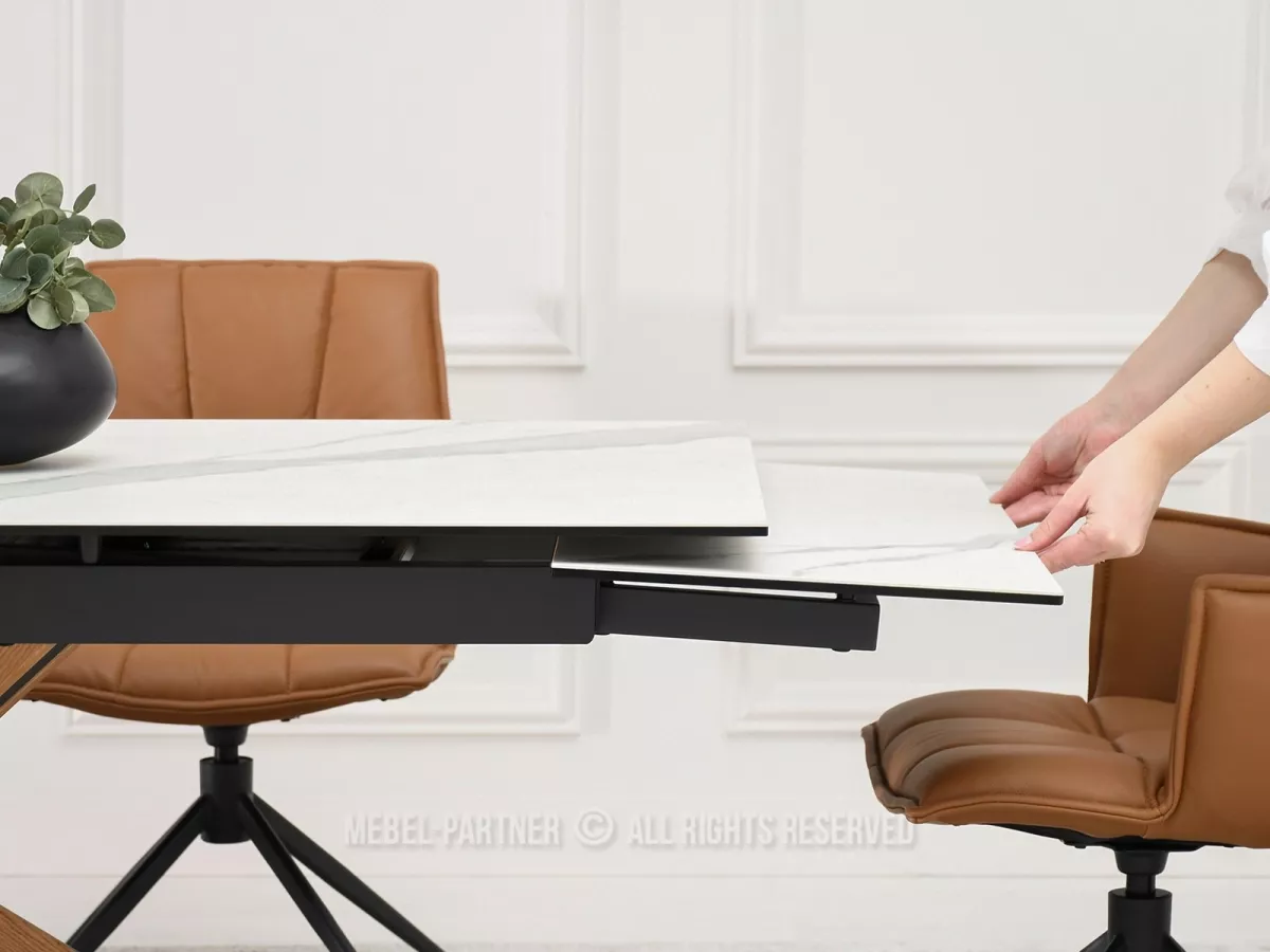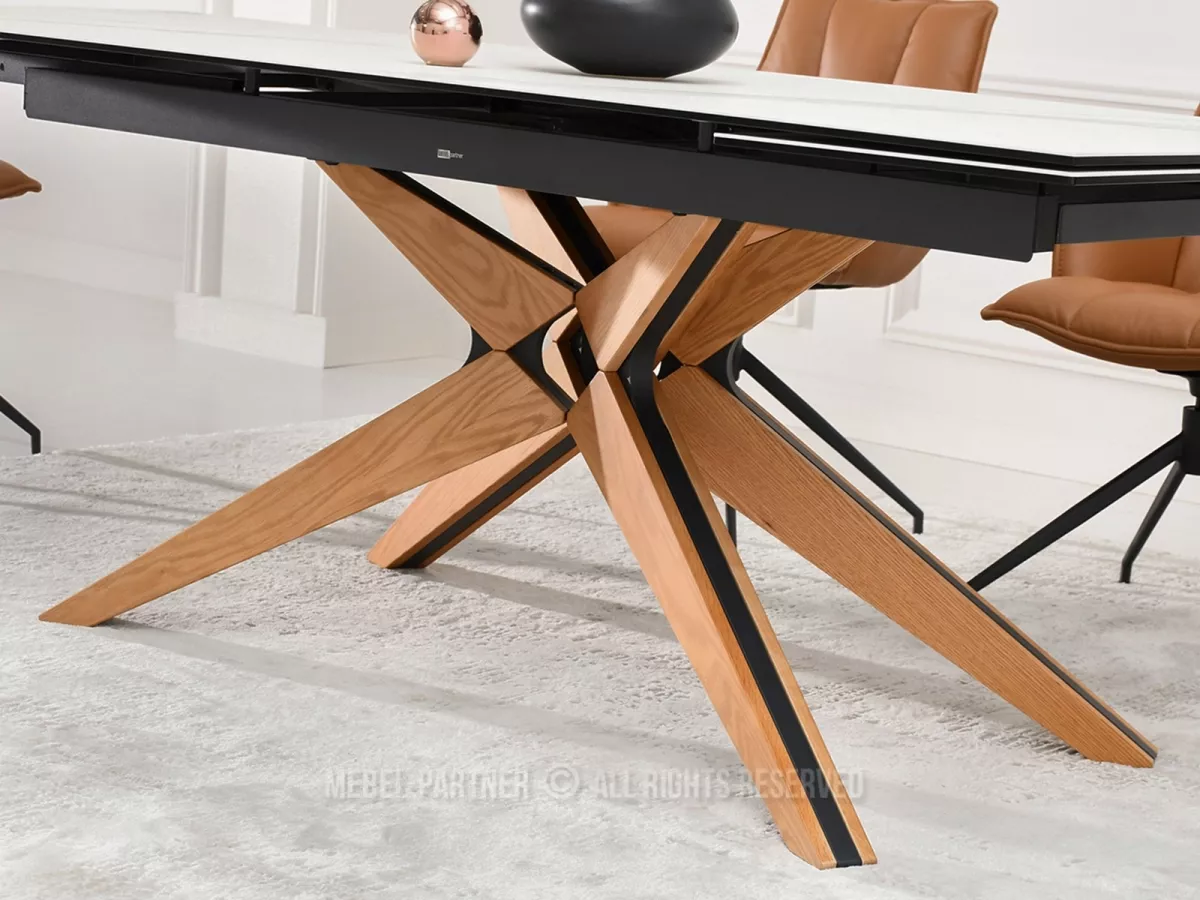 Rozkládací jídelní stůl FEDOR vyniká designovou masivní podstavou, která dodává stolu potřebnou stabilitu. Díky možnosti rozložení na šířku až 260 cm bude stůl ideální při větších rodinných setkáních.
