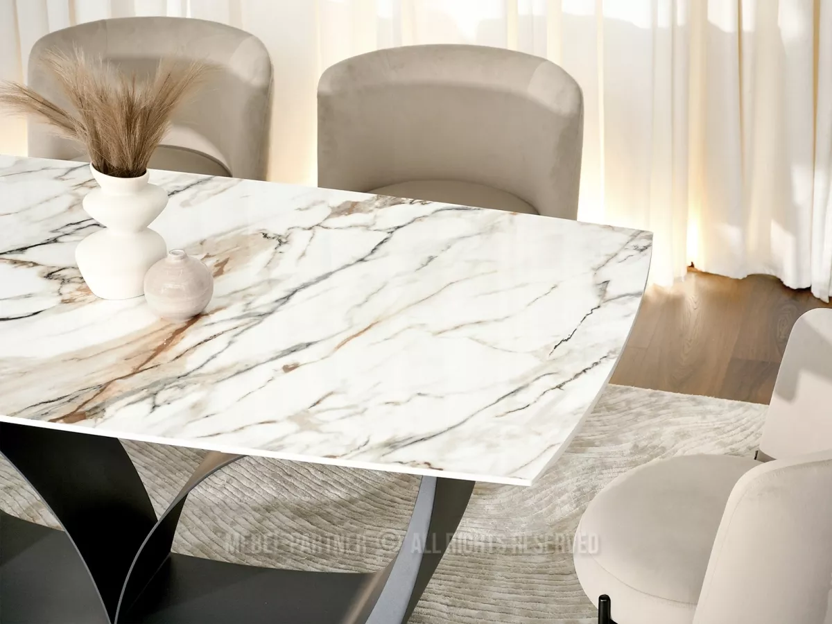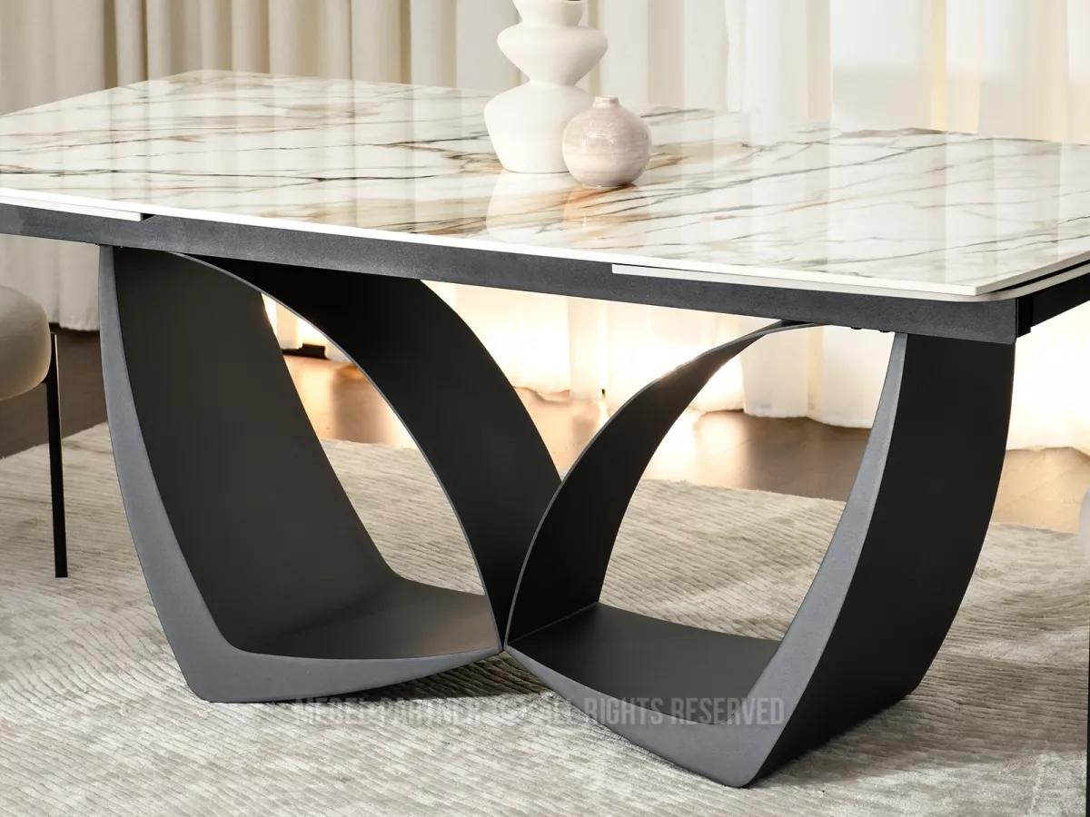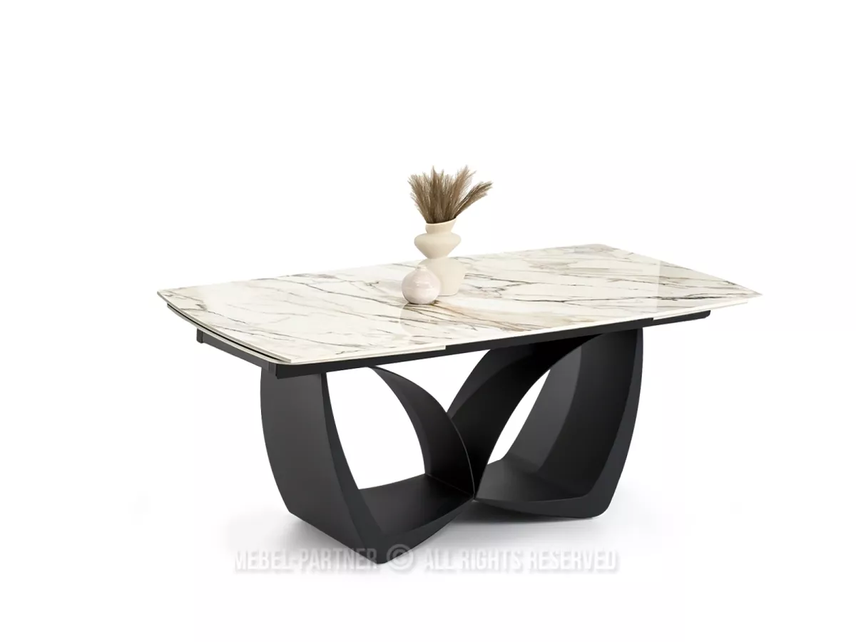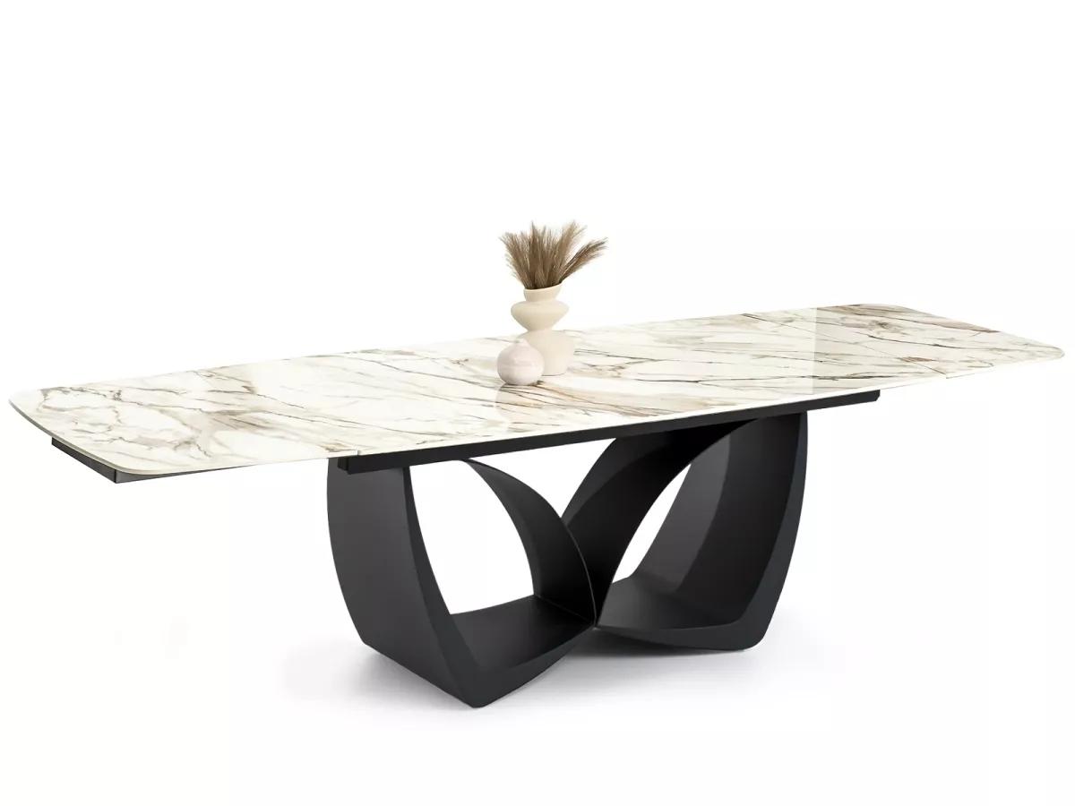 Designový rozkládací jídelní stůl FEDIR - béžový mramor / černý