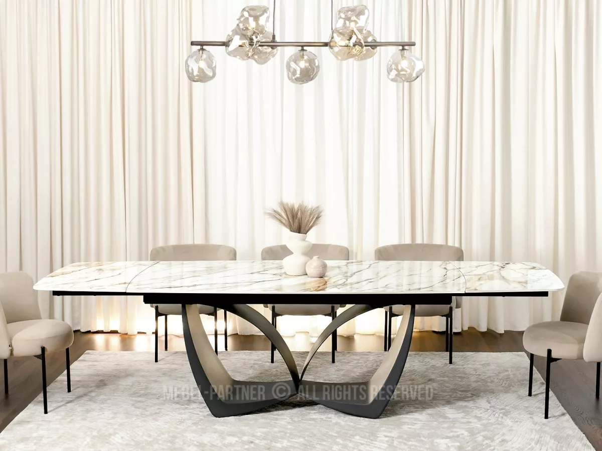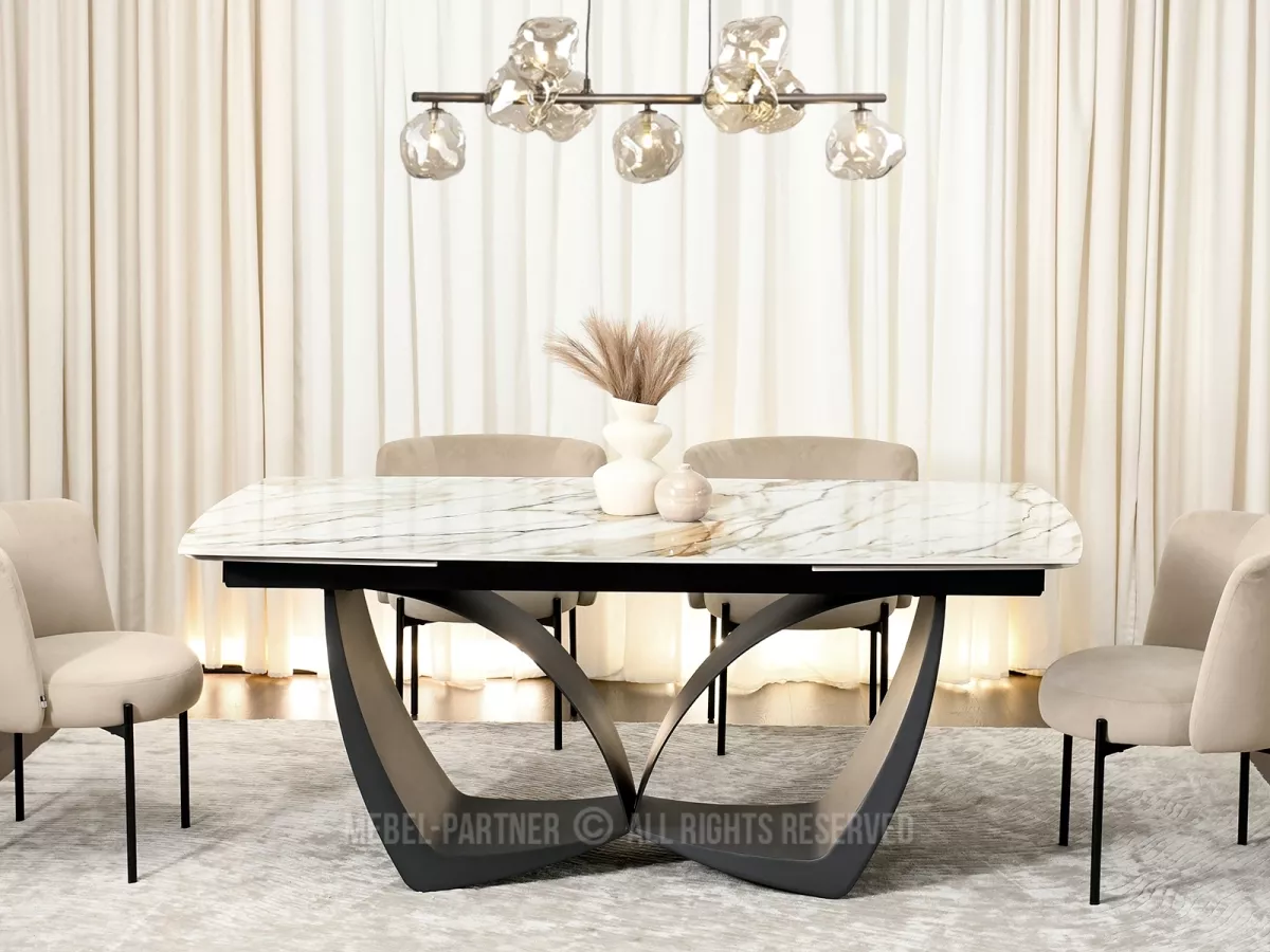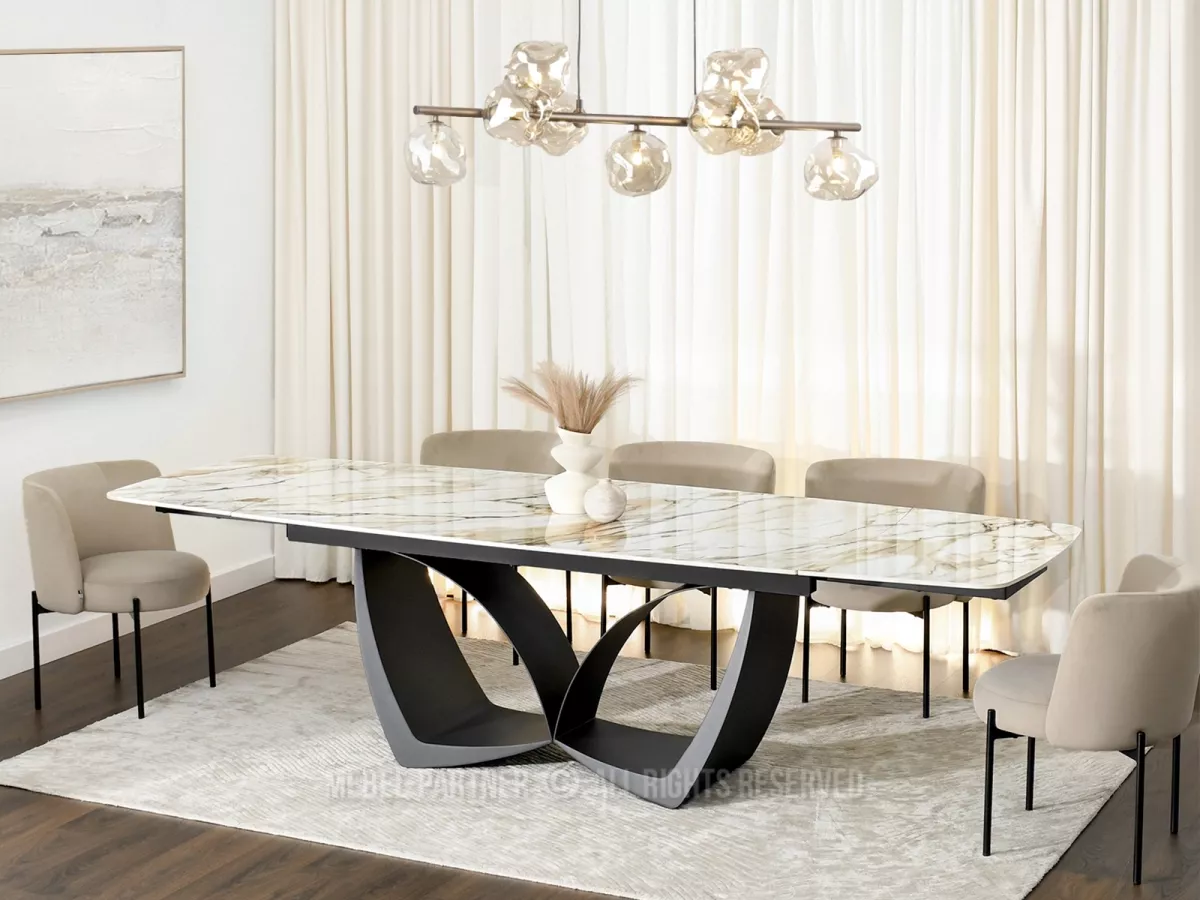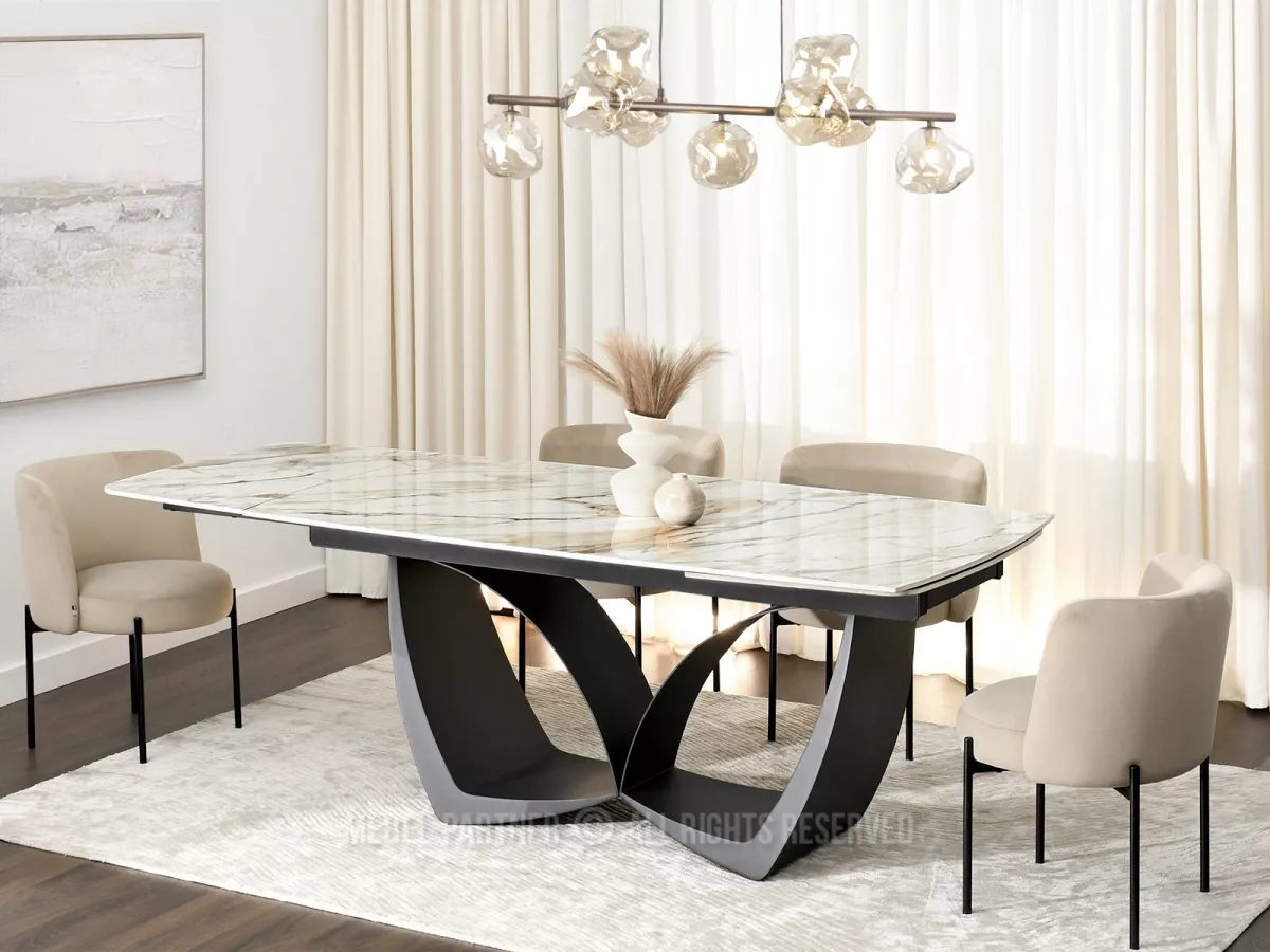 Designový rozkládací jídelní stůl FEDIR - béžový mramor / černý
