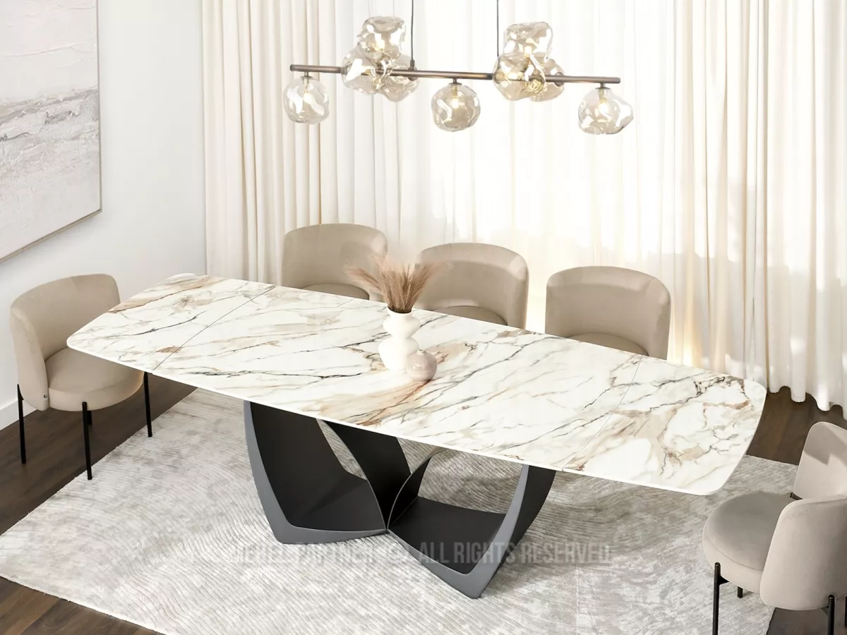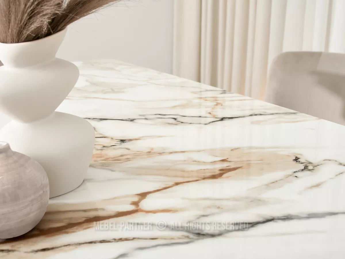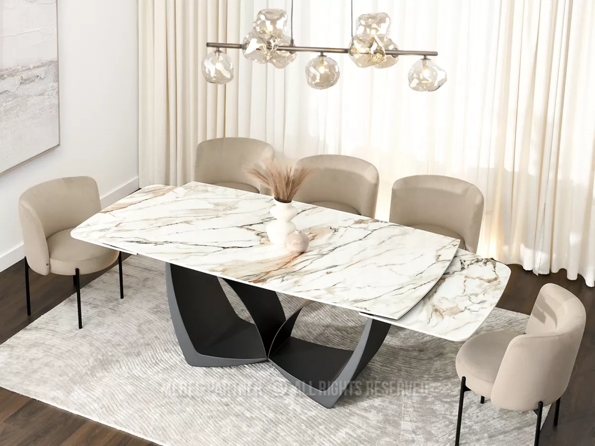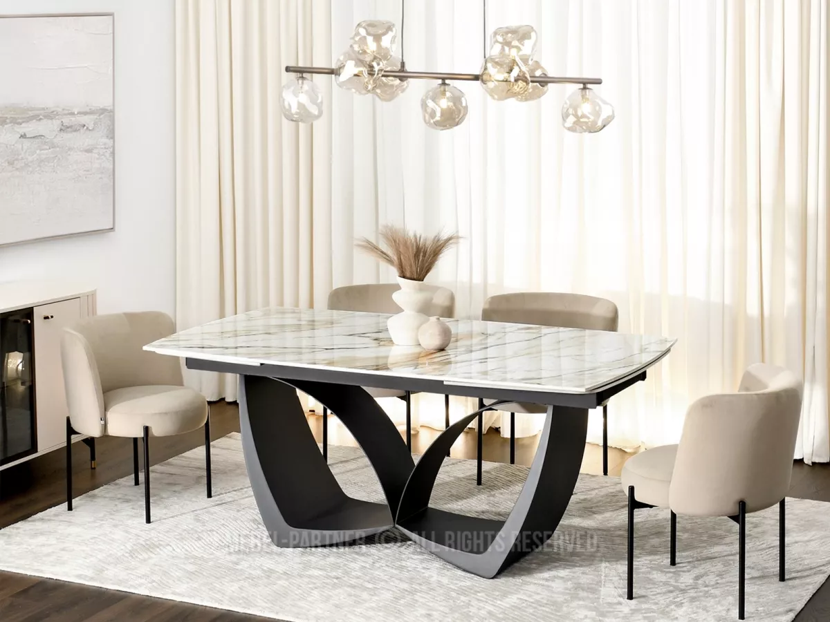 Designový rozkládací jídelní stůl FEDIR - béžový mramor / černý