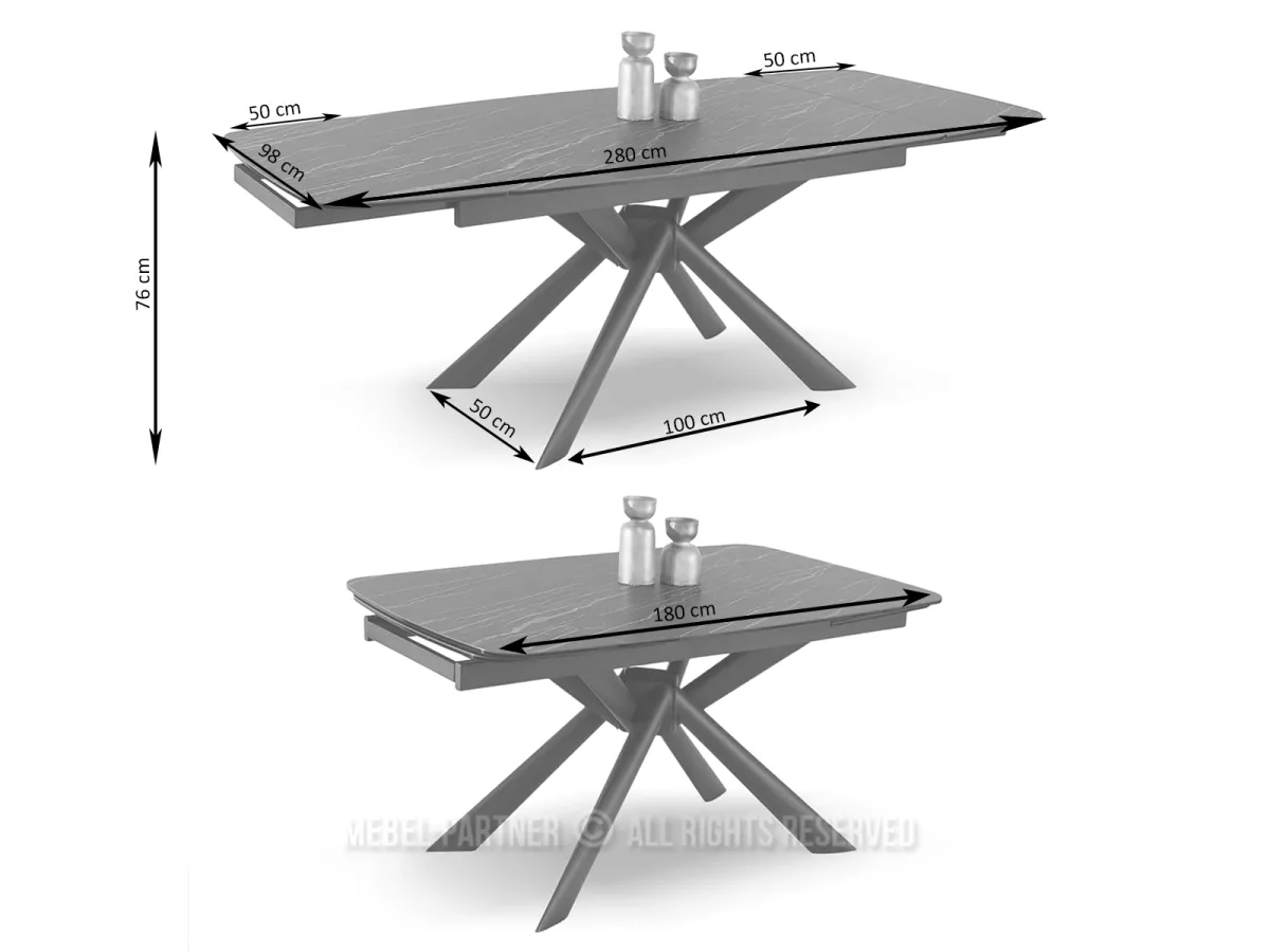 Rozkládací jídelní stůl 180(280)x98 NODIN - šedý / černý