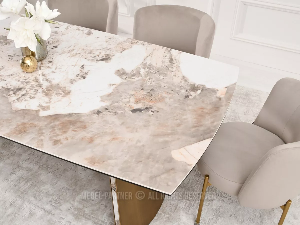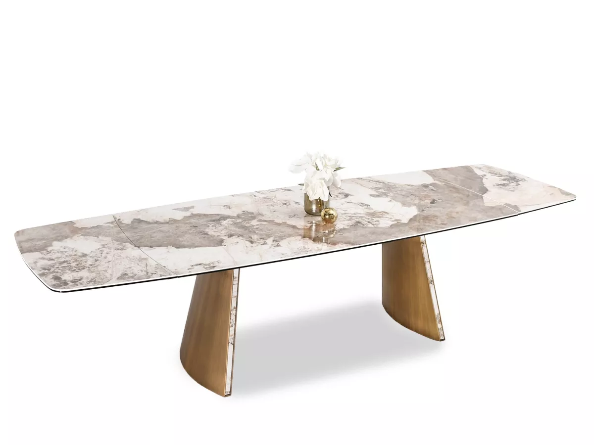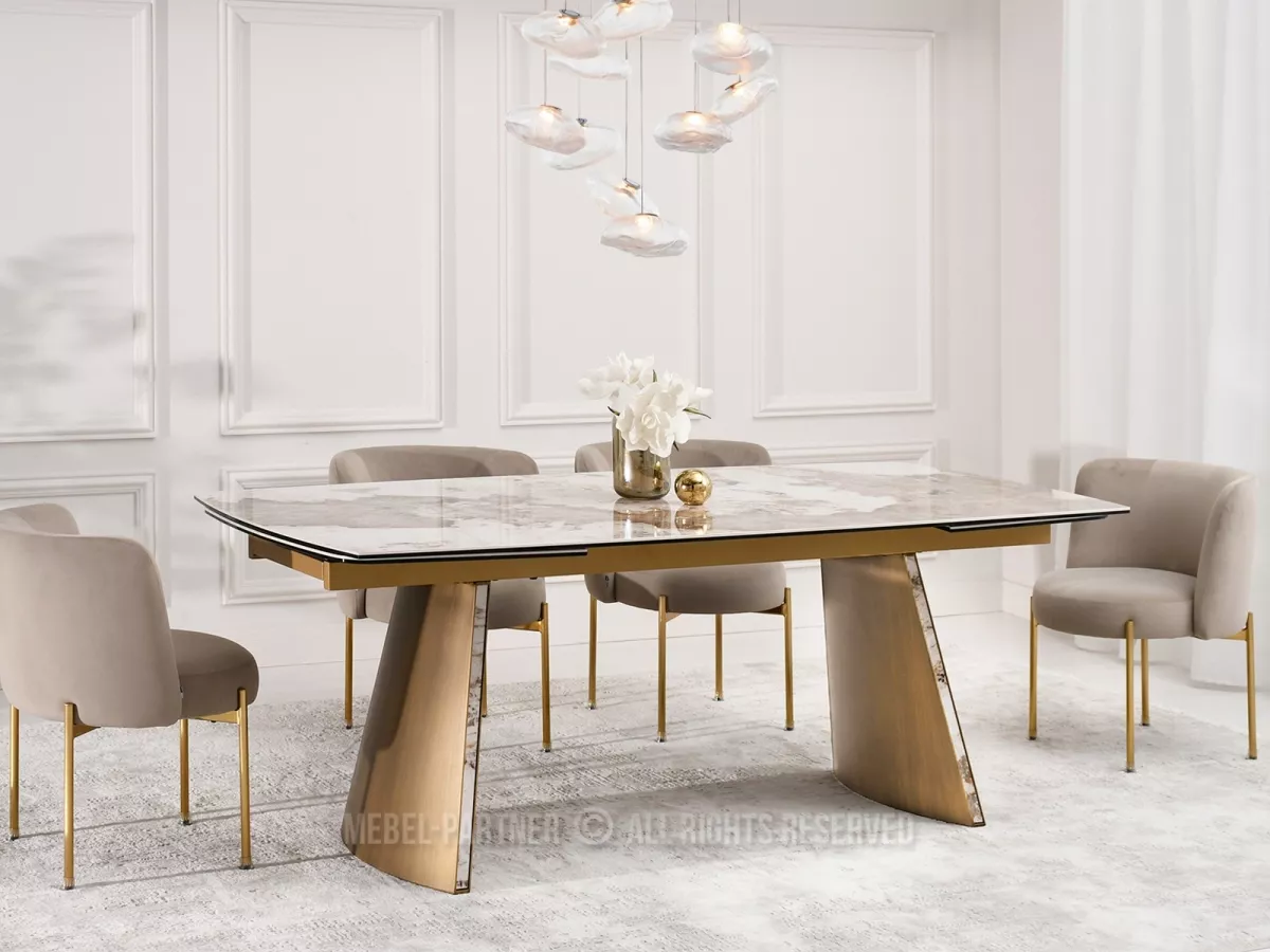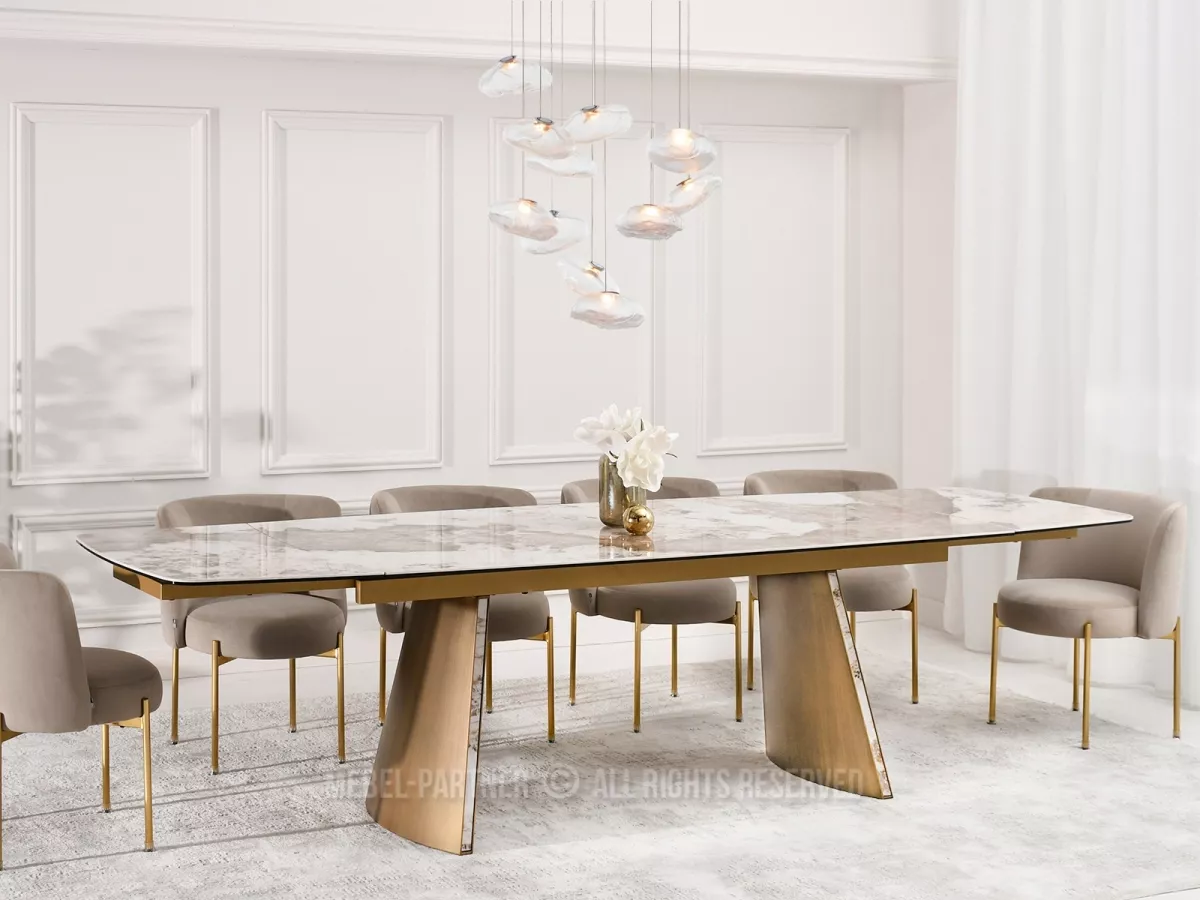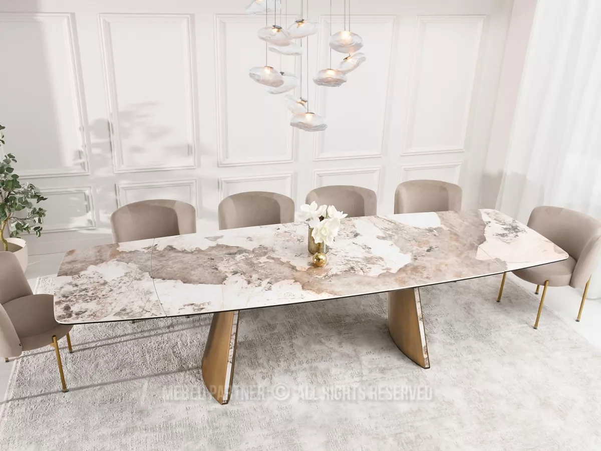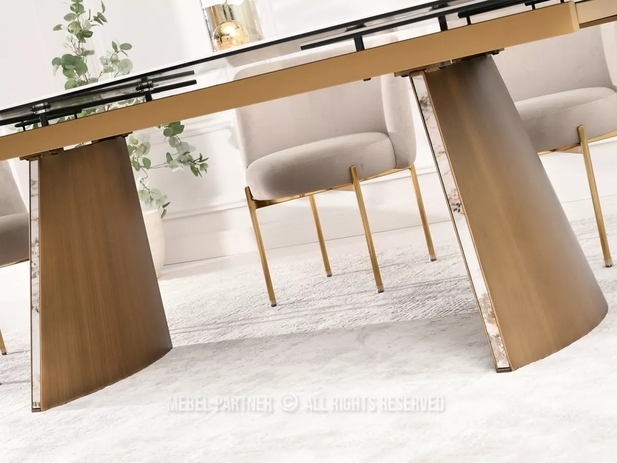 Rozkládací jídelní stůl GARRIS se vyznačuje především dekorem dřeva a mramoru. Stůl se stane hlavním bodem každé moderní jídelny nebo kuchyně a dodá jí nádech elegance a luxusu. Stůl disponuje rozkládací funkcí na šířku 300 cm a je tak vhodný až pro 12 osob.