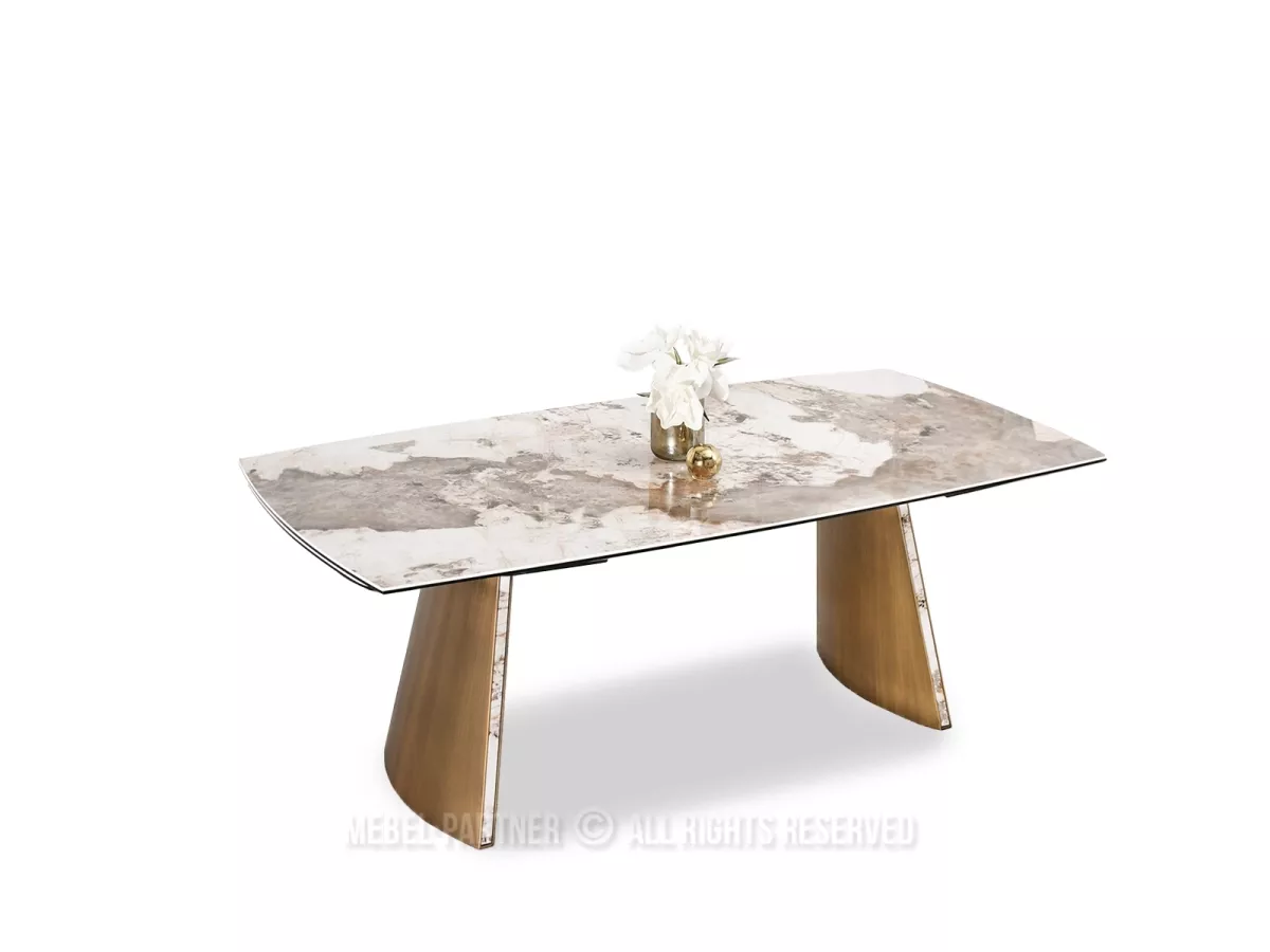 Rozkládací jídelní stůl GARRIS - bílý mramor / hnědý