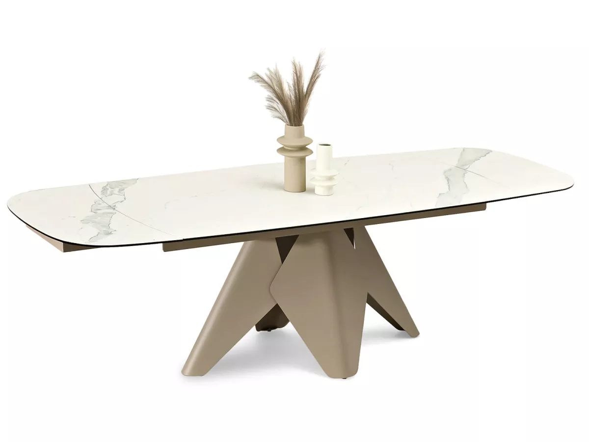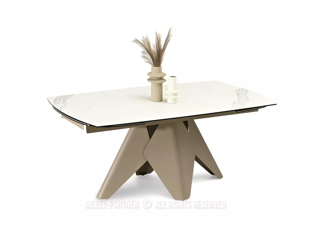 Rozkládací jídelní stůl HAMAD - bílý mramor / béžový