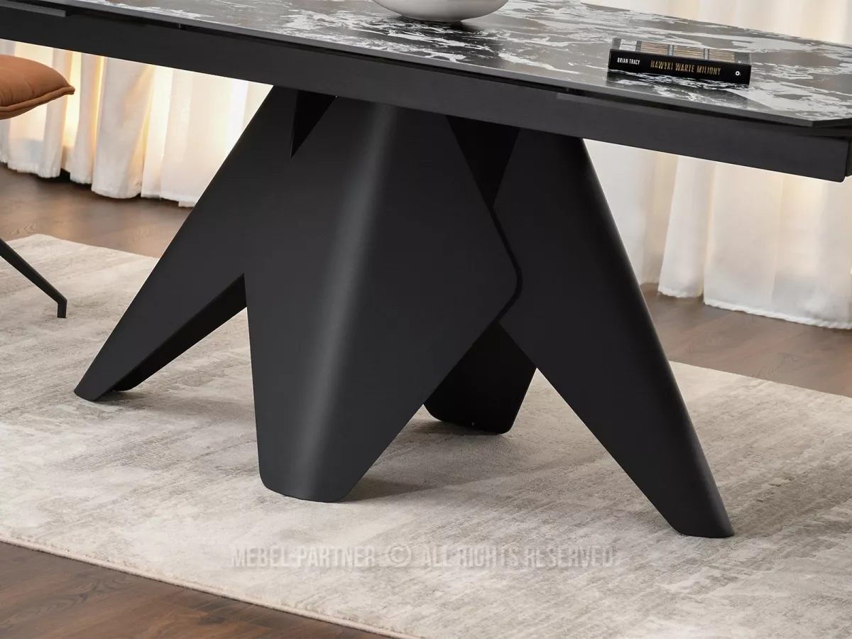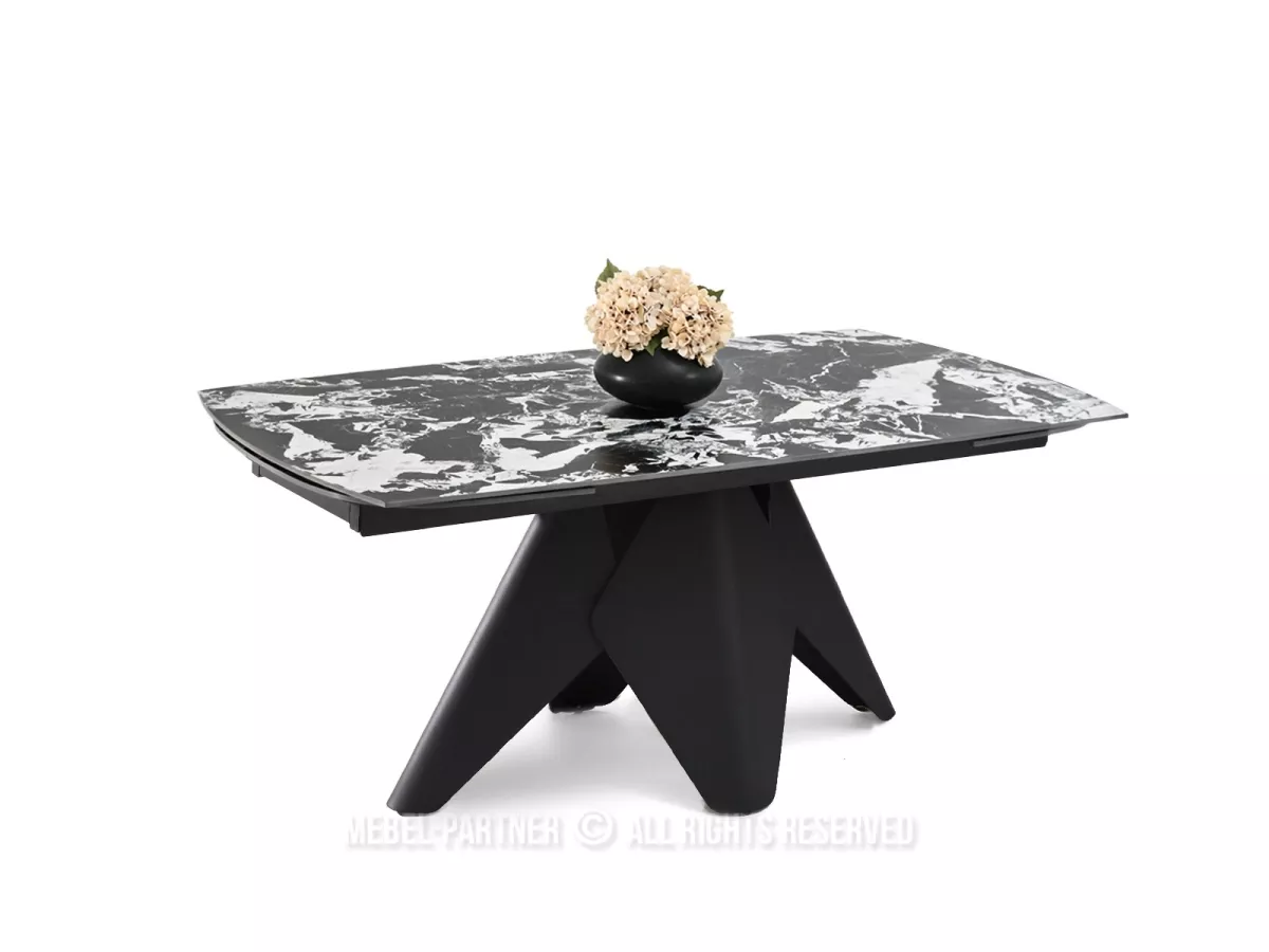 Rozkládací jídelní stůl HAMAD - černobílý mramor / černý