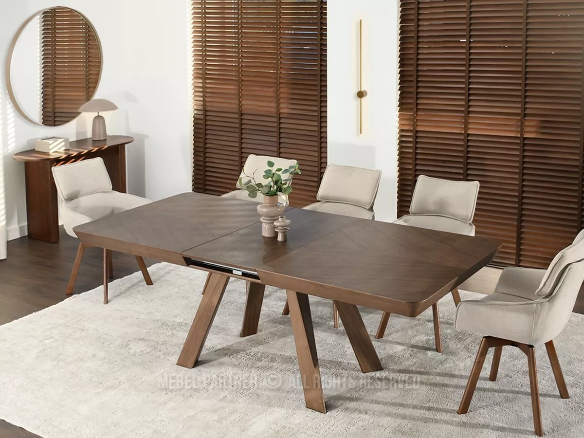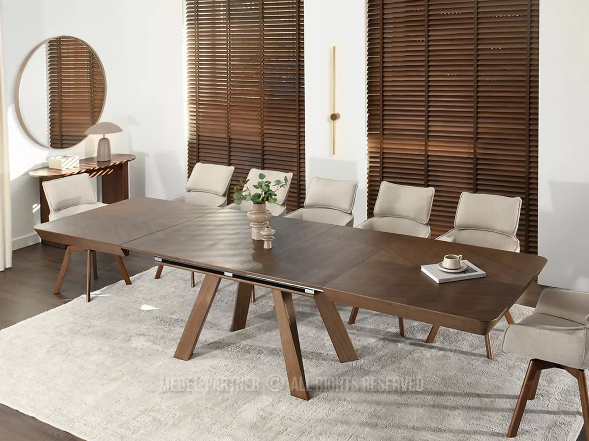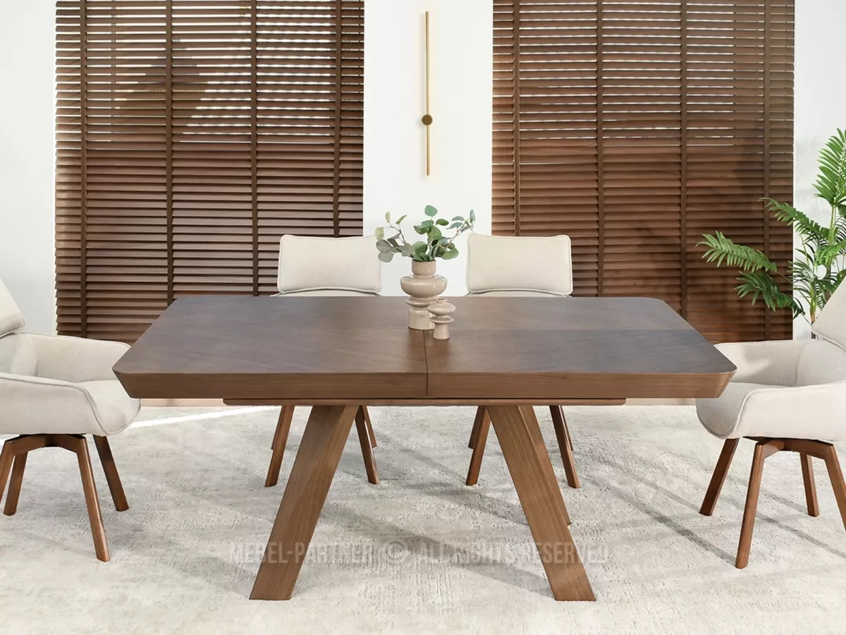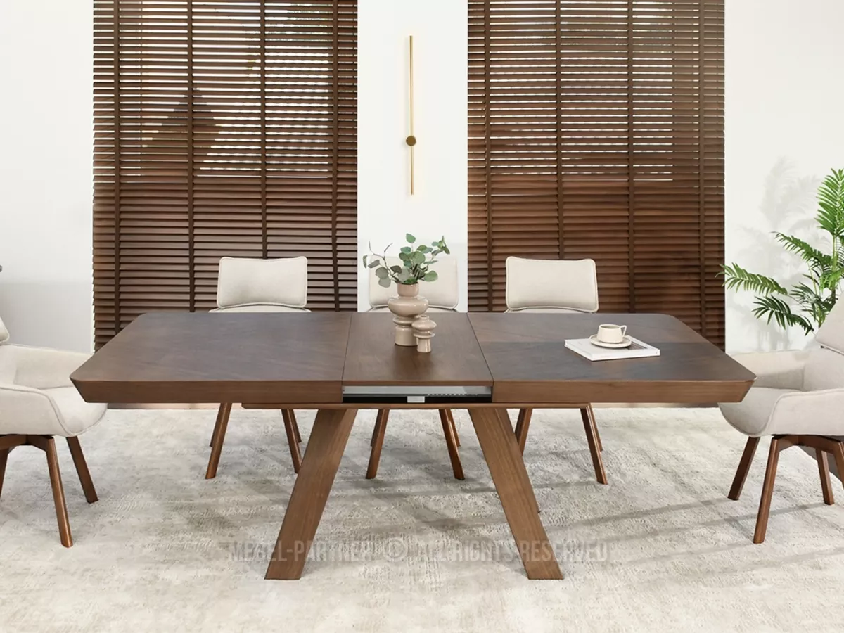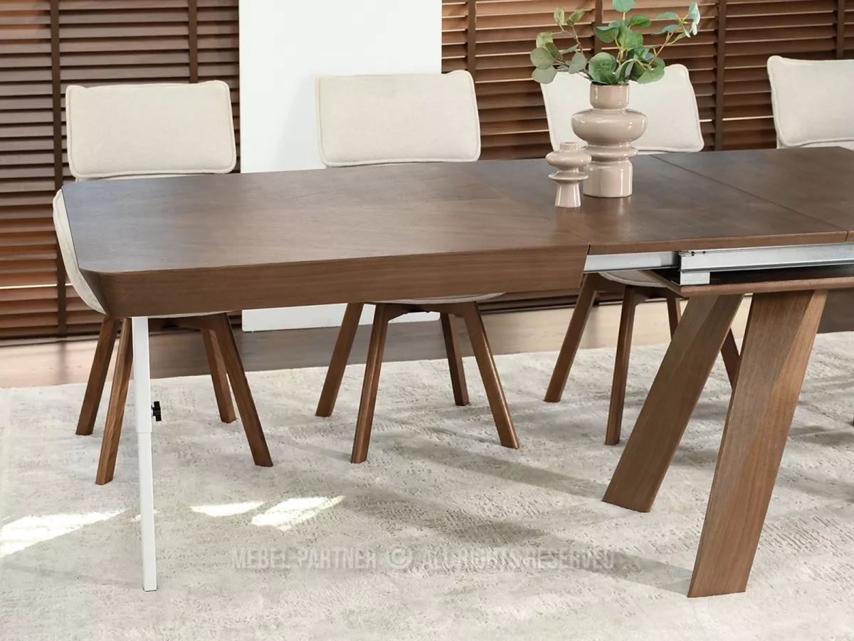 Rozkládací jídelní stůl ZENON skvěle zapadne do moderních i skandinávských interiérů, a to díky své jednoduchosti a přirozenému odstínu dřeva. Po rozložení disponuje přídavnými nožkami pro stabilizaci stolu.