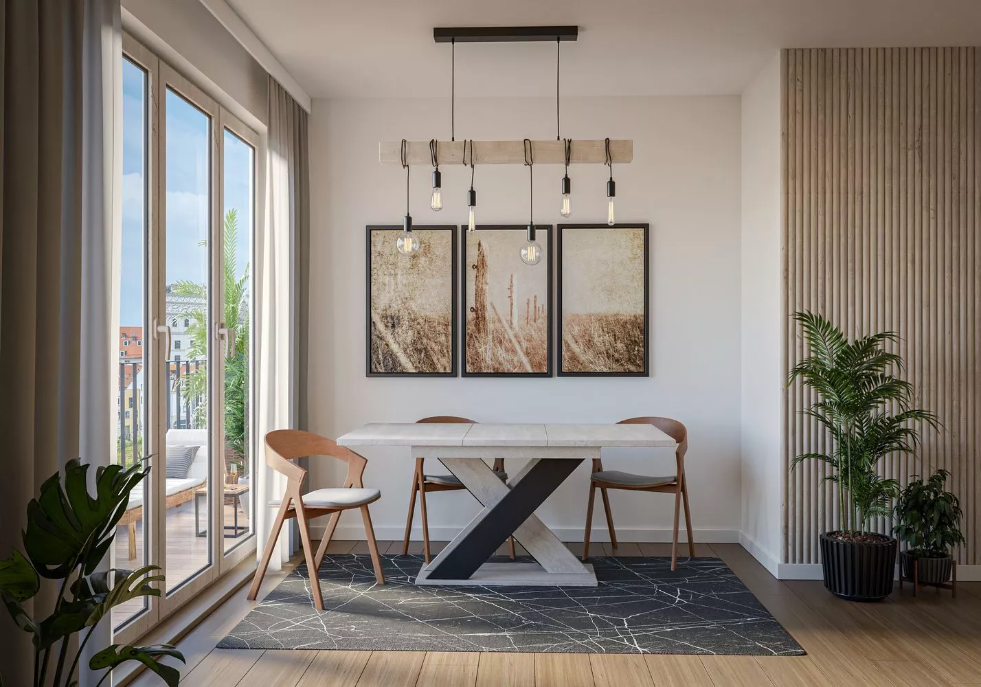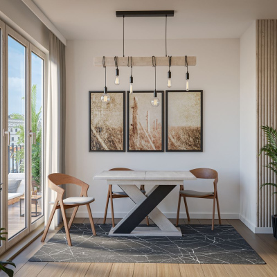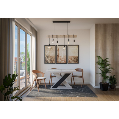 Rozkládací jídelní stůl NIKOS upoutá neotřelým designem se zajímavým provedením noh. Stůl lze rozložit až do šířky 160 cm, což vám zajistí spoustu místa i pro nečekanou návštěvu. Deska stolu je vyrobena z odolného LTD a opatřena ABS hranami.