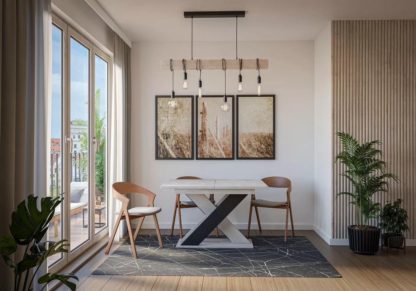 Rozkládací jídelní stůl NIKOS - beton / černý