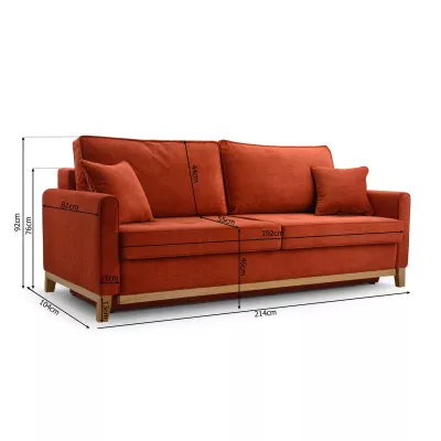 Moderní pohovka JAMAL je ideálním řešením nejen do malého interiéru. Nápaditý potah společně s dřevěnými nožkami dodávají pohovce šmrnc. Oceníte úložný prostor a rozkládací funkci.