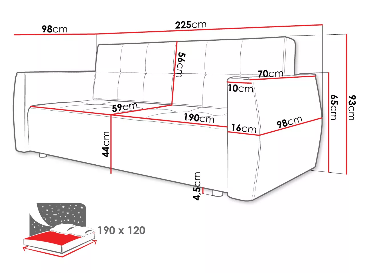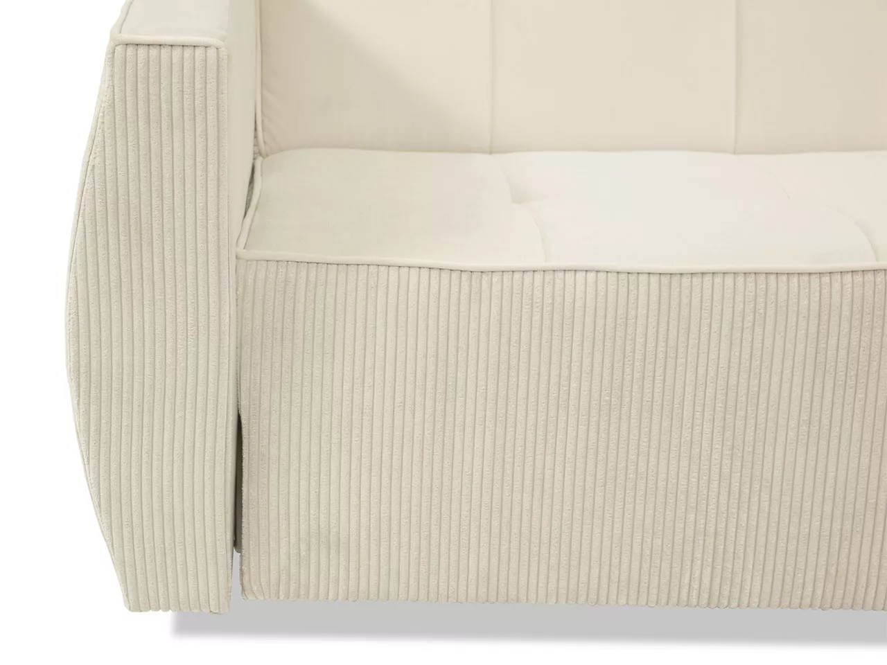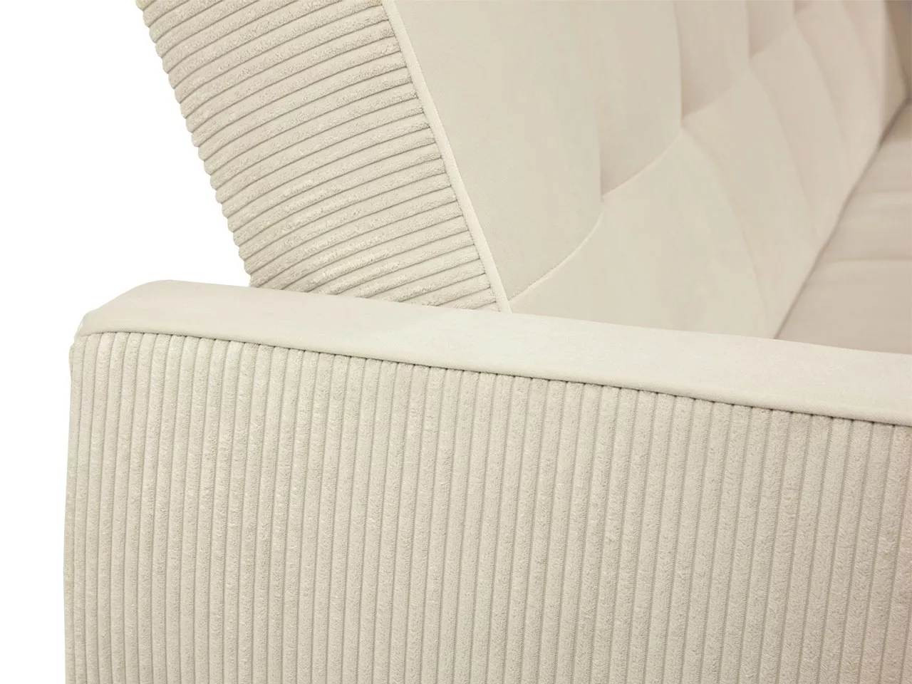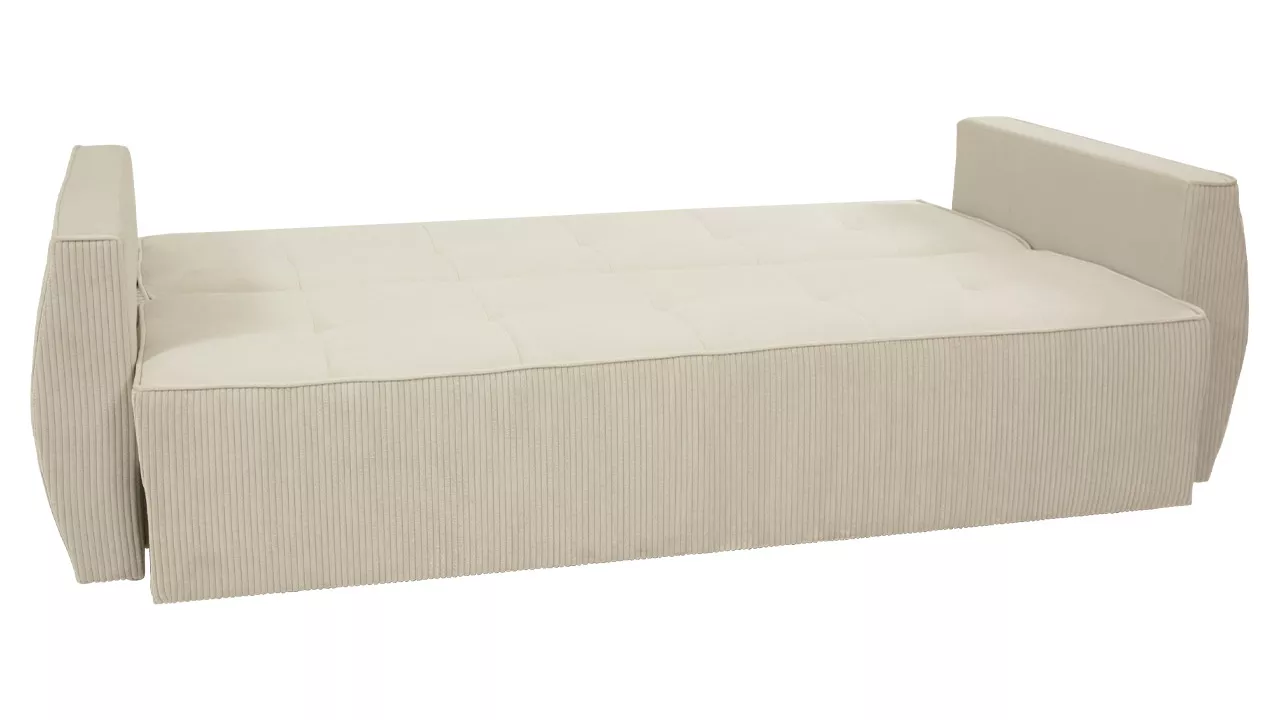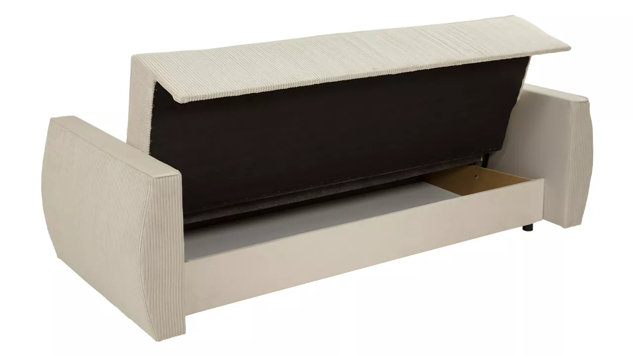 Rozkládací třímístná pohovka KILGORE spojuje funkčnost, pohodlí a eleganci. Pohovka je vybavena funkcí každodenního spaní o lůžku 120x190 cm a úložným prostorem na lůžkoviny. Potahová manšestrová látka je příjemná na dotek a také odolná vůči opotřebení.