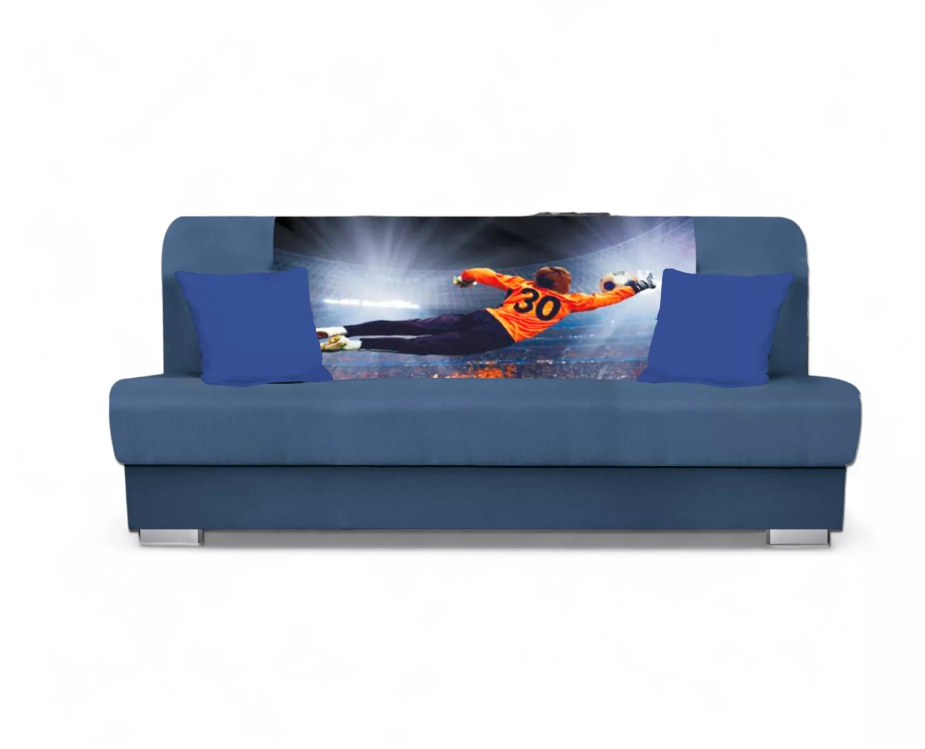 Rozkládací pohovka BIRMA - modrá / fotbal