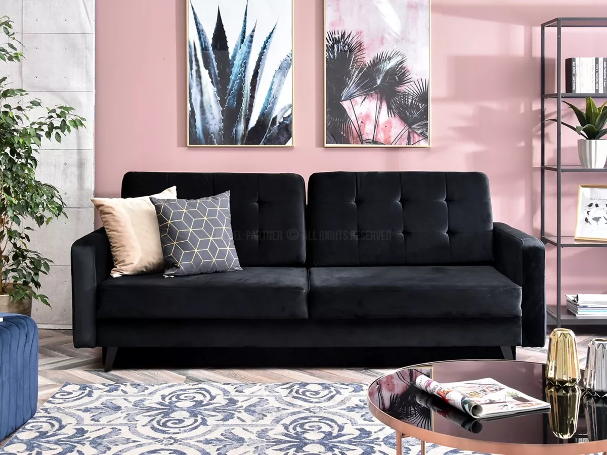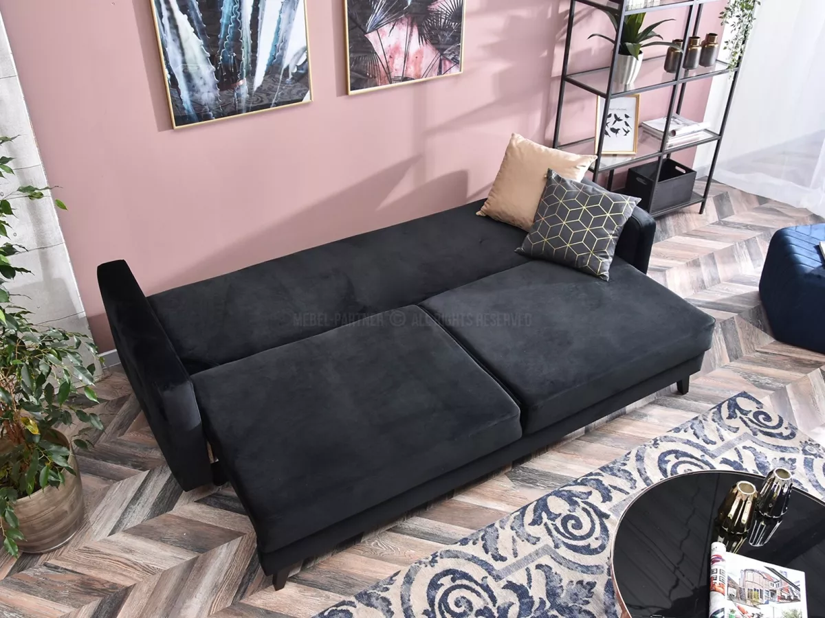 Rozkládací pohovka IRSA zaujme svou elegancí a skvěle zapadne do moderního interiéru. Navíc ji lze rozložit na komfortní lůžko o spacím prostoru 140x200 cm. Zadní část pohovky je čalouněná látkou, což umožňuje její umístění kdekoli v místnosti.