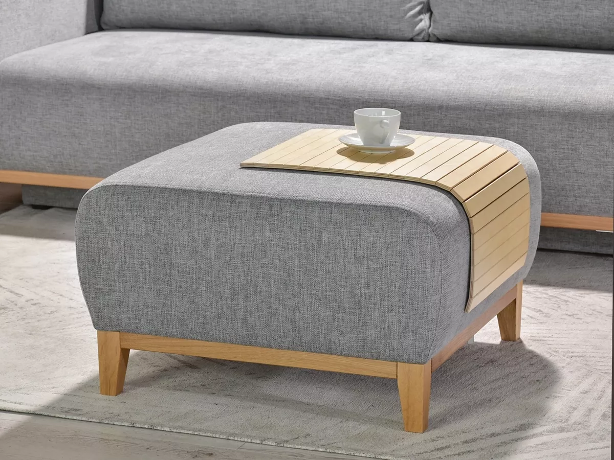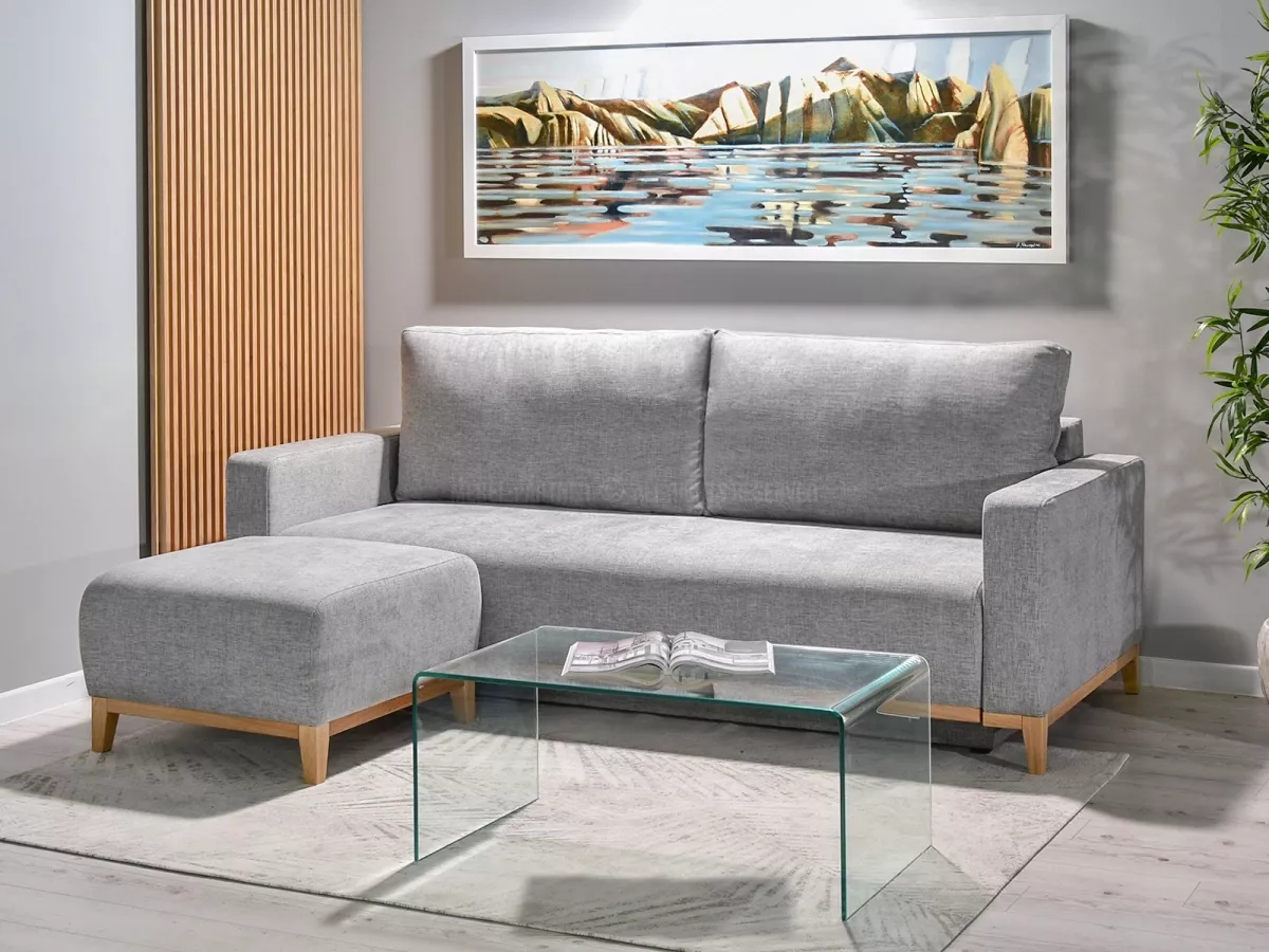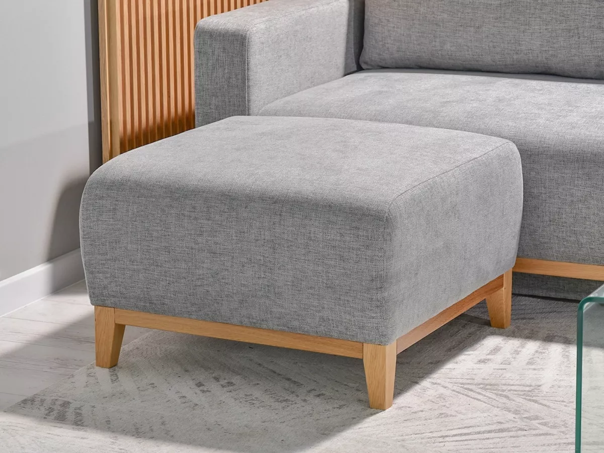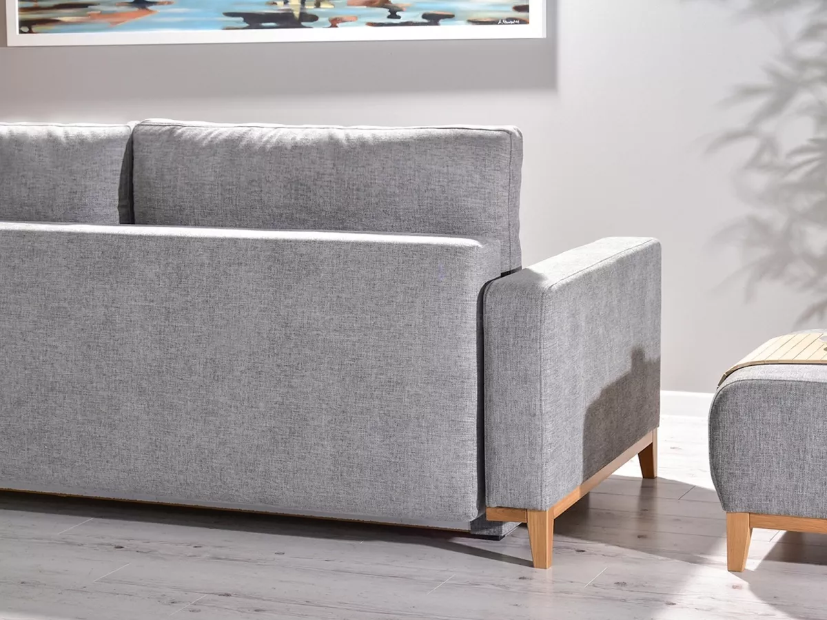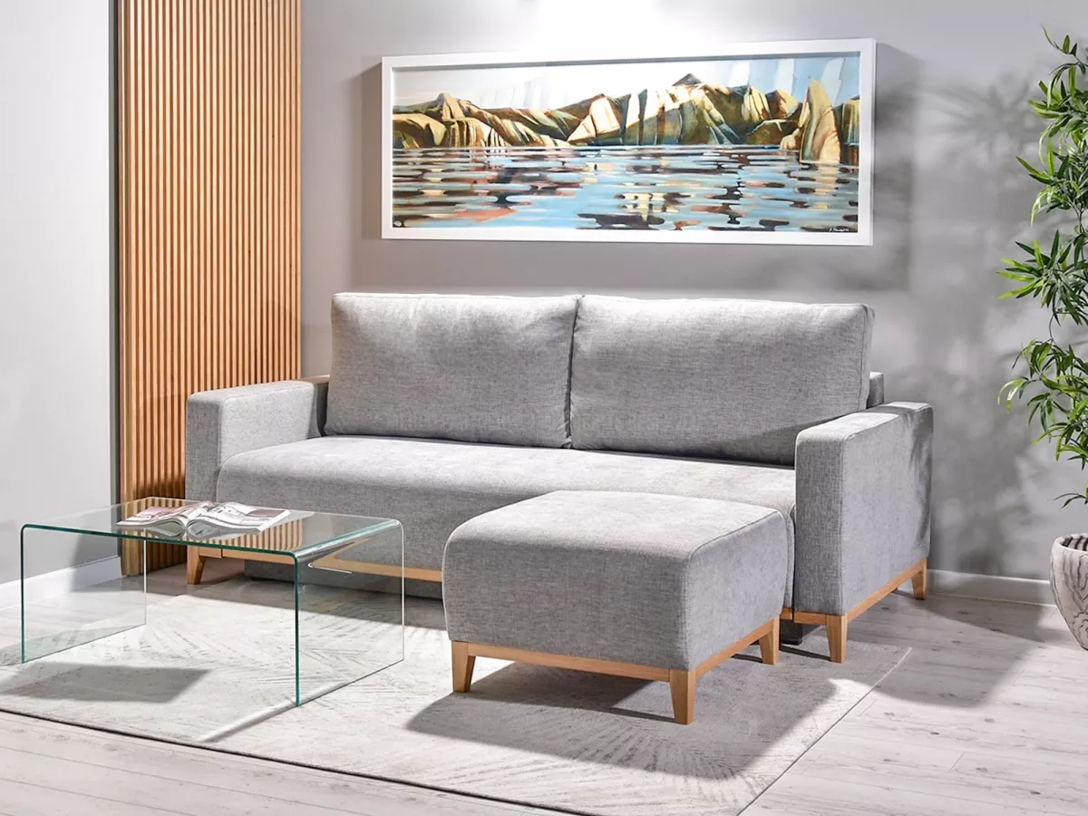 Rozkládací pohovka s taburetem DALENA - světle šedá / dub