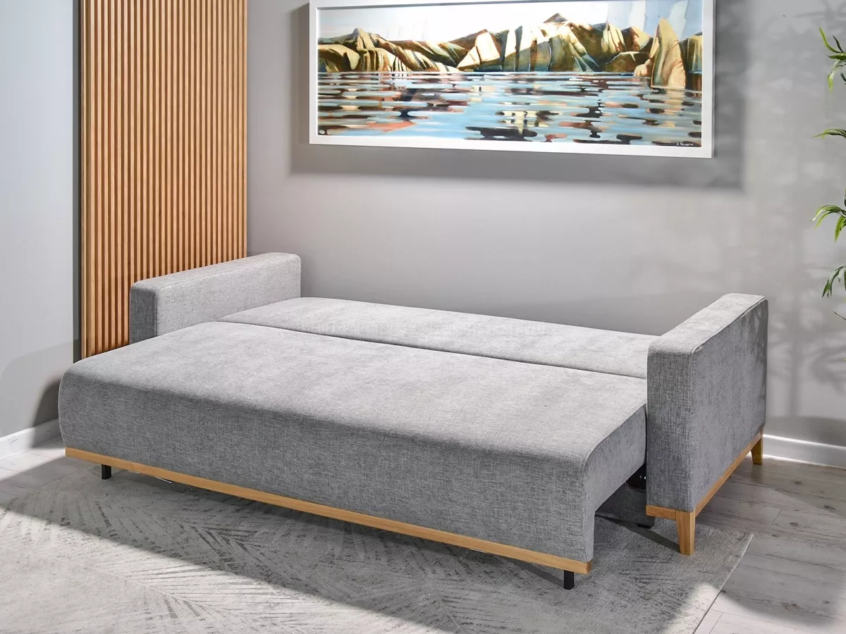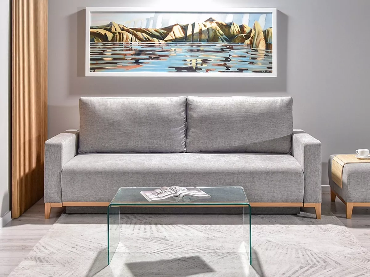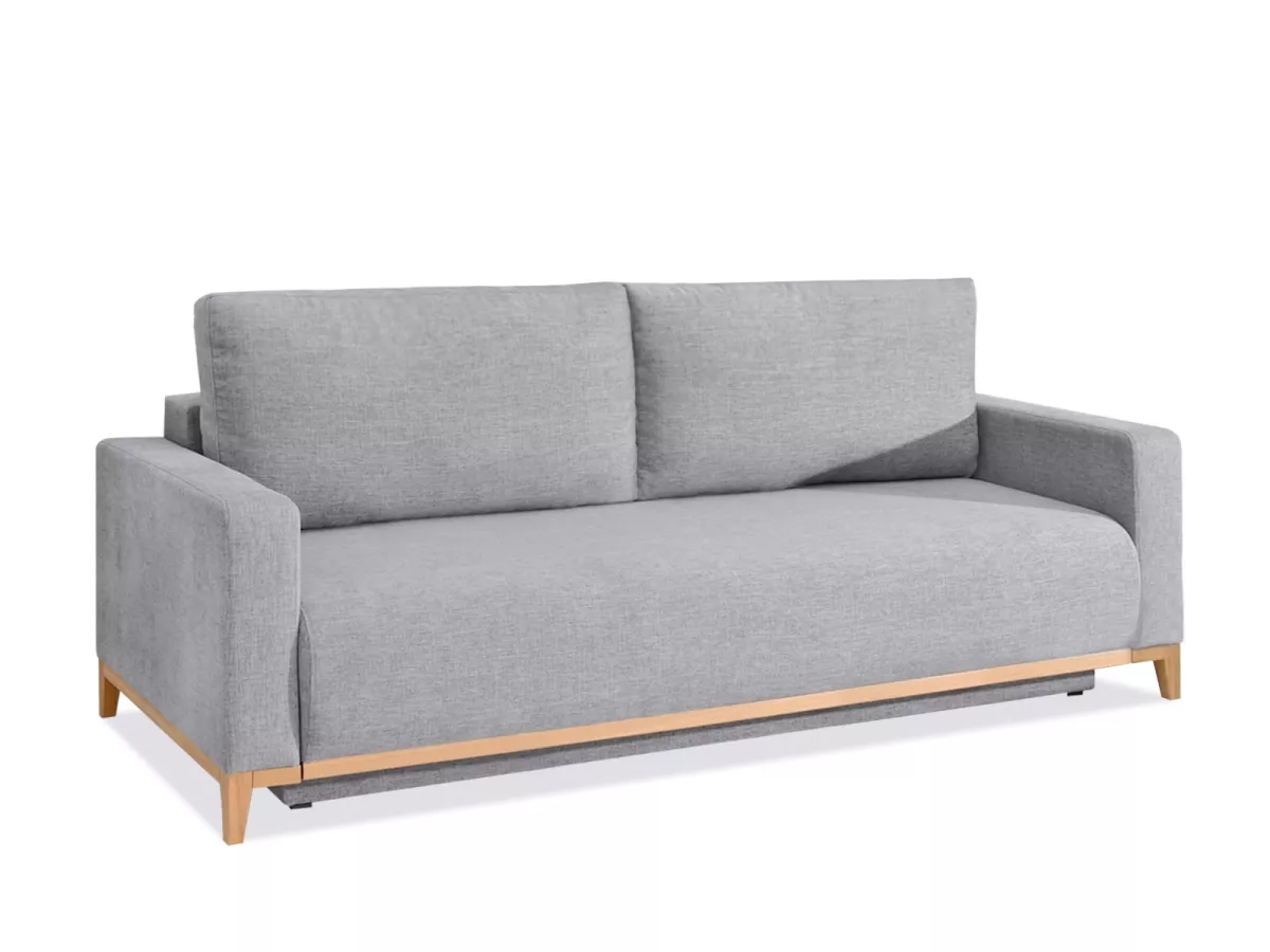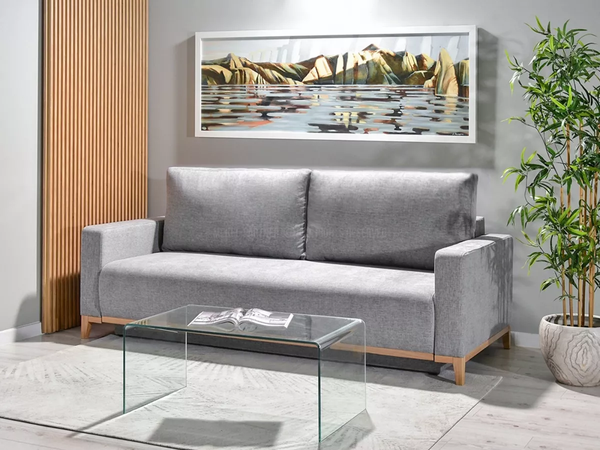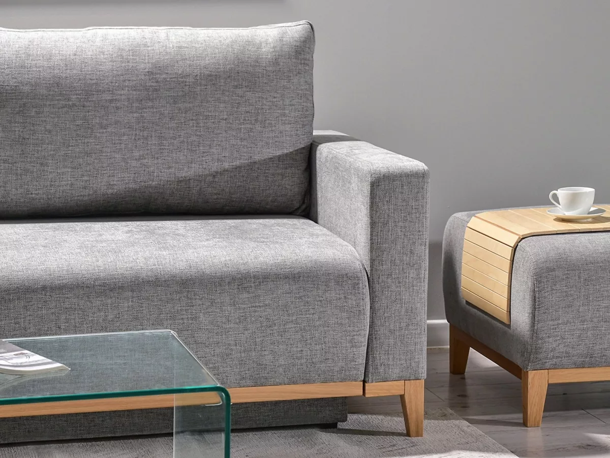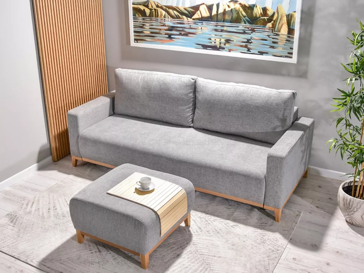 Rozkládací pohovka s taburetem DALENA - světle šedá / dub