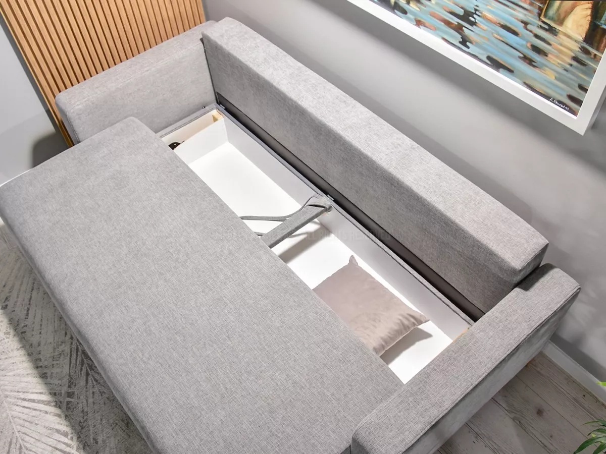 Rozkládací pohovka s taburetem DALENA zaujme svou elegancí a skvěle zapadne do moderního interiéru. Součástí pohovky je praktický taburet, který může sloužit pro podložení noh nebo jako další sedák při velké návštěvě.