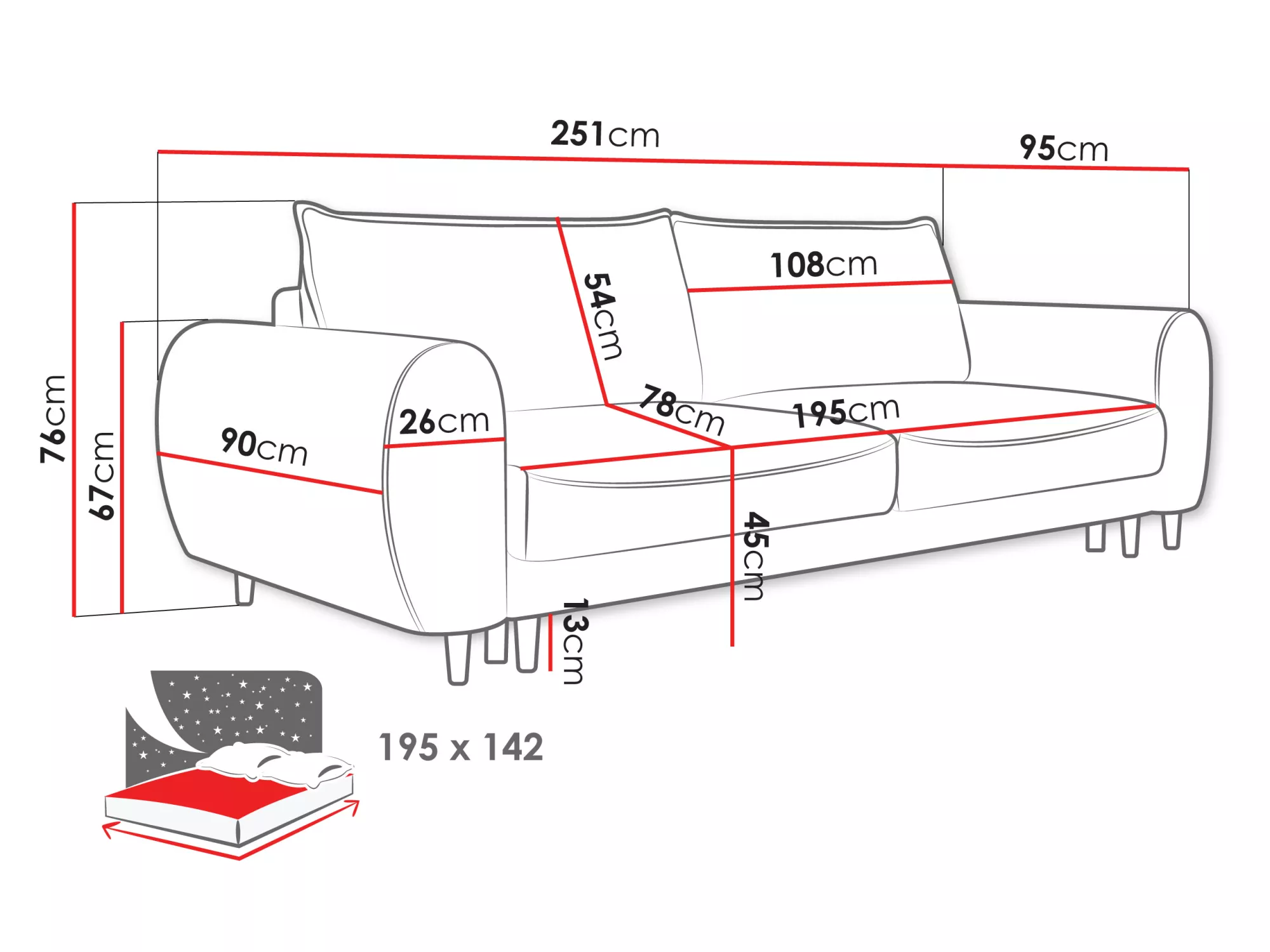 Pohovka na každodenní spaní BREGON je praktickým a stylovým doplňkem každého obývacího pokoje. Díky snadnému mechanismu rozkládání nabízí rychlé řešení pro přespání hostů, zatímco integrovaný úložný prostor poskytuje místo pro uschování lůžkovin nebo přikrývek. Opěradlo tvoří volně ložené měkké polštáře, které zaručují vysoký komfort pro vaše záda.