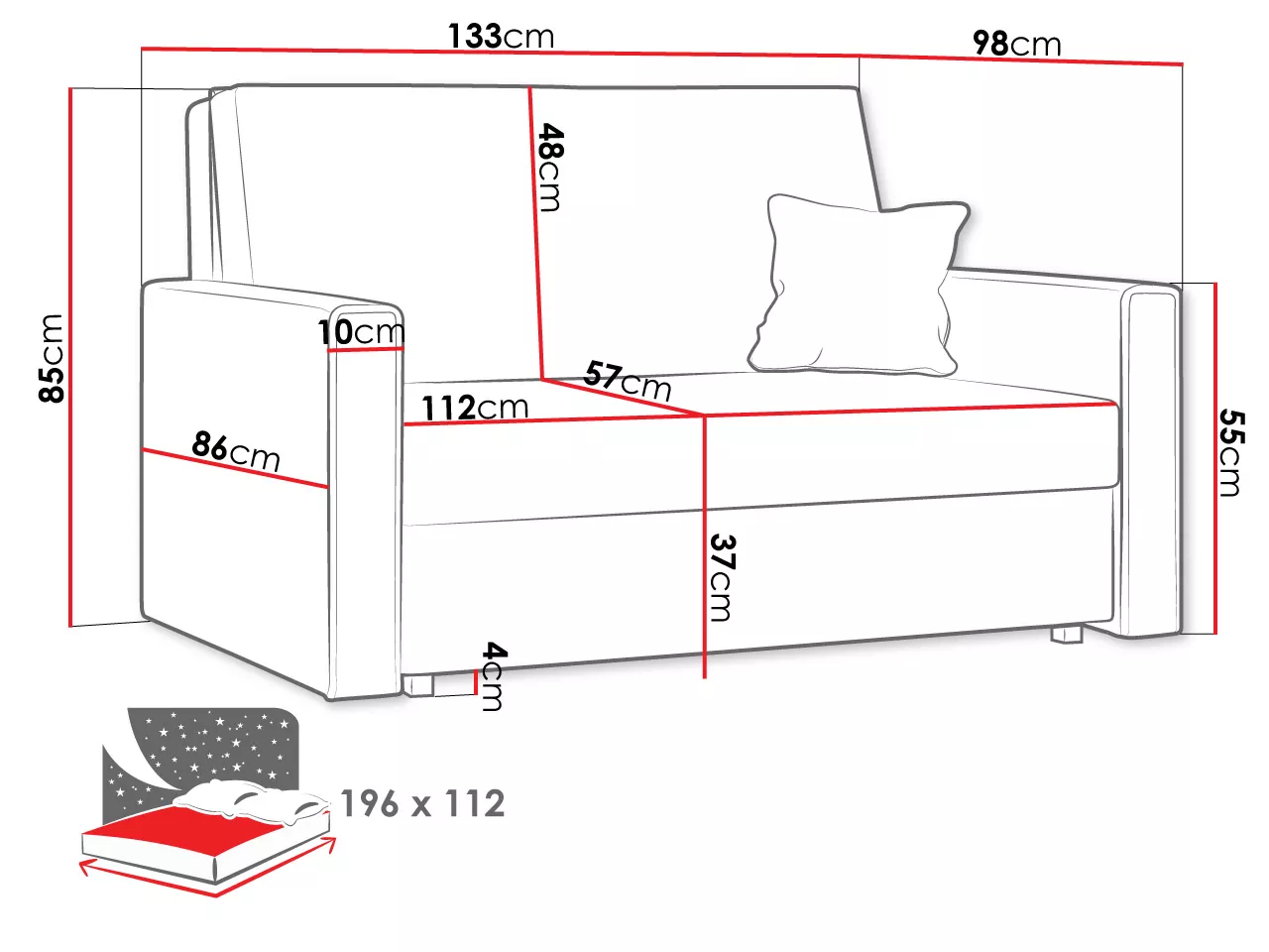 Rozkládací dvoukřeslo BELA spojuje stylový design s maximální praktičností a pohodlím. Díky funkci spaní jej snadno přeměníte na lůžko, což oceníte zejména při návštěvě hostů. Ideální je také do menších prostor, kde šetří každý centimetr. Úložný prostor na lůžkoviny umožňuje přehledně uschovat peřiny a polštáře, aniž by zabíraly další místo v interiéru.