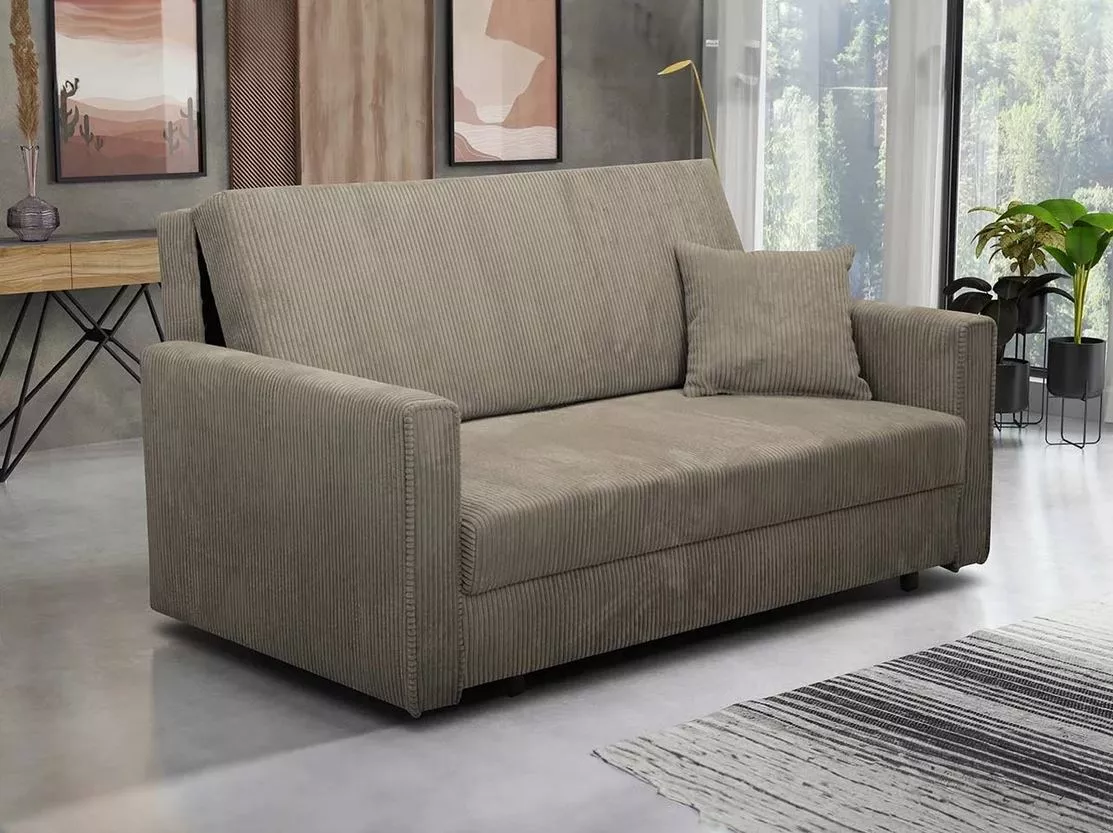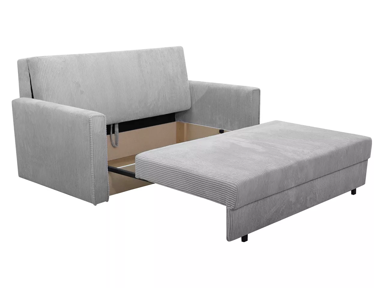 Rozkládací dvojsedák BELA v minimalistickém stylu je ideální volbou pro každý obývací pokoj. Díky funkci rozkládání poslouží nejen jako pohodlná pohovka, ale i jako náhradní lůžko pro hosty. Vestavěný úložný prostor poskytuje praktické místo pro uložení polštářů a přikrývek, což pomáhá udržet pořádek. Manšestrové čalounění dodává pohovce útulnost a zútulňuje celý interiér.