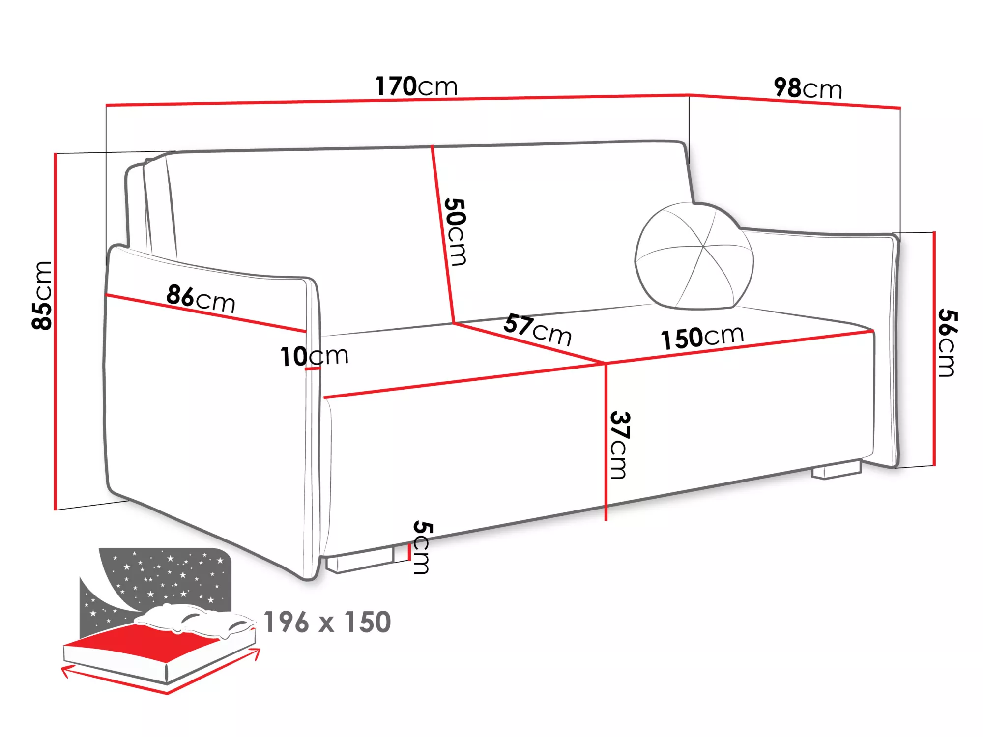 Dvoumístná pohovka HUBARD kombinuje moderní design s praktičností – nabízí pohodlné sezení, funkci spaní a úložný prostor pro lůžkoviny. Po rozložení vytvoří prostorné lůžko pro 2 osoby, zatímco úložný prostor snadno pojme polštáře i přikrývky. Ideální volba pro relaxaci, sledování seriálů nebo odpočinek po náročném dni.