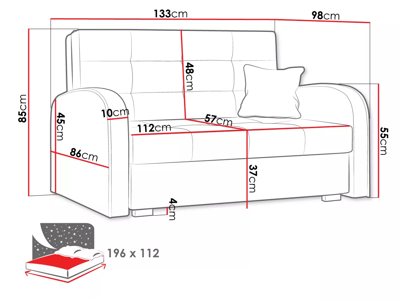 Rozkládací pohovka s úložným prostorem BELA GOLD 2 zaujme svou elegancí a skvěle zapadne do moderního interiéru. Navíc ji lze rozložit na komfortní lůžko o spacím prostoru 112x196 cm. V pohovce se také nachází praktický úložný prostor na ložní prádlo, který může sloužit také jako místo pro sezónní oblečení. Zadní část pohovky je čalouněná látkou, což umožňuje její umístění kdekoli v místnosti.