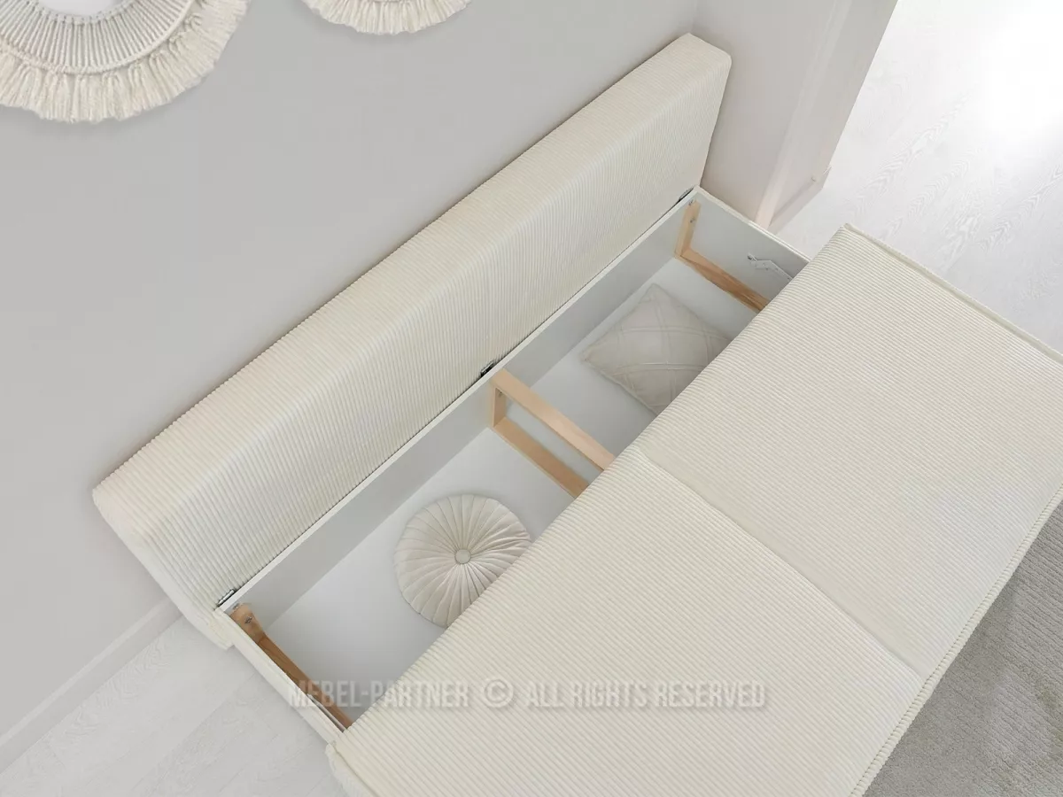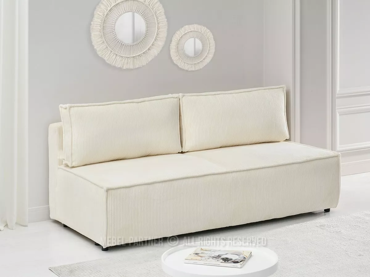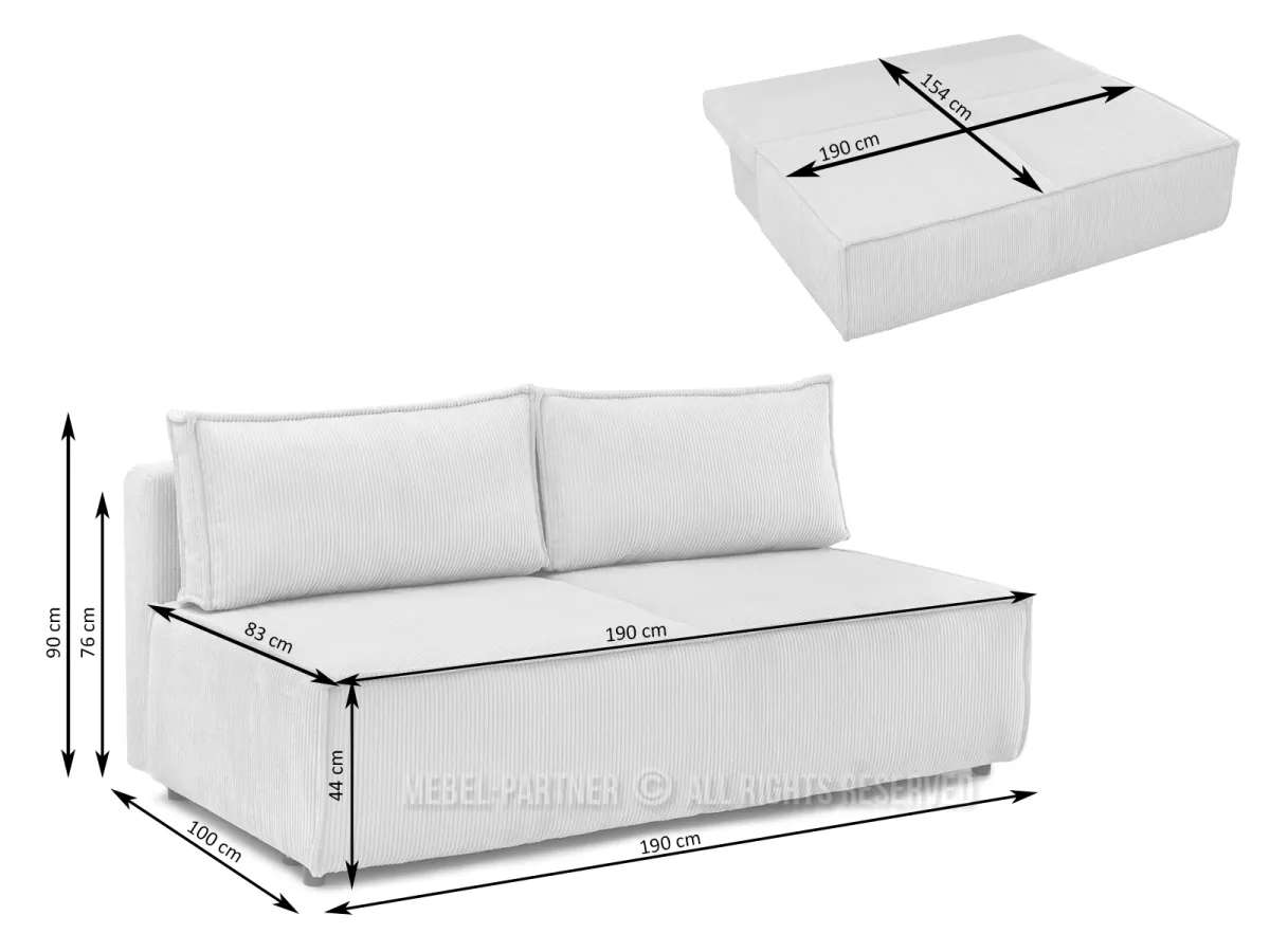 Pohovka GERALD nabízí funkci každodenního spaní na lůžku o rozměrech 154x190 cm, úložný prostor a pohodlnou opěrku zad v podobě 2 polštářů. Zadní část je čalouněná látkou, což umožňuje její umístění kdekoli v místnosti.