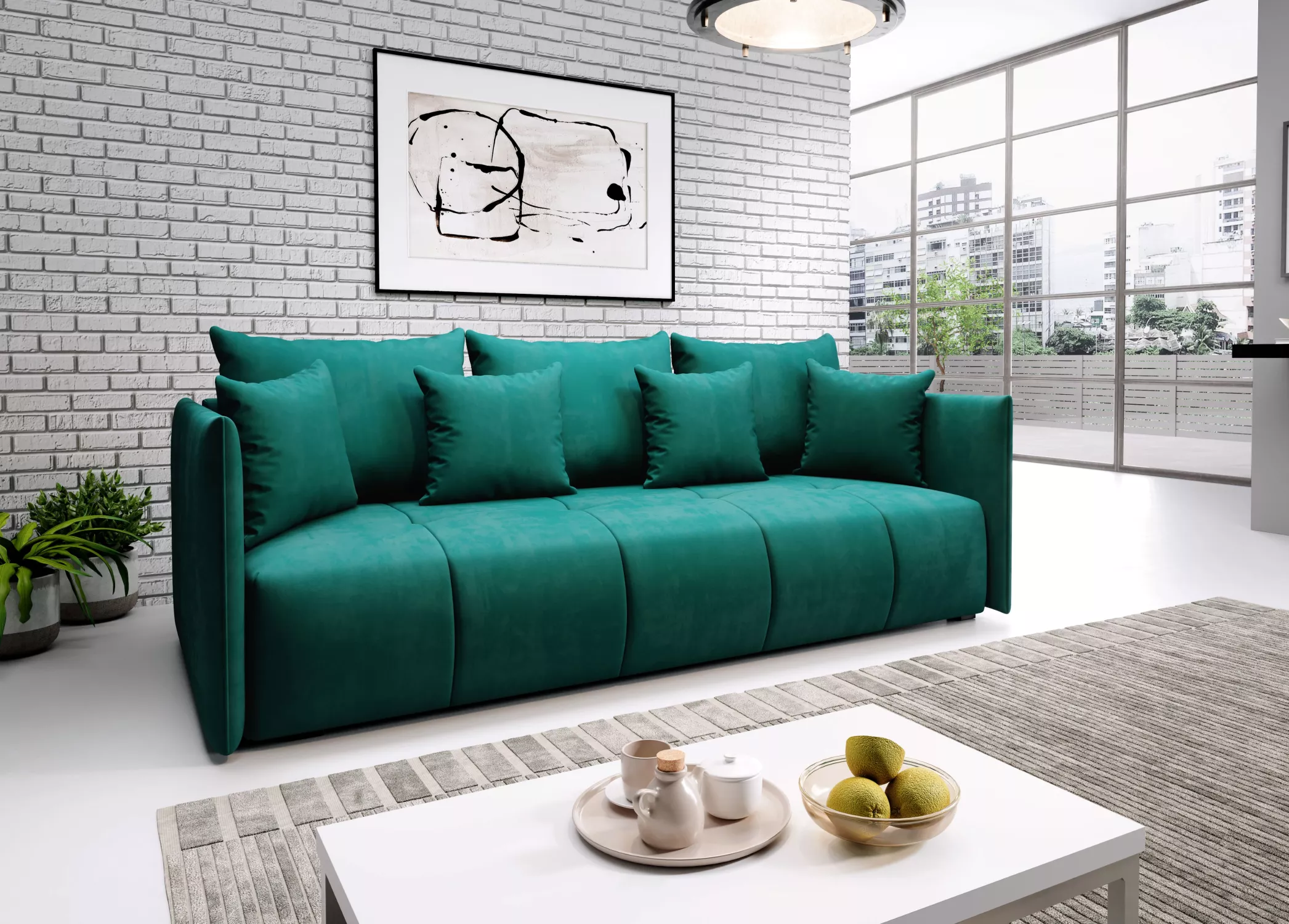 Třímístná pohovka VALENTINI svým designem zapadne do všech moderních obývacích pokojů. Opěradlo ve formě volně ložených polštářů vám zpříjemní každodenní používání. Zadní část pohovky je čalouněná látkou, což umožňuje její umístění kdekoliv v místnosti.