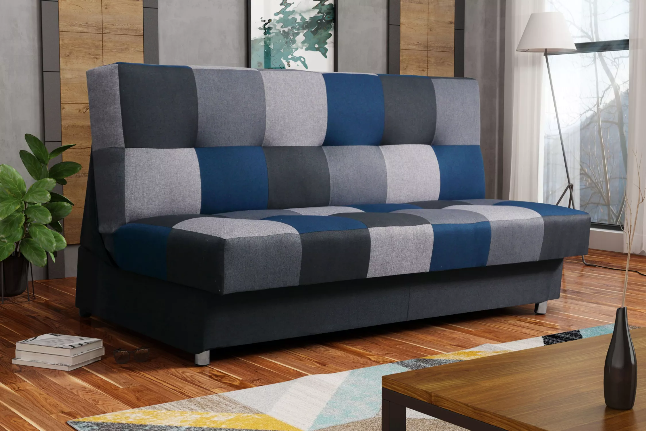 Rozkládací pohovka KATARINA - tmavě šedá / šedá / modrá