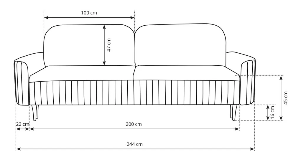 - celočalouněná: ano (potažená stejnou látkou i na zadní straně)