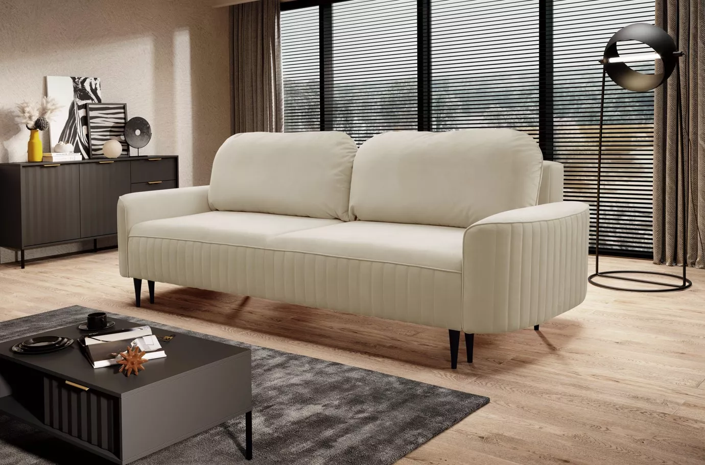 Pořiďte si stylovou parťačku na lenošení i přespání! Pohovka MONCTON zaujme na první pohled ozdobným prošíváním a štíhlými černými nožkami. Během pár vteřin proměníte pohovku v prostorné lůžko o velikosti 140×200 cm. Navíc pod sedákem najdete praktický úložný prostor na peřiny, deky nebo cokoli, co nechcete mít na očích.
