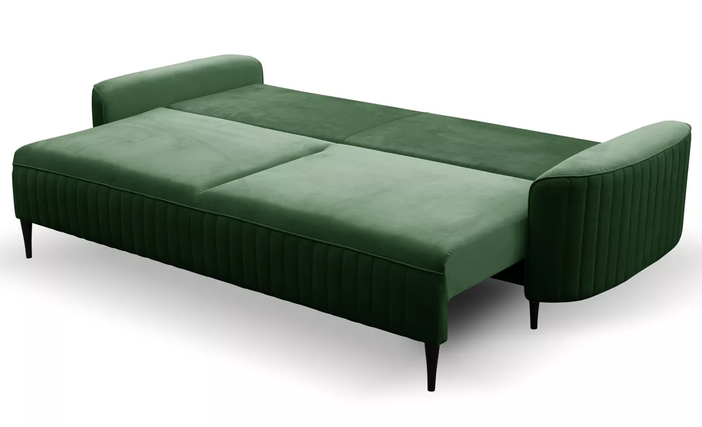 Pořiďte si stylovou parťačku na lenošení i přespání! Pohovka MONCTON zaujme na první pohled ozdobným prošíváním a štíhlými černými nožkami. Během pár vteřin proměníte pohovku v prostorné lůžko o velikosti 140×200 cm. Navíc pod sedákem najdete praktický úložný prostor na peřiny, deky nebo cokoli, co nechcete mít na očích.